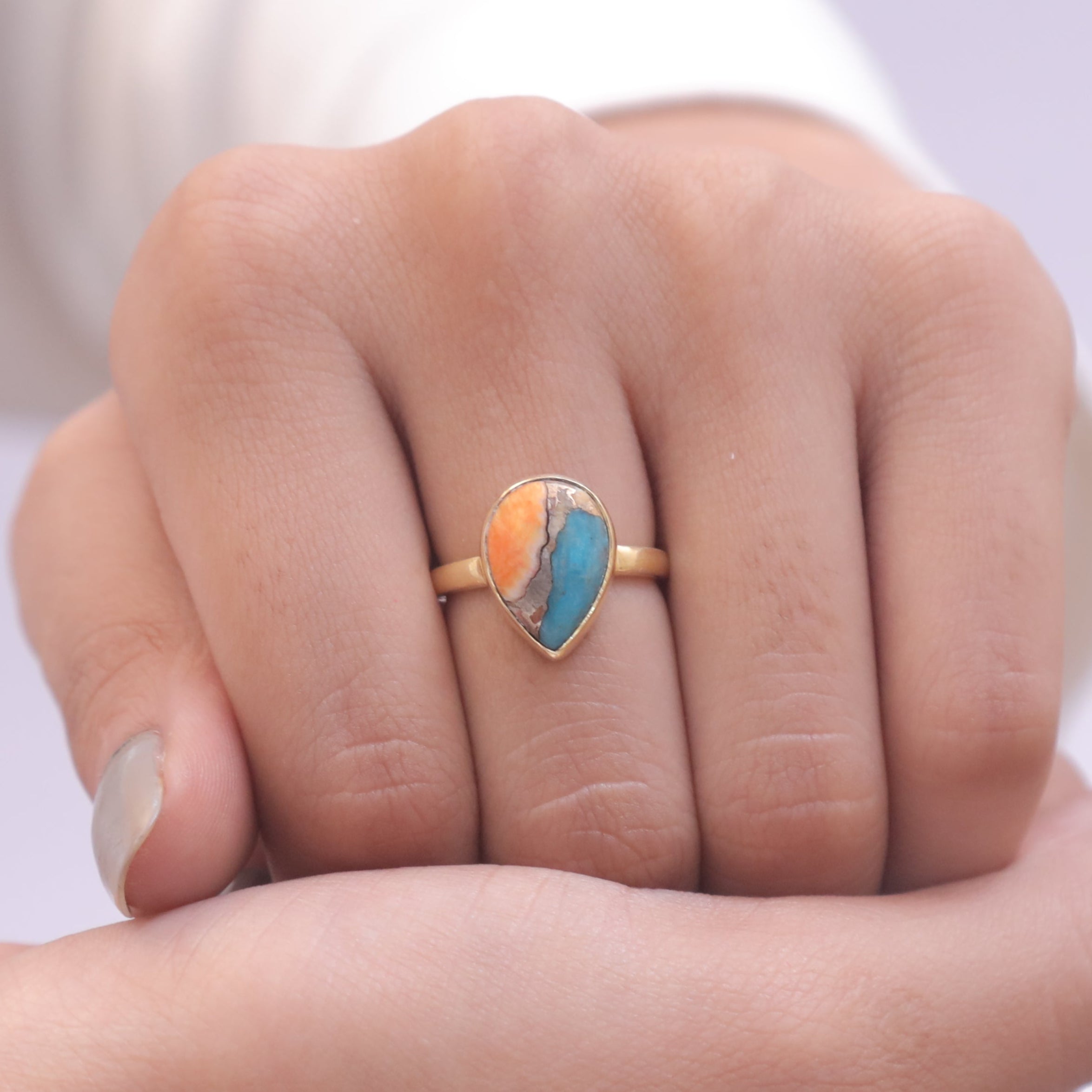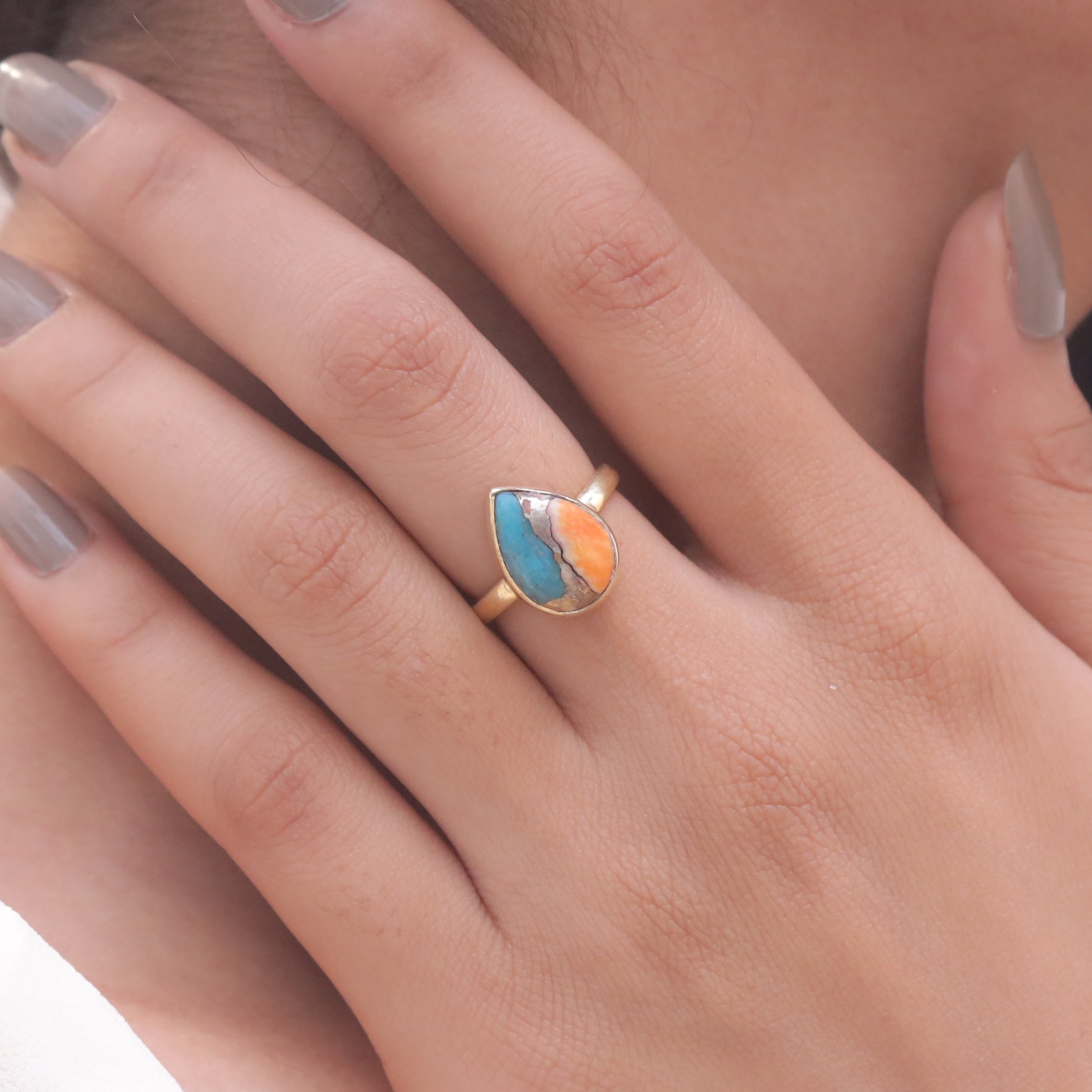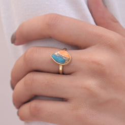 Oyster Turquoise 18k Gold Plated Sterling Silver Ring