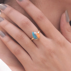 Elevate your style with the Oyster Turquoise Ring, a masterpiece that blends natural beauty with refined craftsmanship. The ring features a radiant Oyster Turquois centerpiece, carefully cut to enhance its inherent allure and brilliance. Set in a band crafted from 925 sterling silver, it offers durability and a lasting shine that complements the gemstone's vibrant hue.