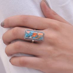 Spiny Oyster Turquoise Sterling Silver Ring