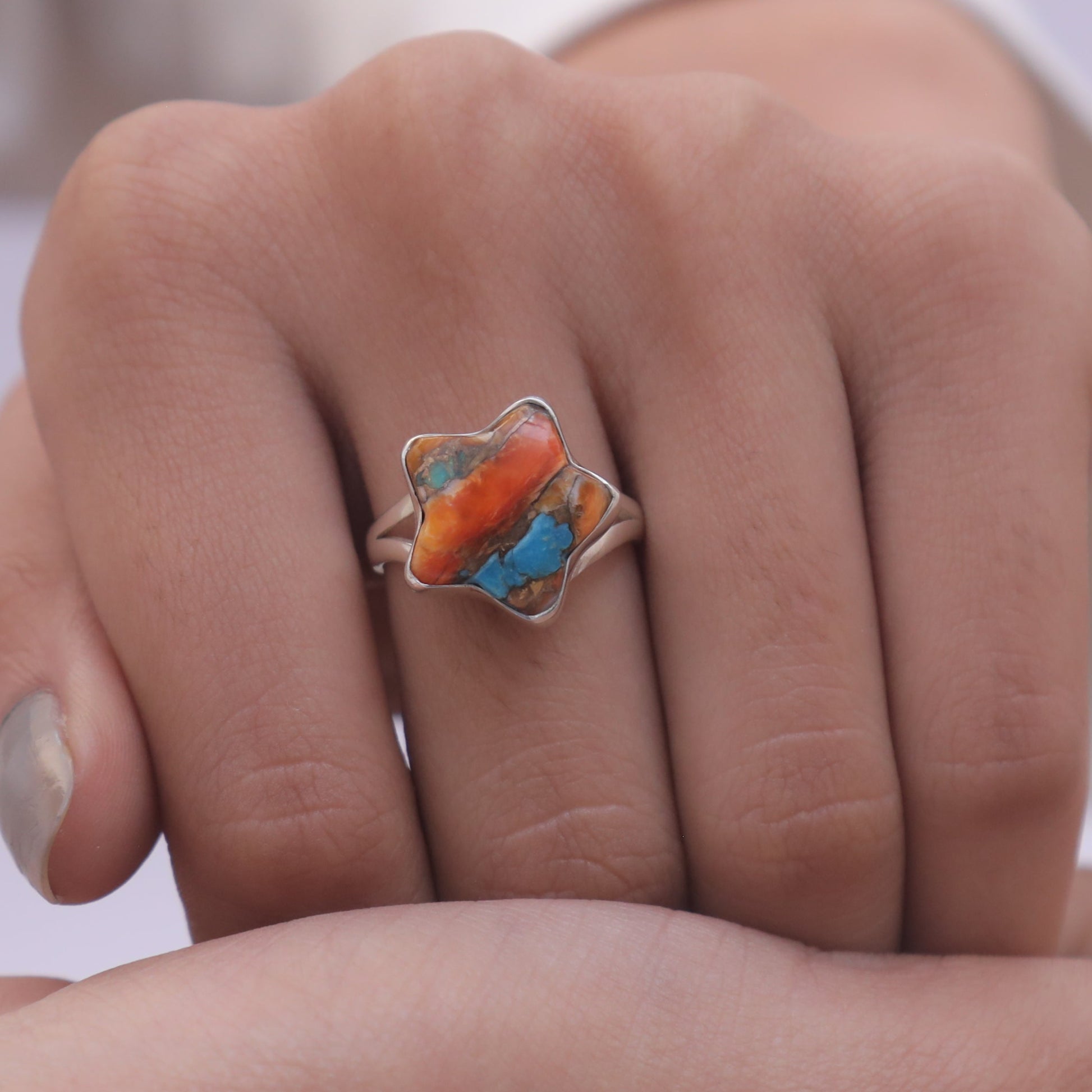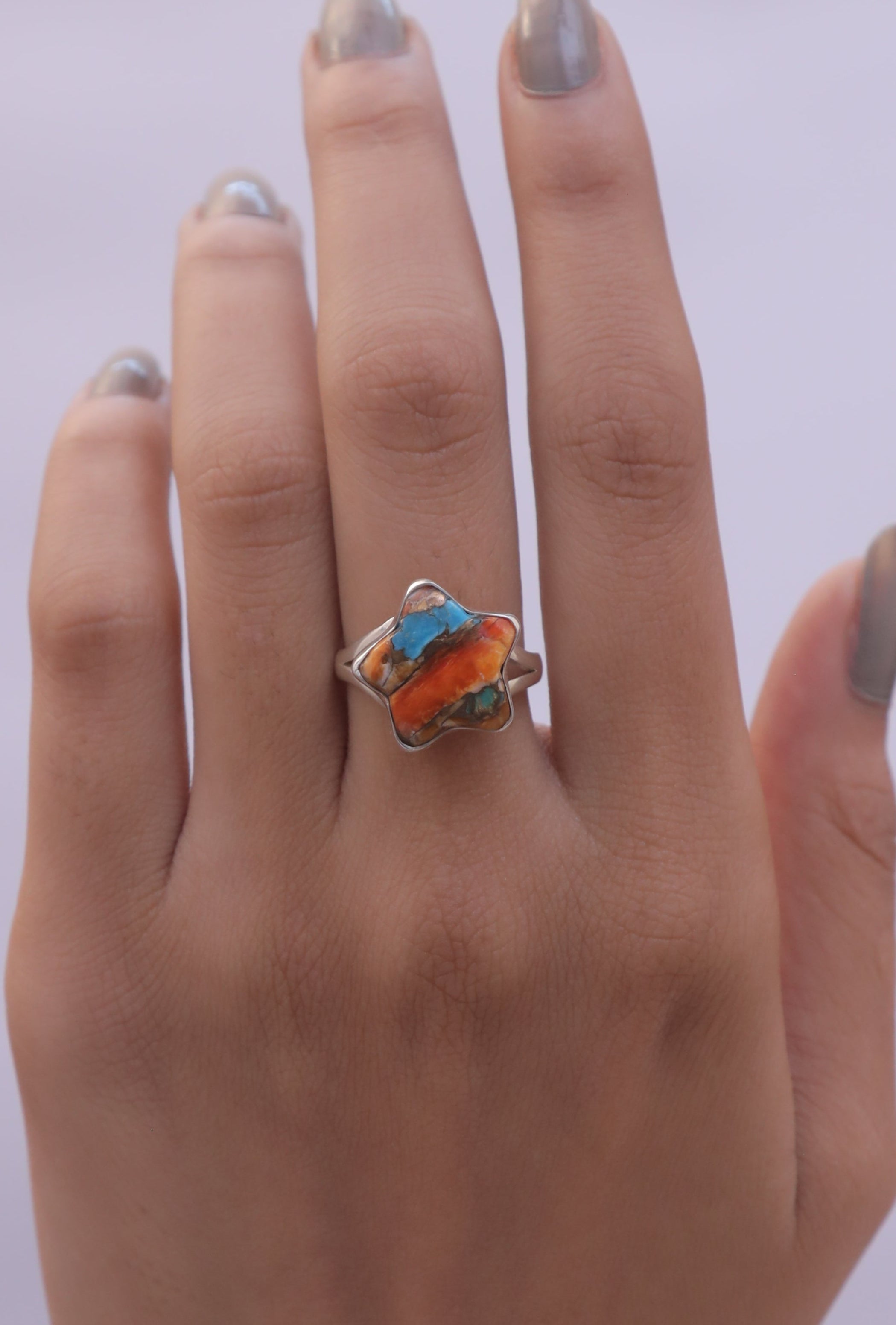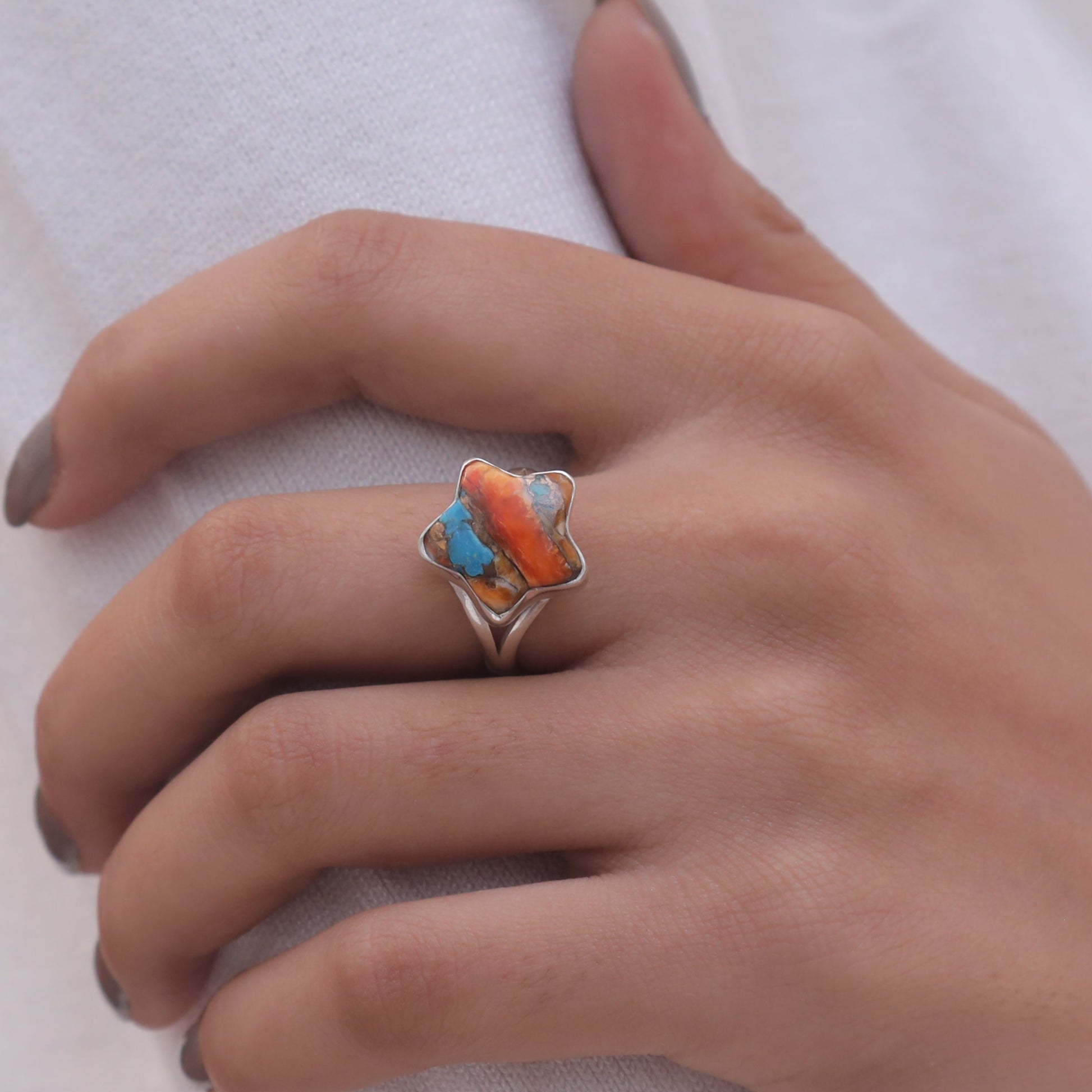 Each detail of the ring showcases expert craftsmanship, from the precisely set prongs securing the Oyster Turquoise to the polished silver band ensuring a comfortable fit. The design allows the Oyster Turquoise to shine as the focal point, making it a versatile accessory suitable for everyday wear or special occasions.