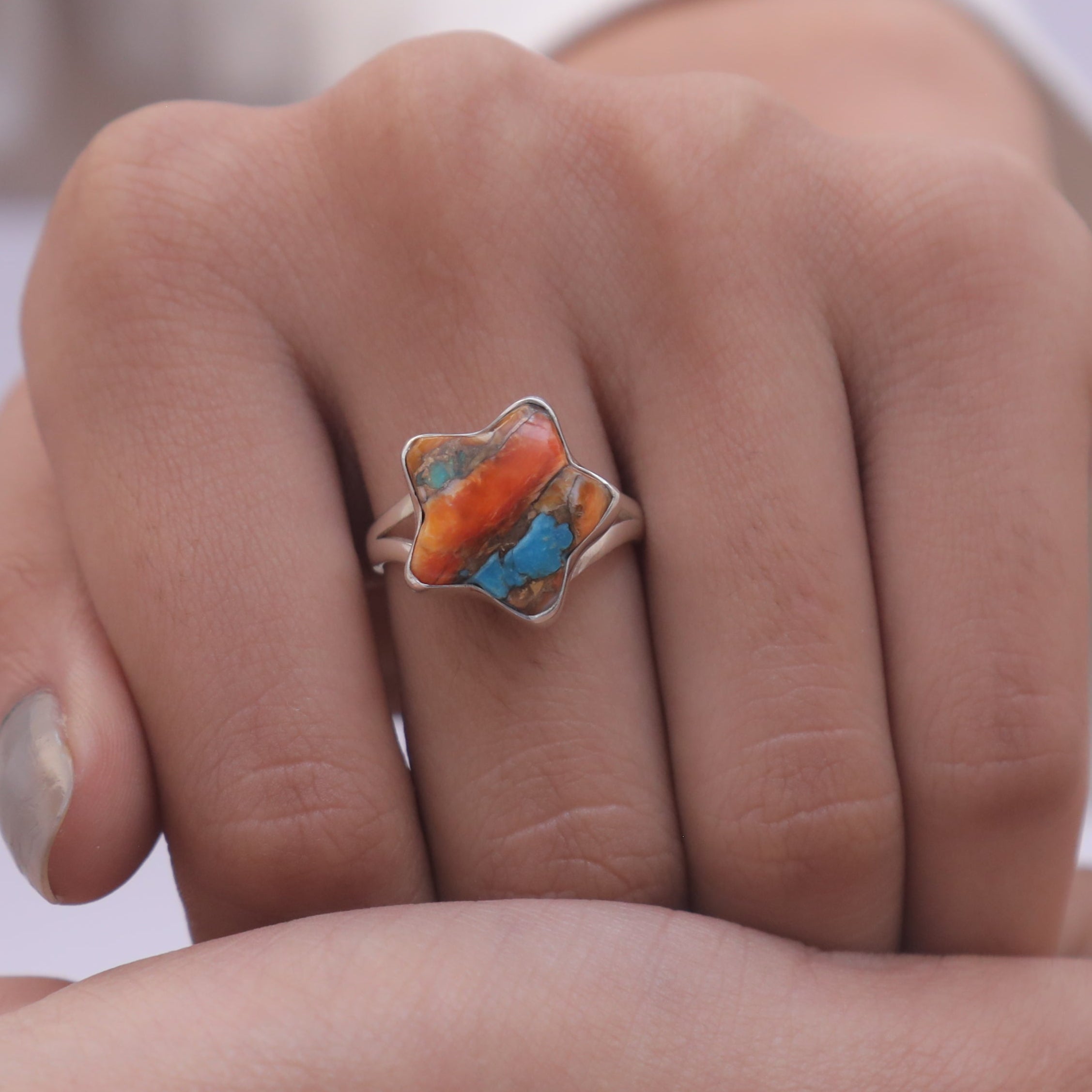 Elevate your style with the Oyster Turquoise Ring, a masterpiece that blends natural beauty with refined craftsmanship. The ring features a radiant Oyster Turquoise centerpiece, carefully cut to enhance its inherent allure and brilliance. Set in a band crafted from 925 sterling silver, it offers durability and a lasting shine that complements the gemstone's vibrant hue.
