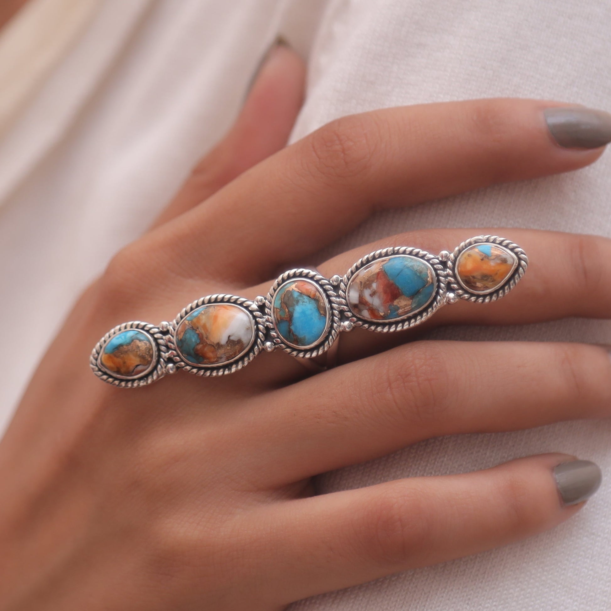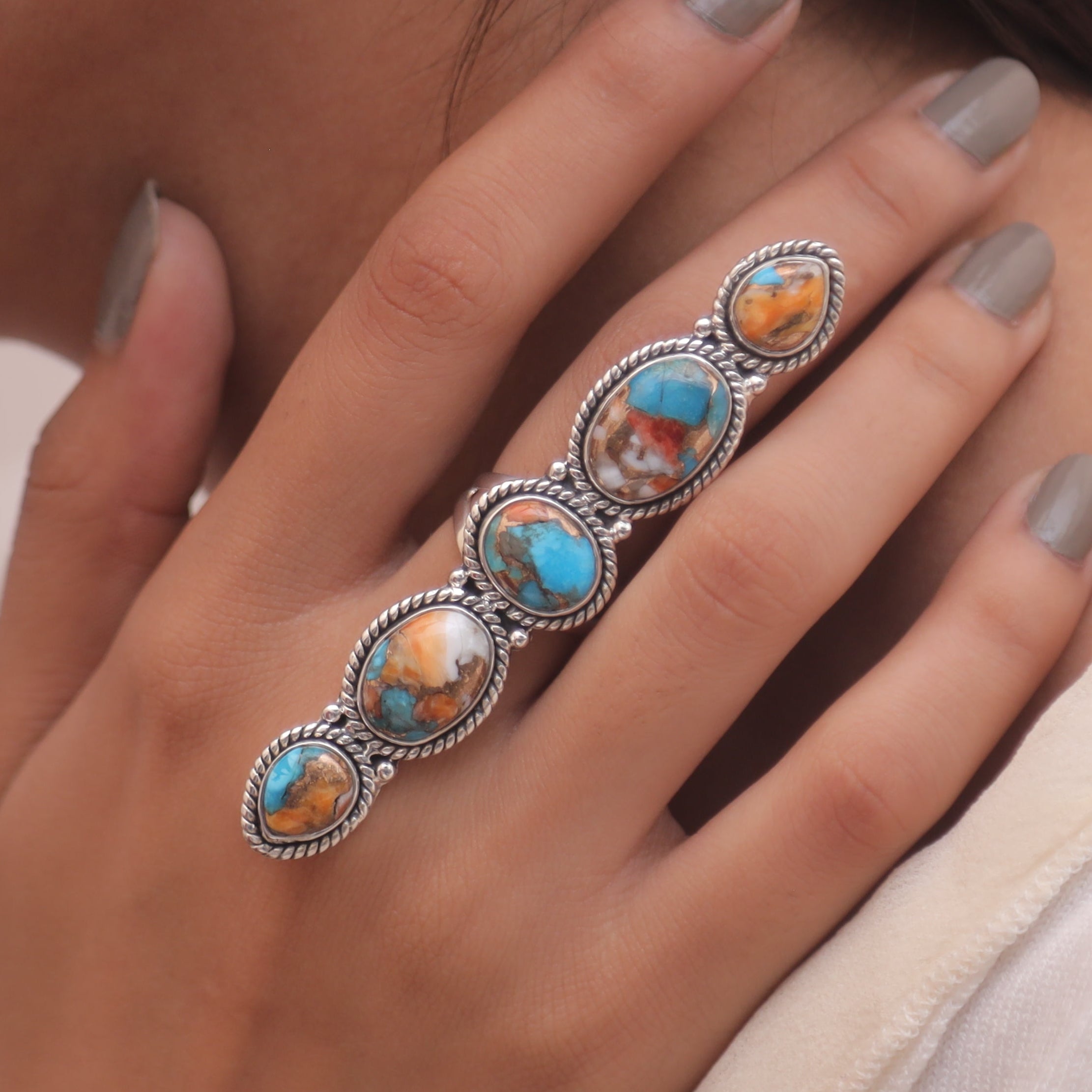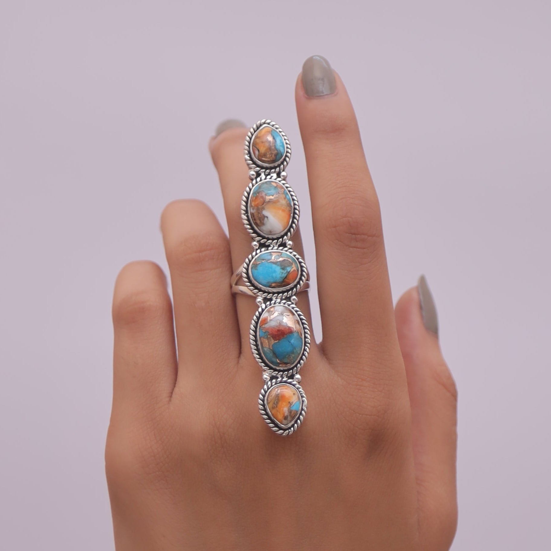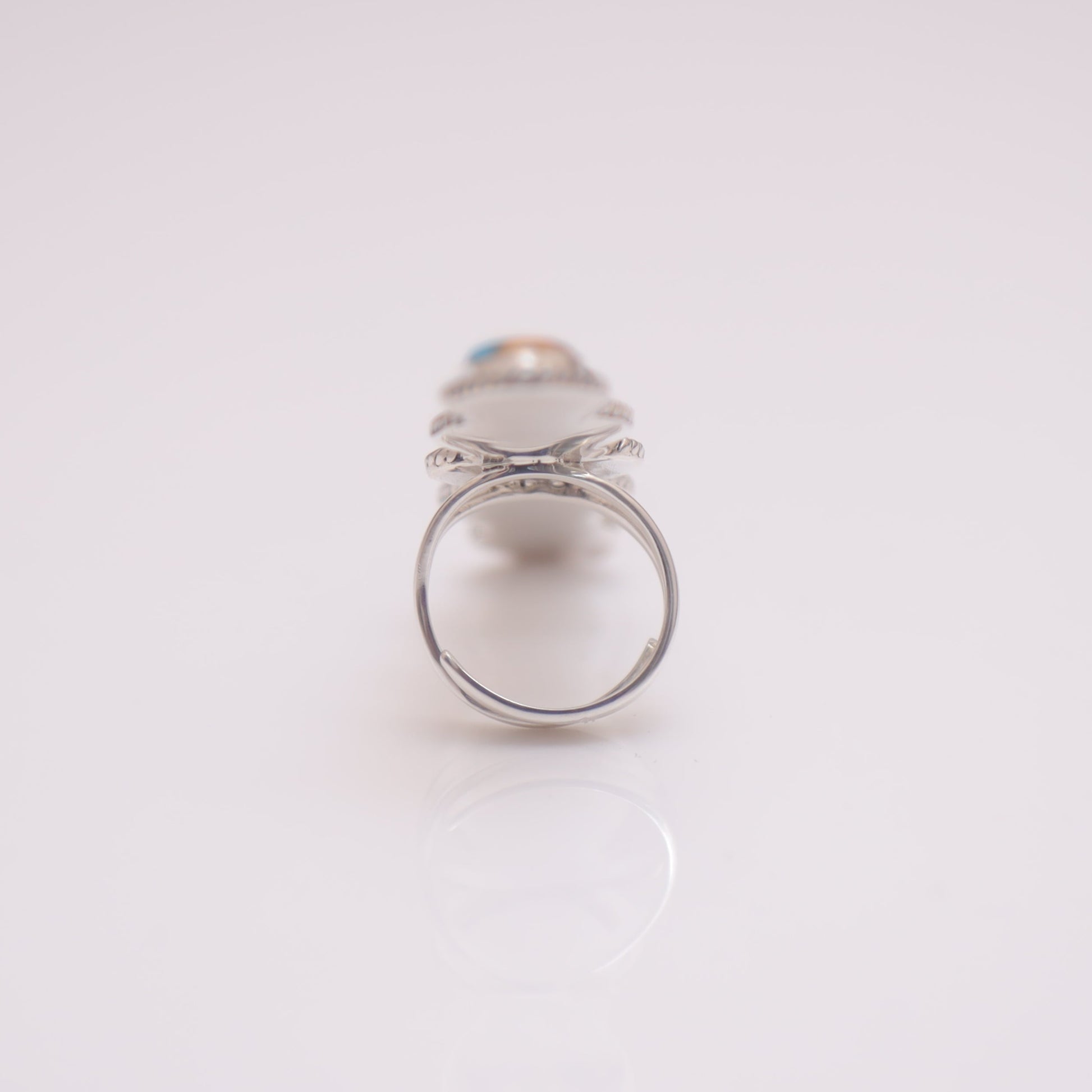 Each detail of the ring showcases expert craftsmanship, from the precisely set prongs securing the Oyster Turquois to the polished silver band ensuring a comfortable fit. The design allows the Oyster Turquois to shine as the focal point, making it a versatile accessory suitable for everyday wear or special occasions.