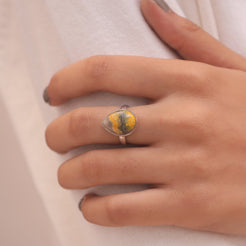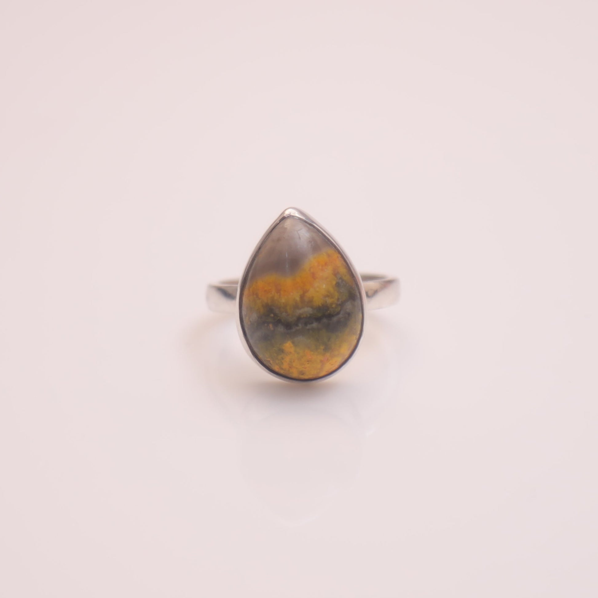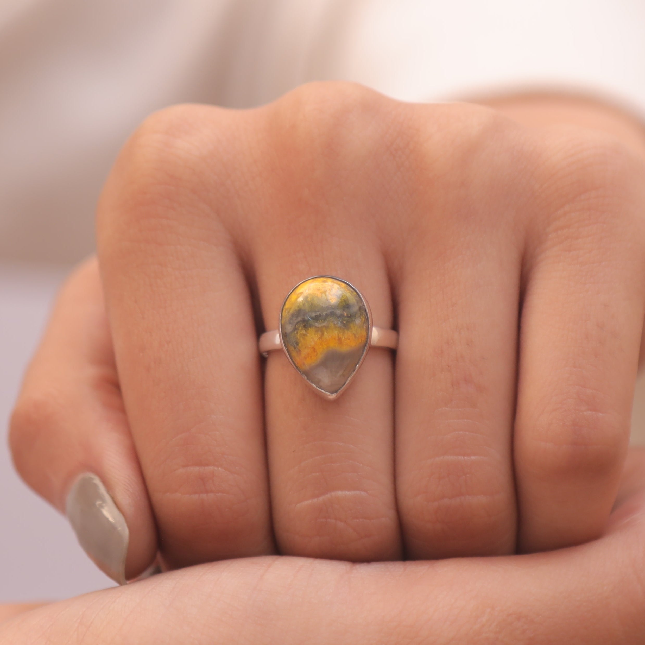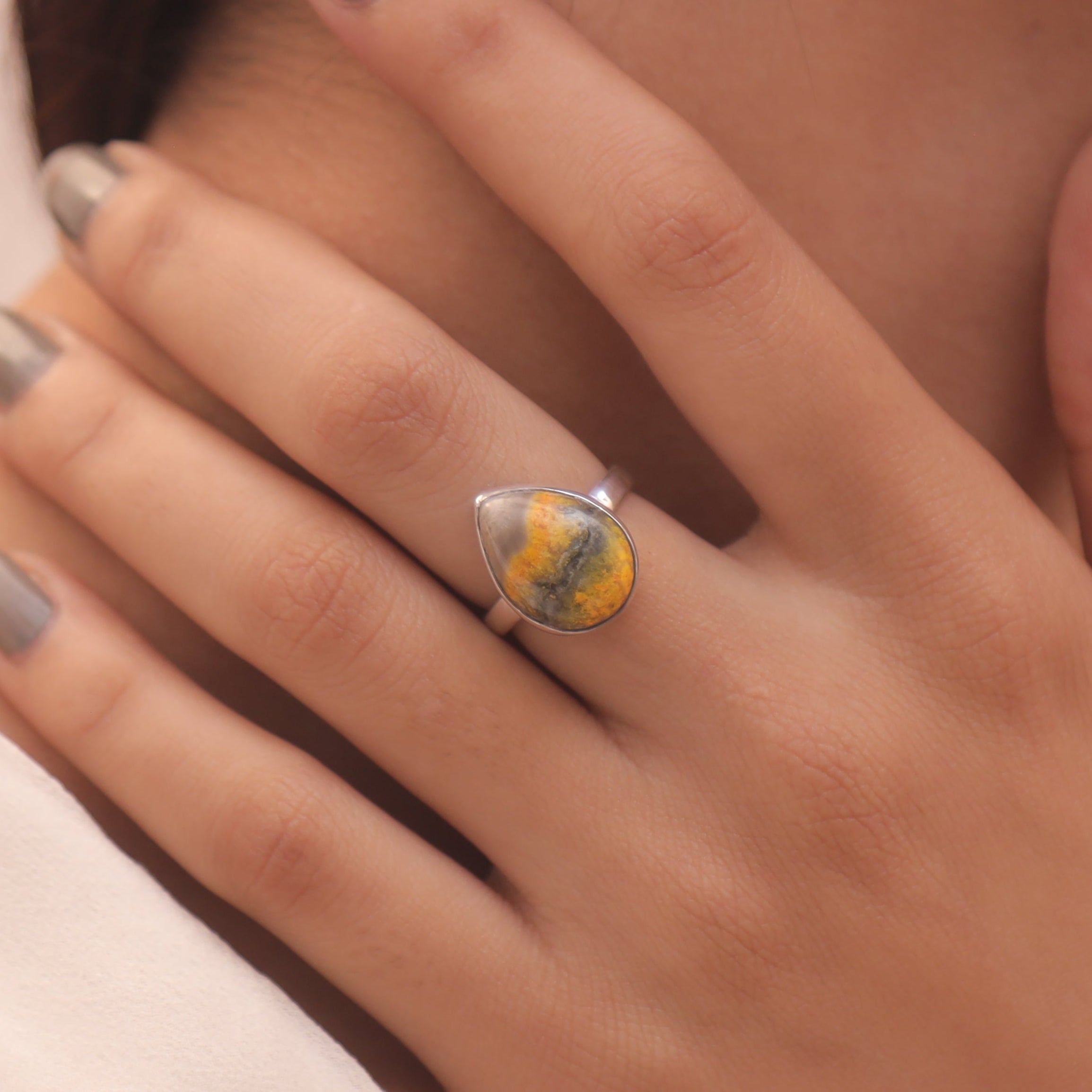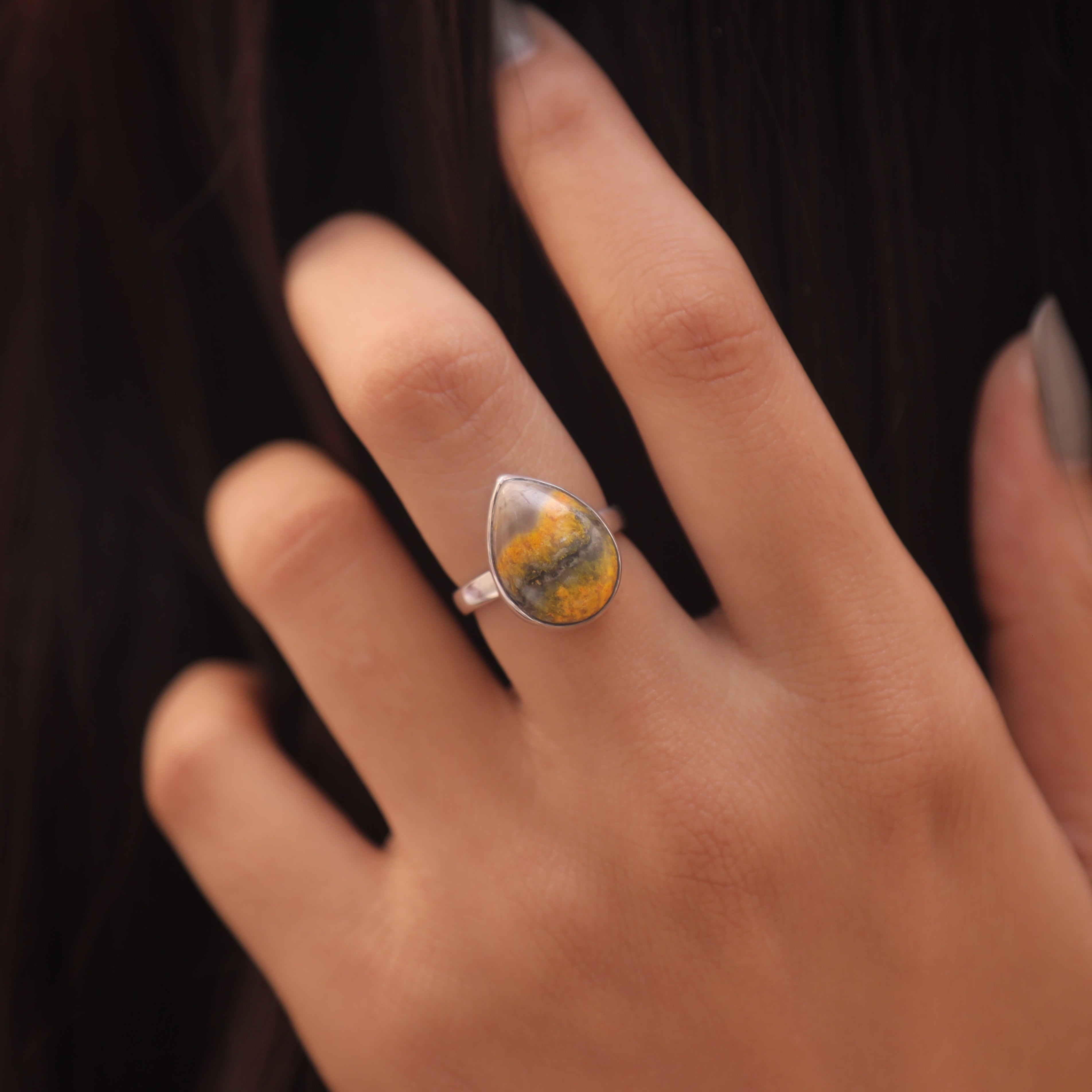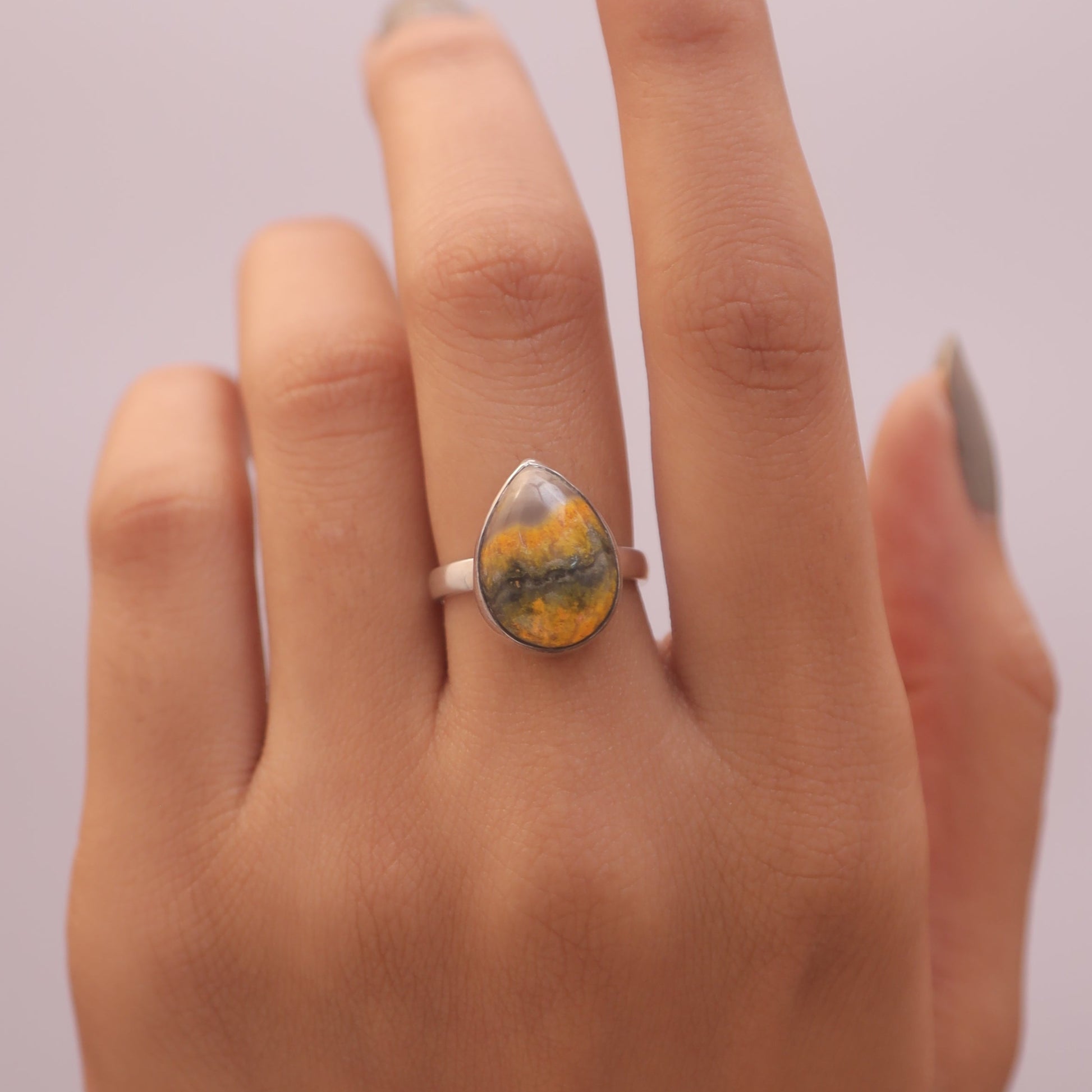 Elevate your style with the Bumblebee Jasper Sterling Silver Ring, a testament to blending natural beauty with refined craftsmanship. Each ring features a radiant Bumblebee Jasper gemstone, carefully cut to enhance its inherent allure and brilliance. Set in 925 sterling silver, these rings offer durability and a lasting shine that complements the gemstone's vibrant hue.