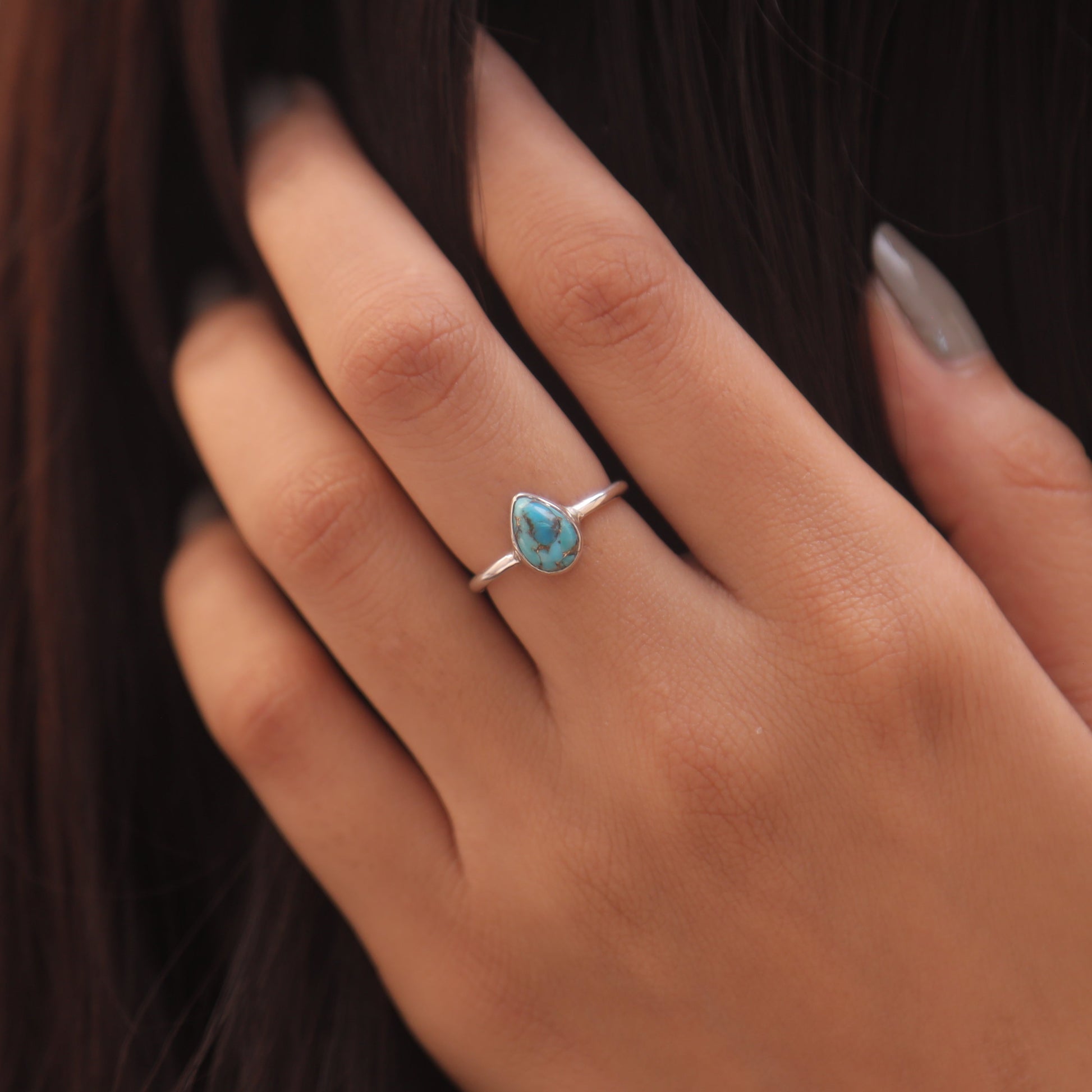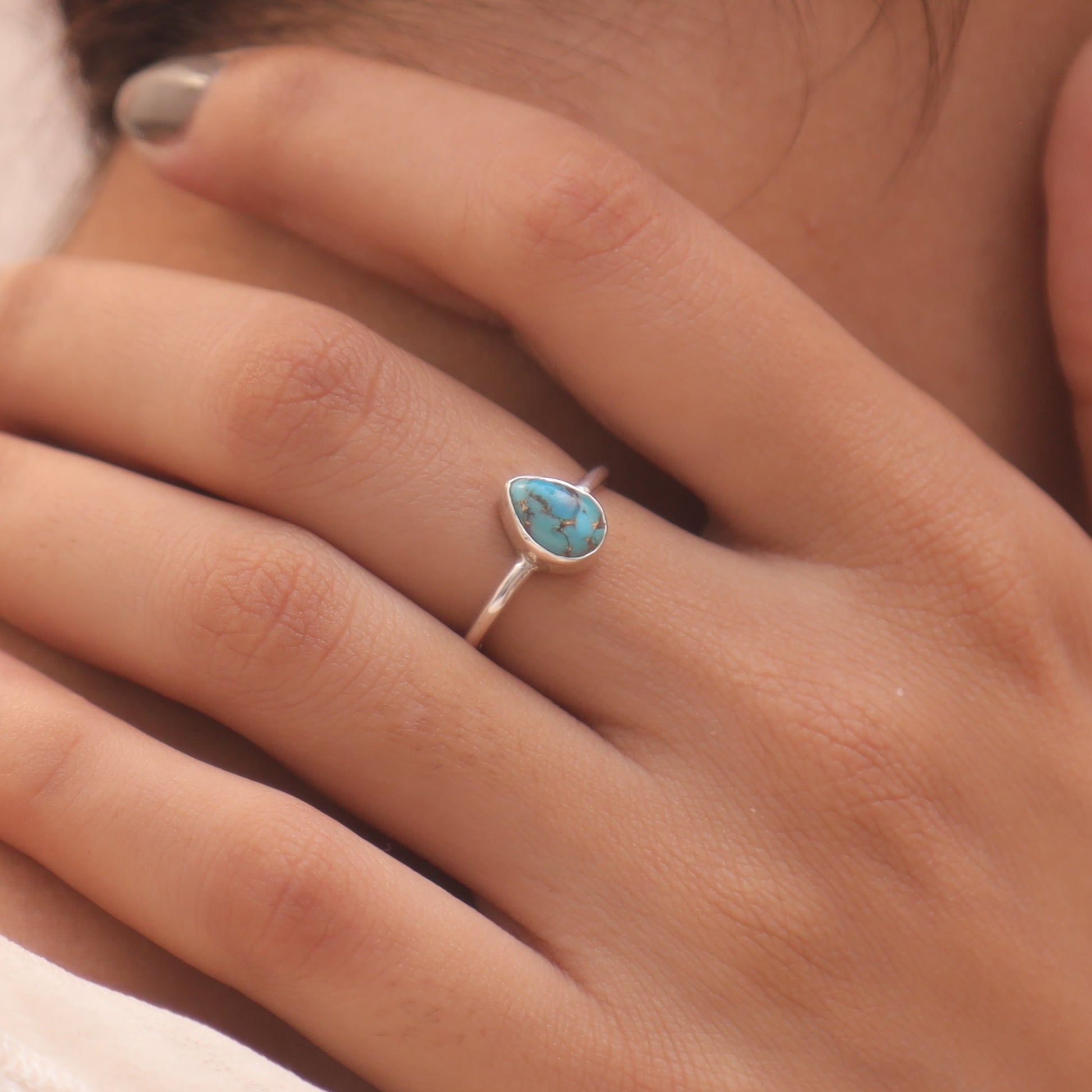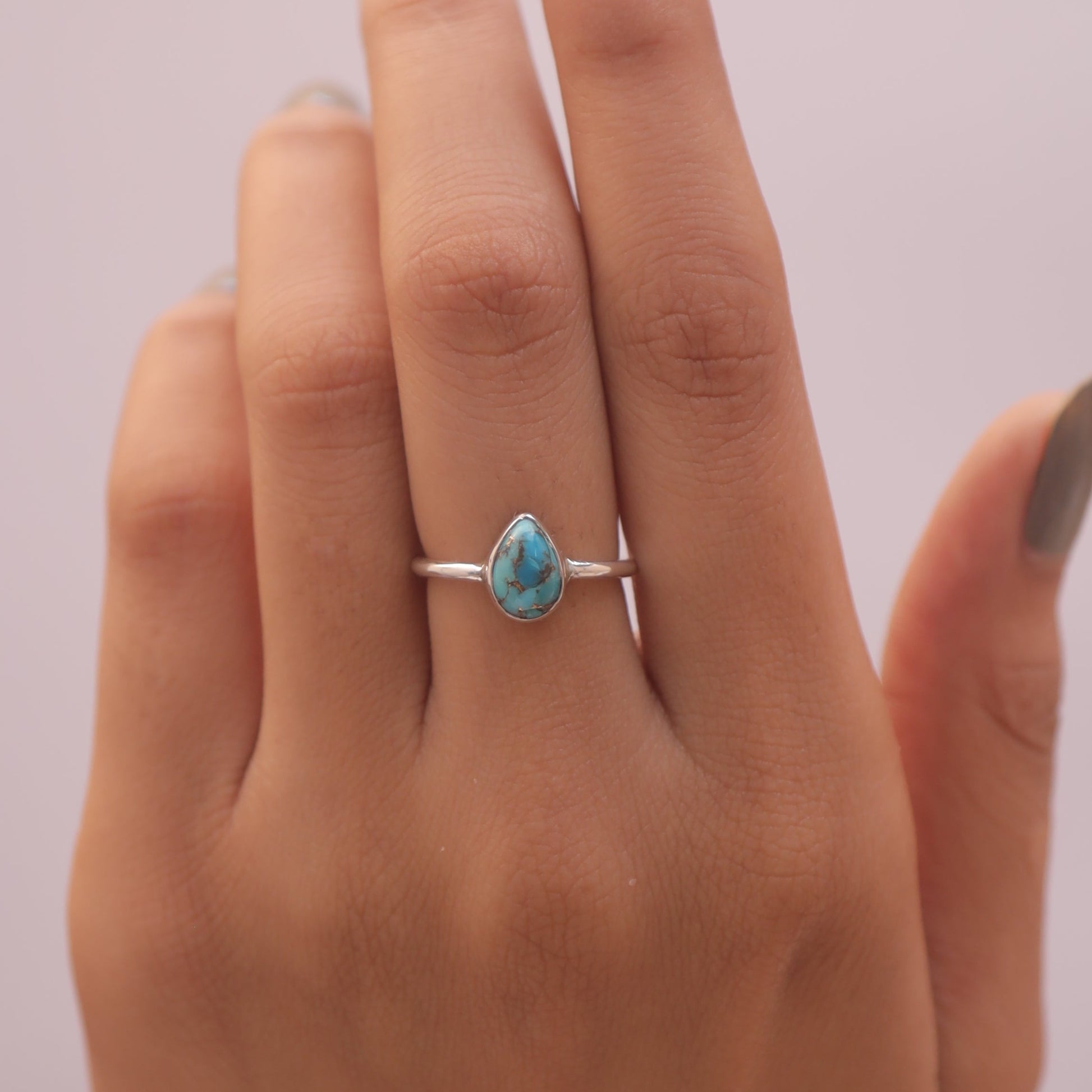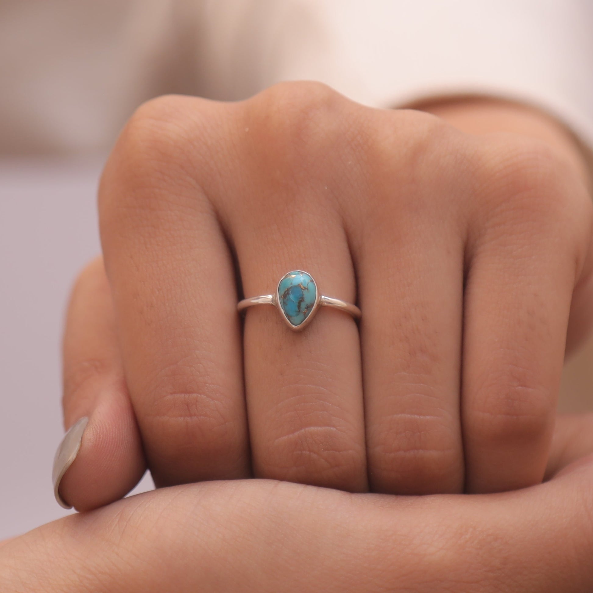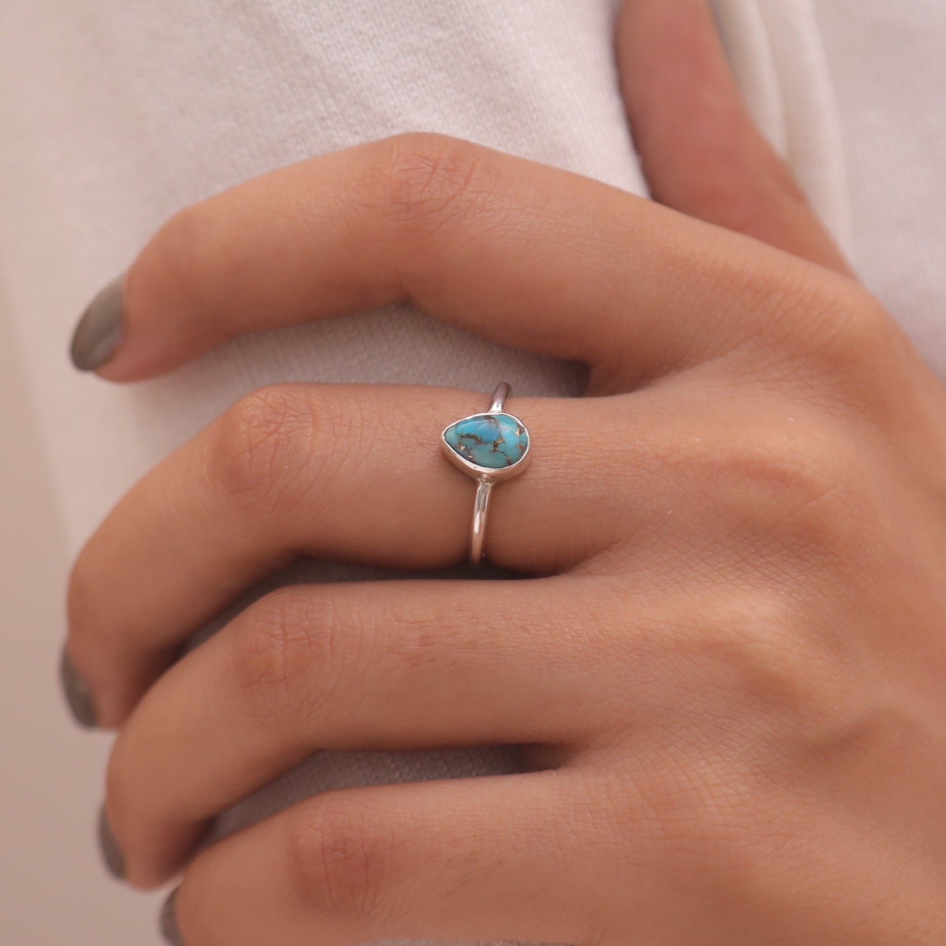 Elevate your style with the Blue Copper Turquoise Ring, a masterpiece that blends natural beauty with refined craftsmanship. The ring features a radiant Blue Copper Turquoise centrepiece, carefully cut to enhance its inherent allure and brilliance. Set in a band crafted from 925 sterling silver, it offers durability and a lasting shine that complements the gemstone's vibrant hue.