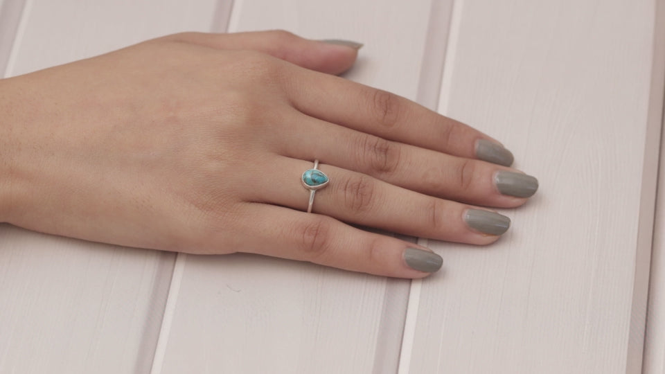 Each detail of the ring showcases expert craftsmanship, from the precisely set prongs securing the Blue Copper Turquoise to the polished silver band ensuring a comfortable fit. The design allows the Blue Copper Turquoise to shine as the focal point, making it a versatile accessory suitable for everyday wear or special occasions.