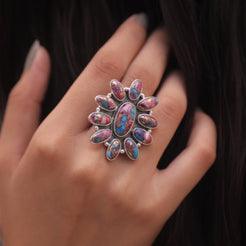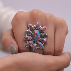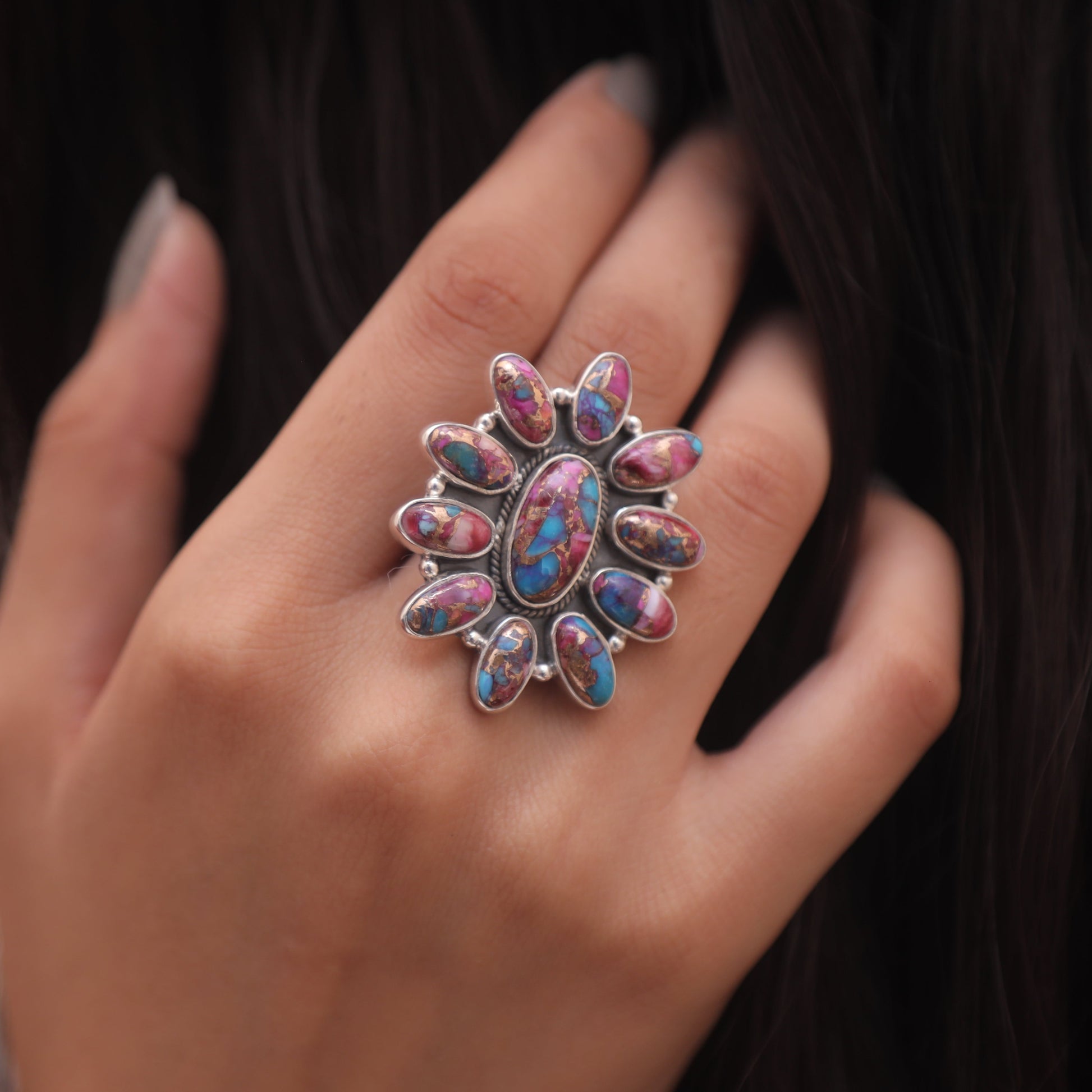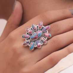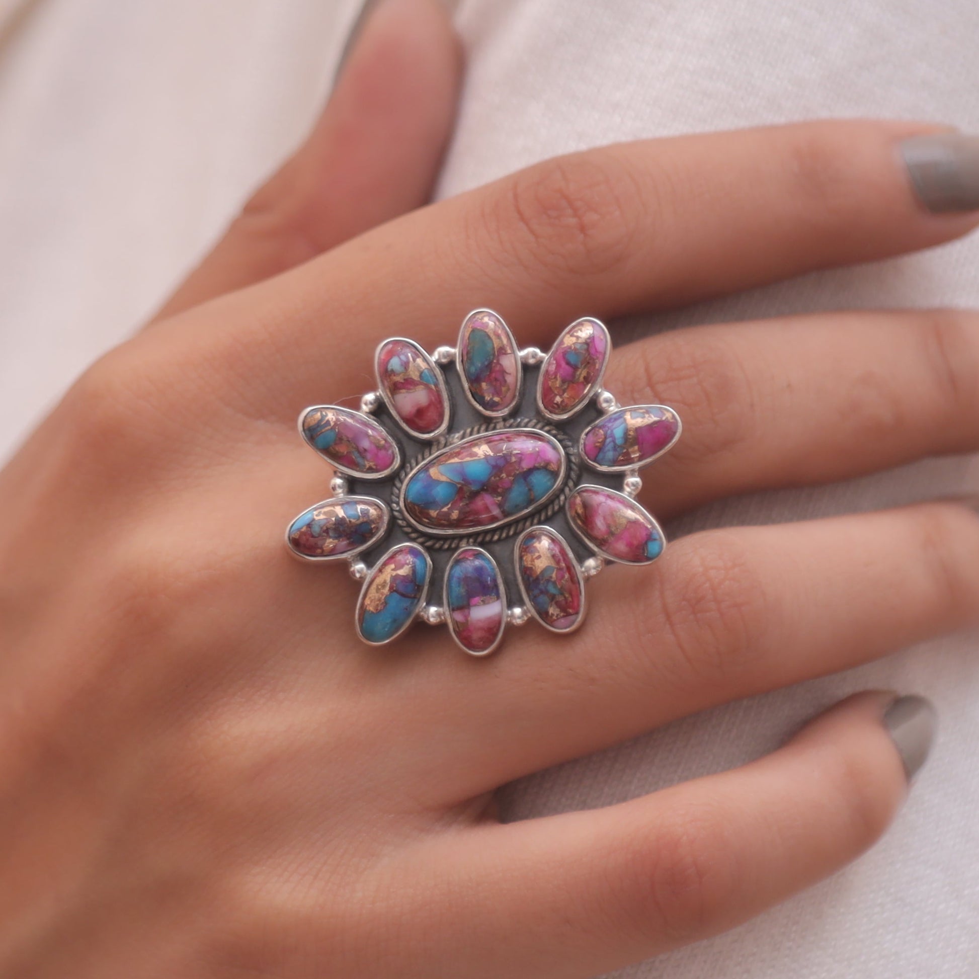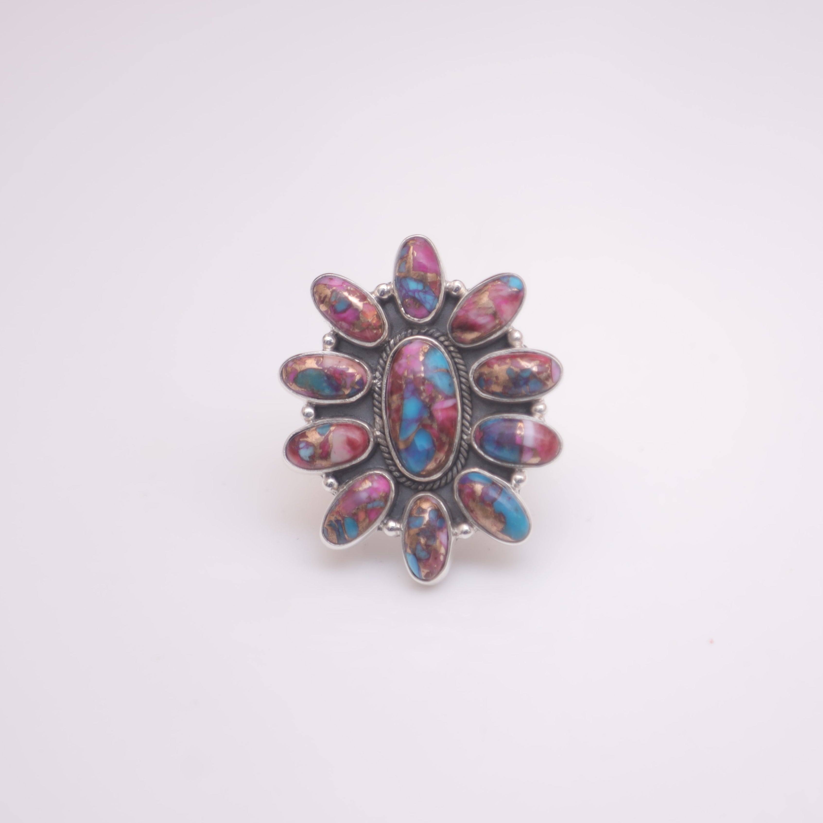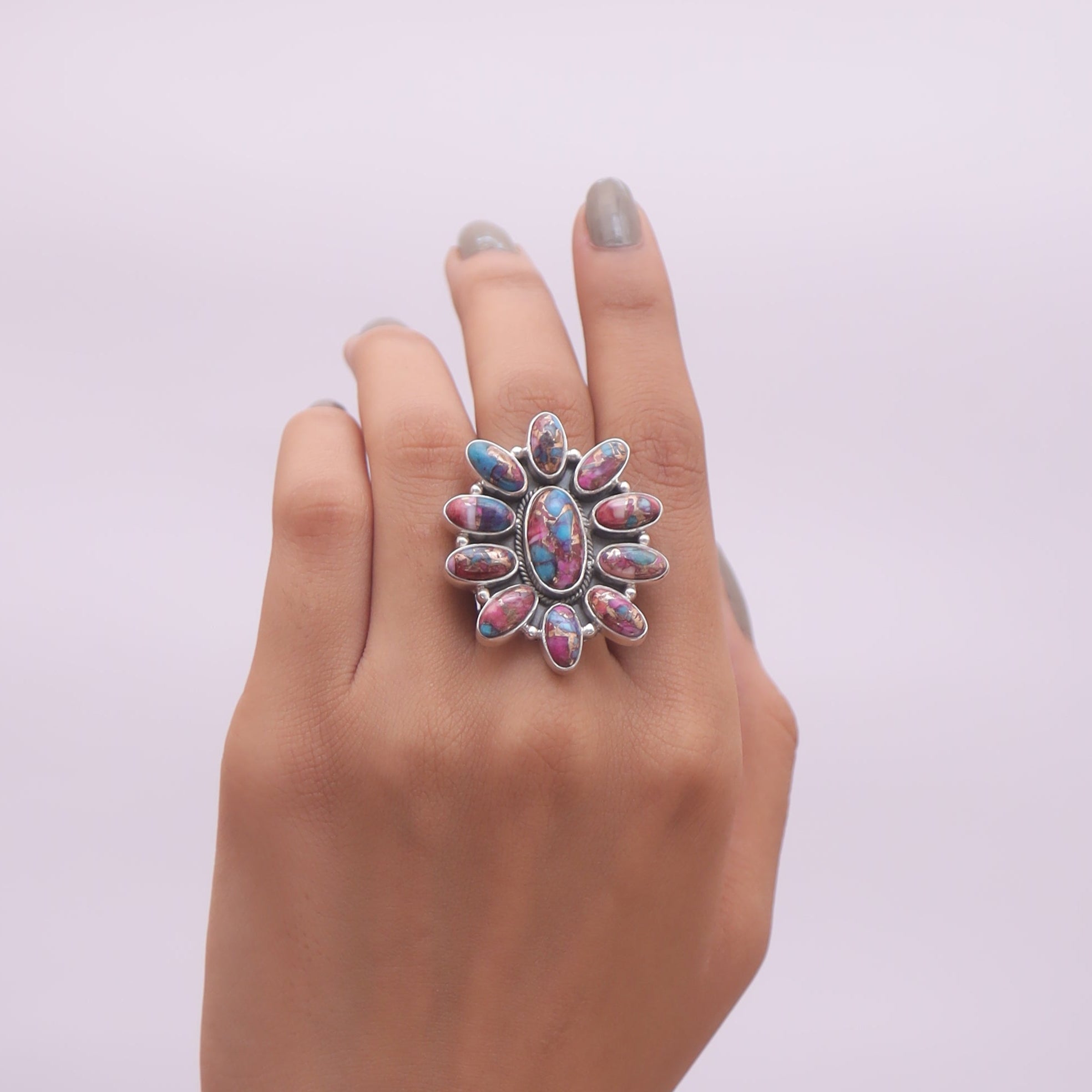 Each detail of the ring showcases expert craftsmanship, from the precisely set prongs securing the Pink Oyster Turquois to the polished silver band ensuring a comfortable fit. The design allows the Oyster Turquois to shine as the focal point, making it a versatile accessory suitable for everyday wear or special occasions.