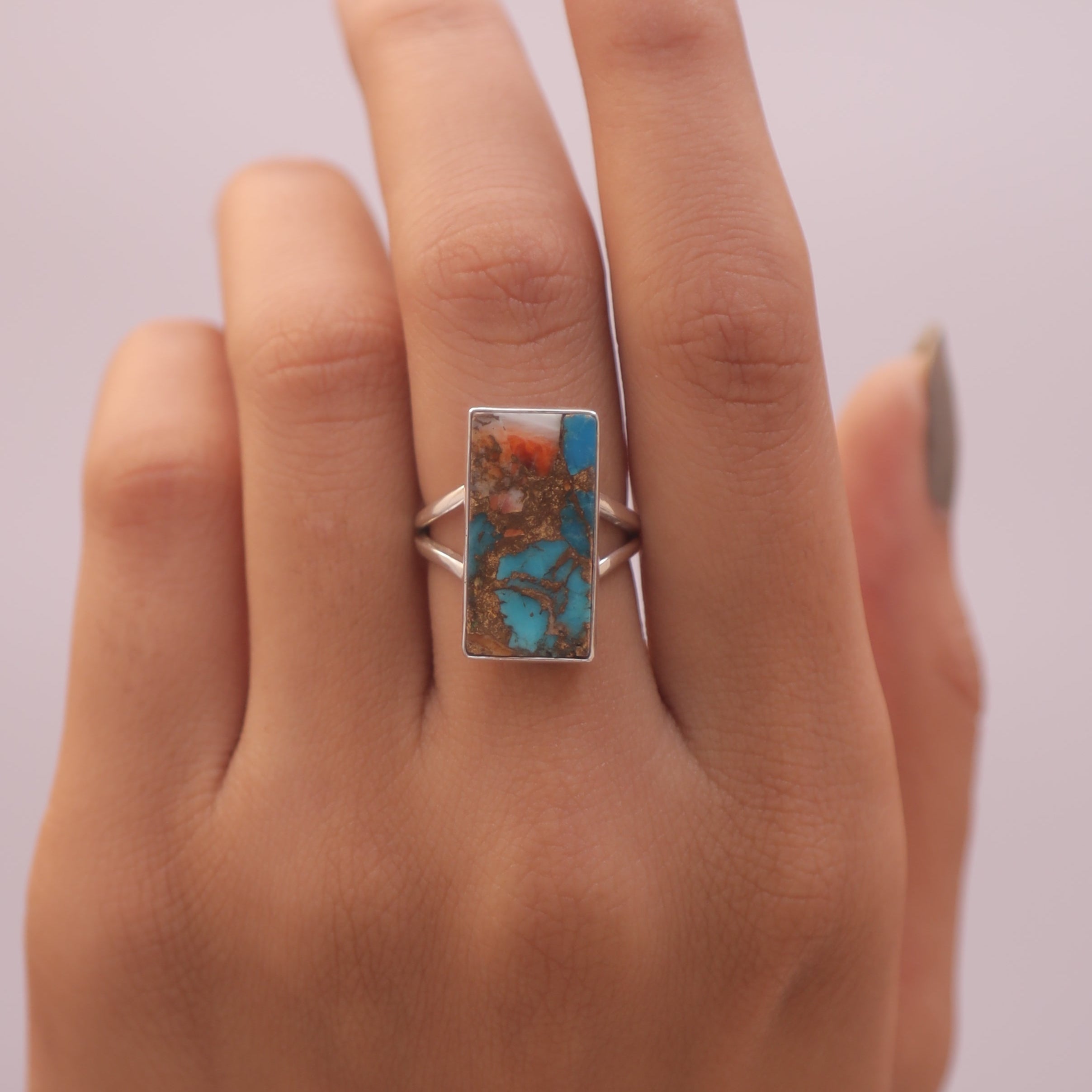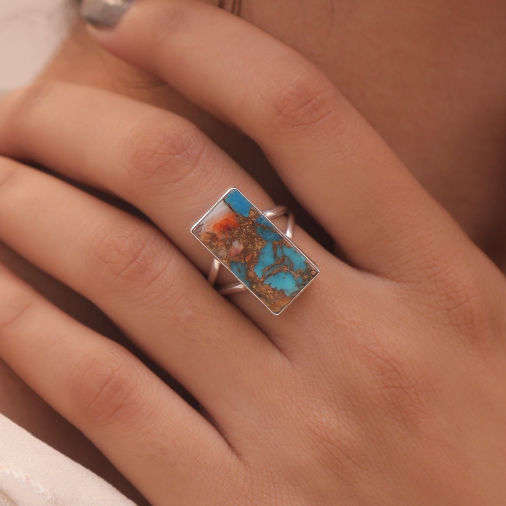 Elevate your style with the Oyster Turquoise Ring, a masterpiece that blends natural beauty with refined craftsmanship. The ring features a radiant Oyster Turquois centerpiece, carefully cut to enhance its inherent allure and brilliance. Set in a band crafted from 925 sterling silver, it offers durability and a lasting shine that complements the gemstone's vibrant hue.