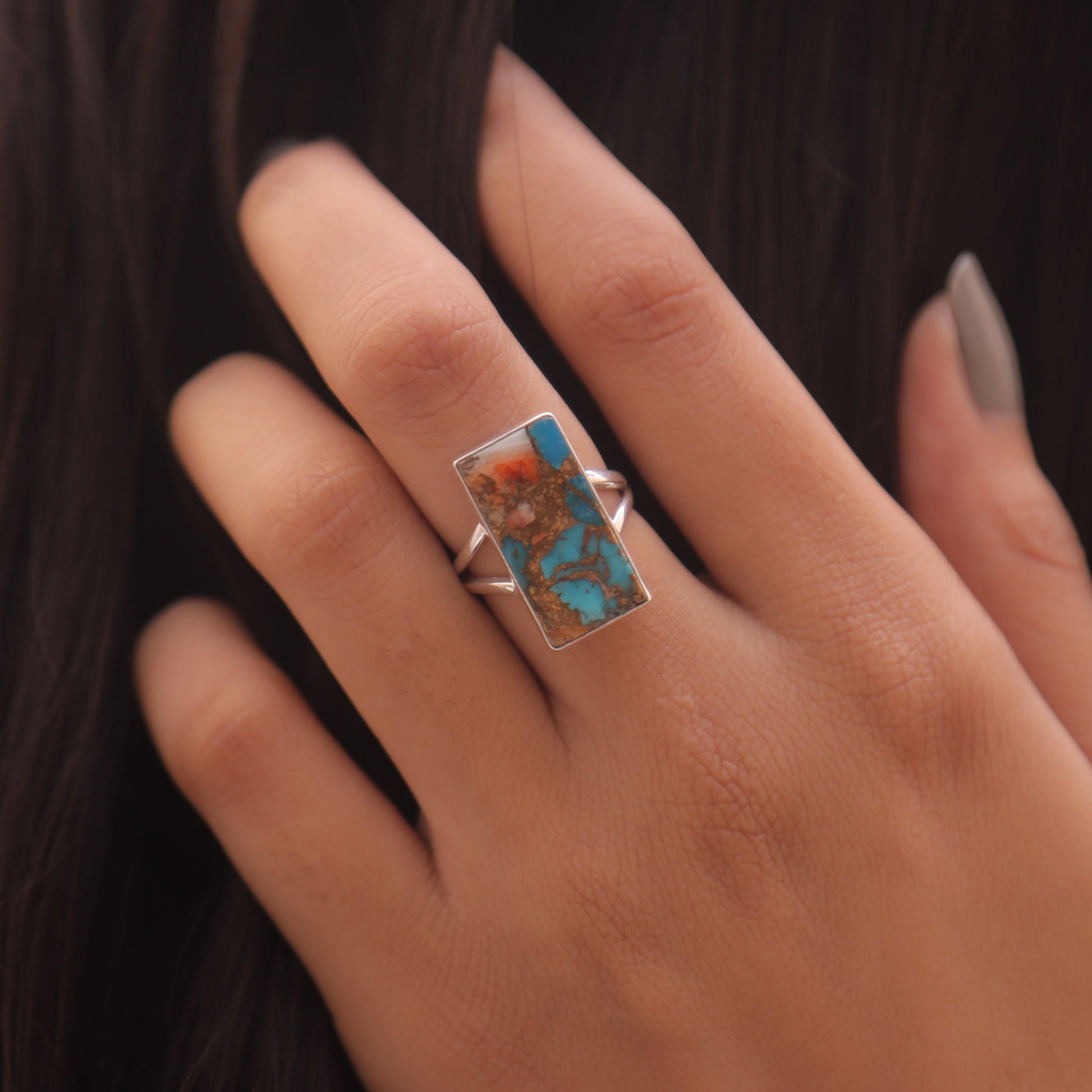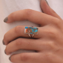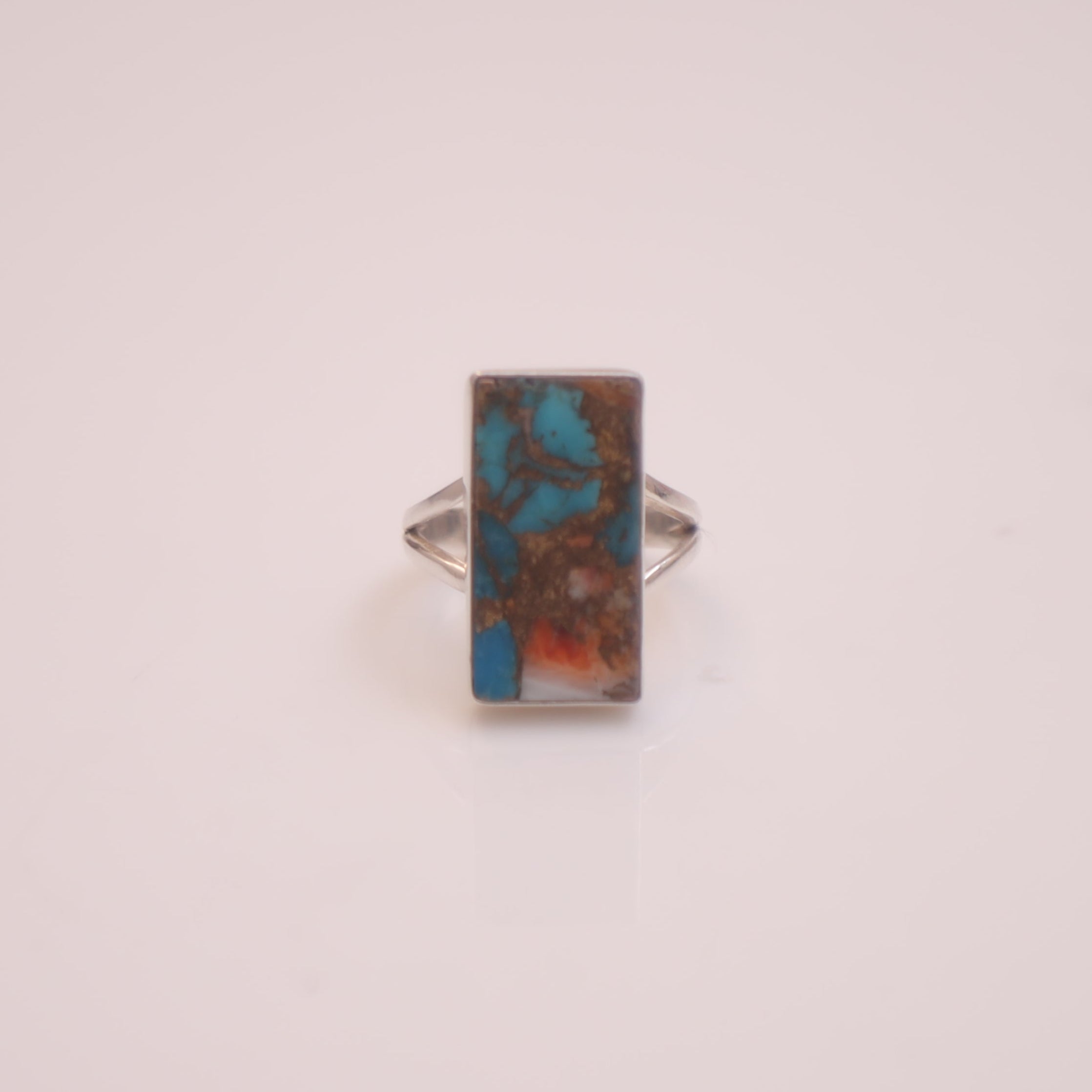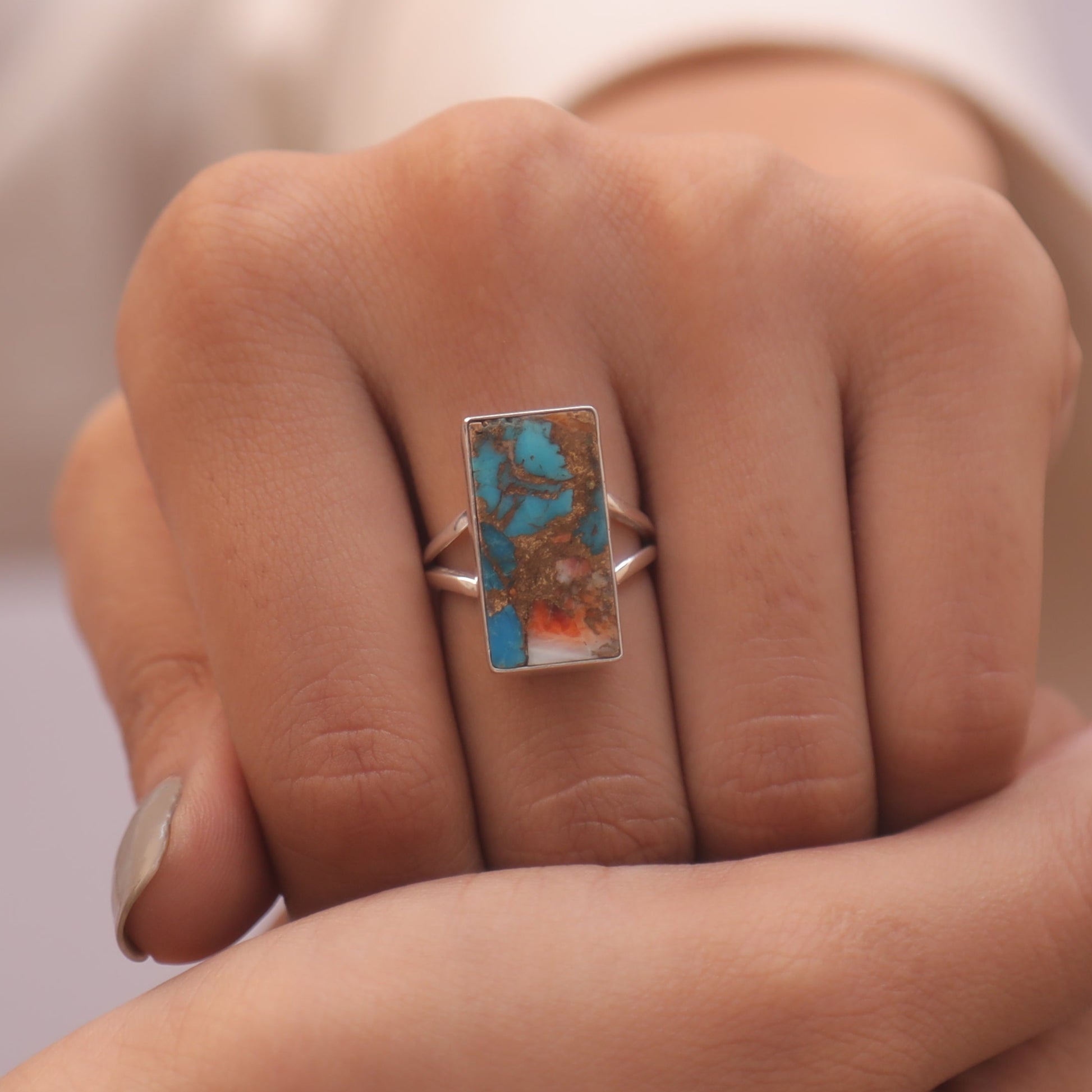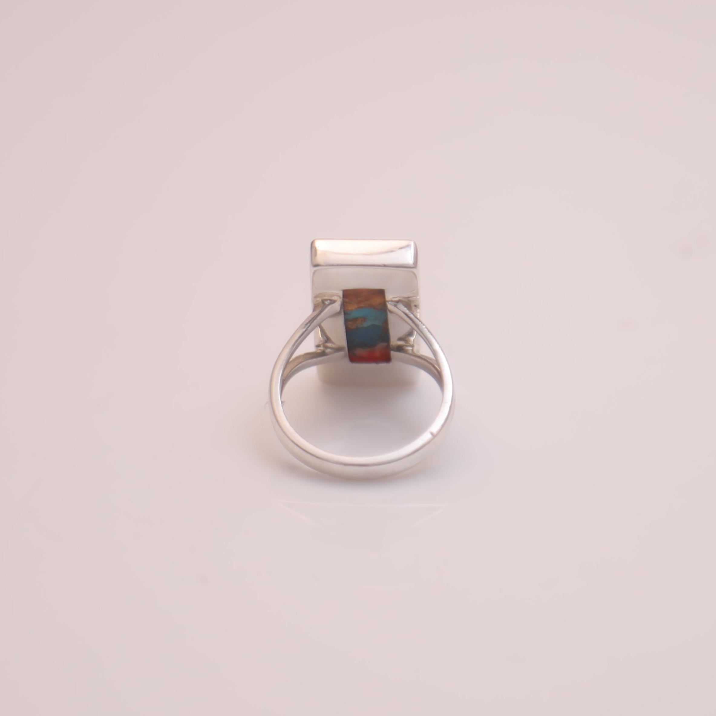 Each detail of the ring showcases expert craftsmanship, from the precisely set prongs securing the Oyster Turquois to the polished silver band ensuring a comfortable fit. The design allows the Oyster Turquois to shine as the focal point, making it a versatile accessory suitable for everyday wear or special occasions.