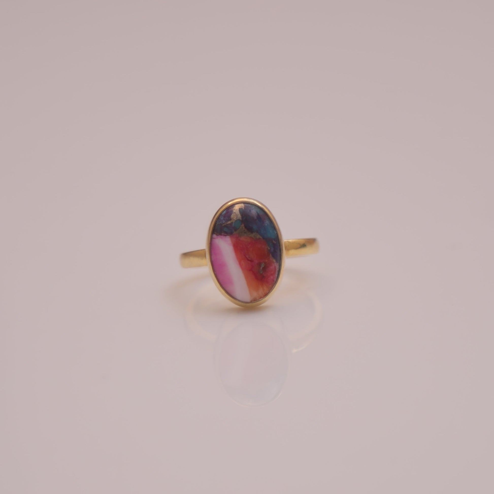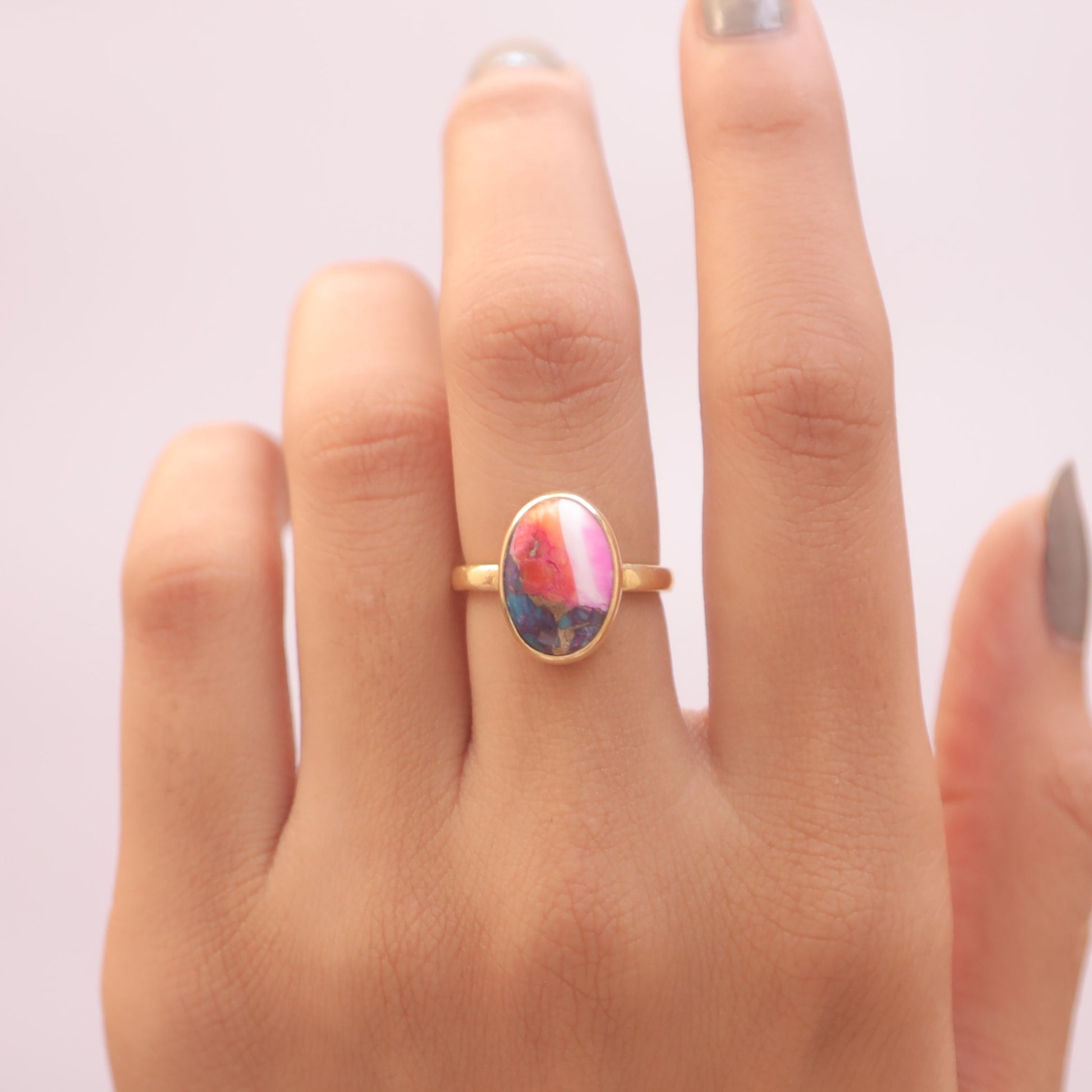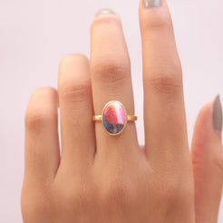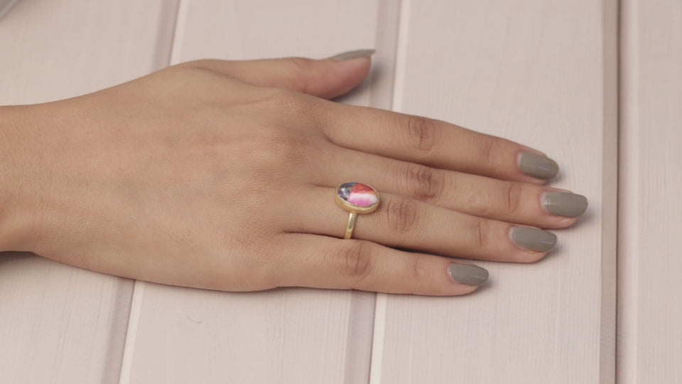 Pink Oyster Turquoise 18k Gold Plated Sterling Silver Ring