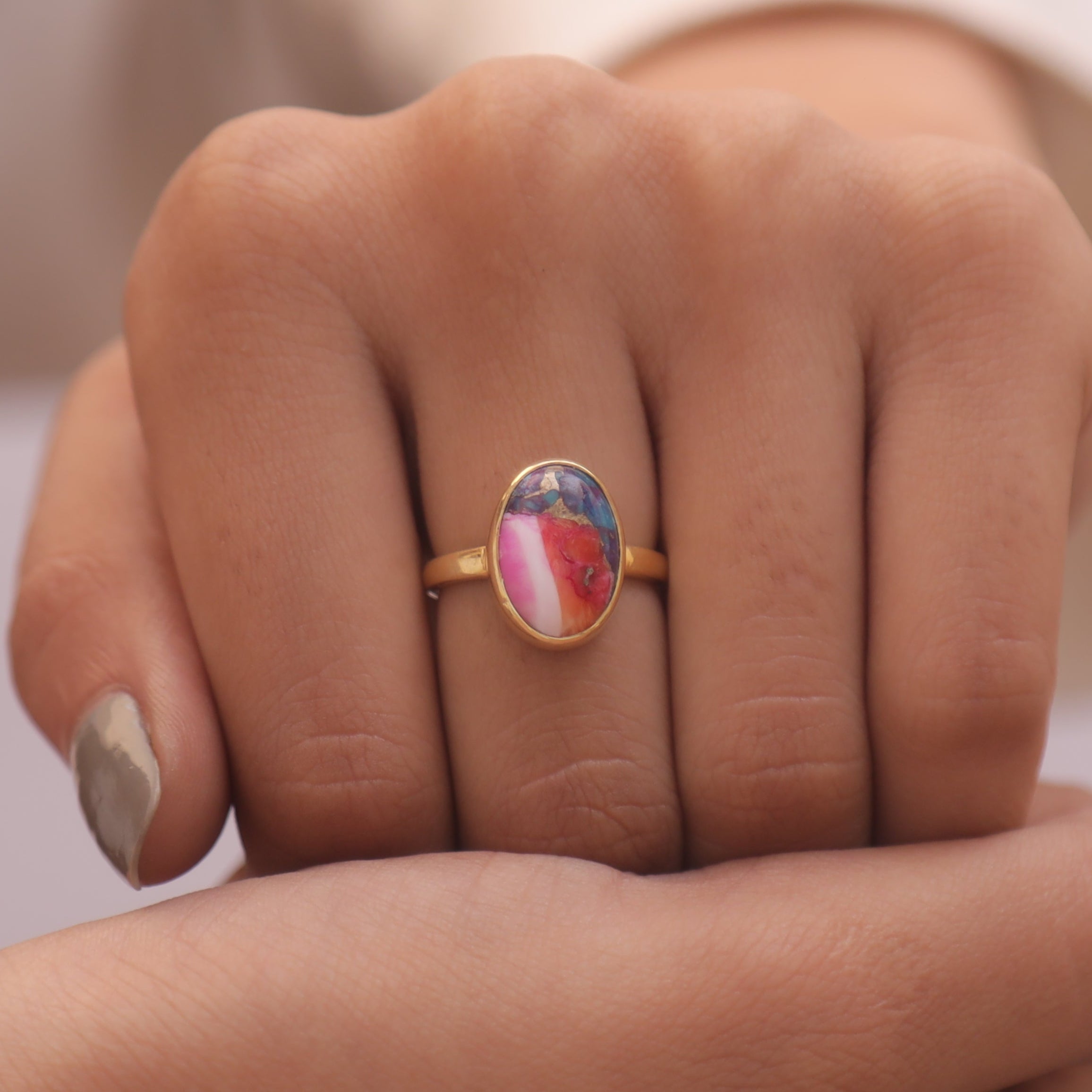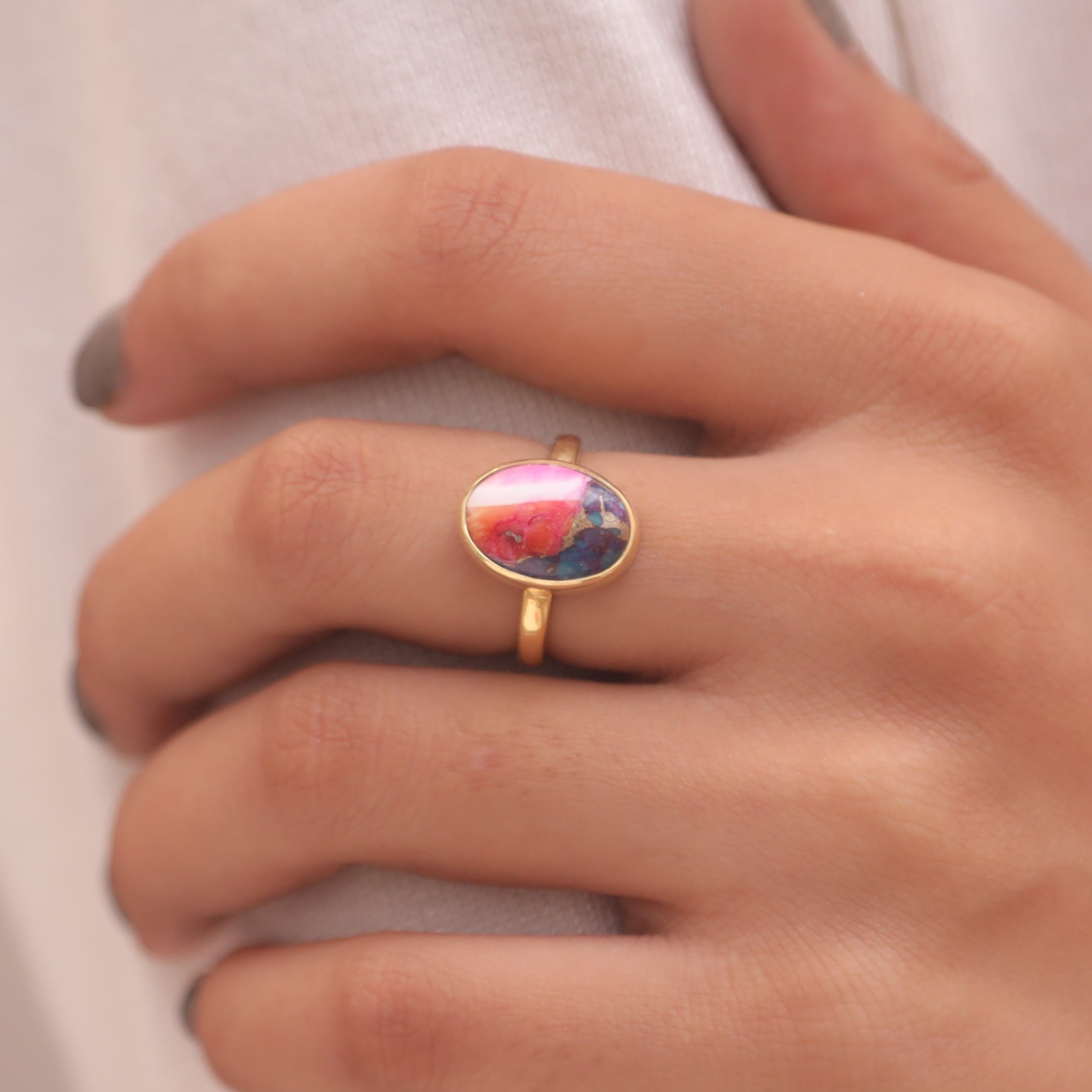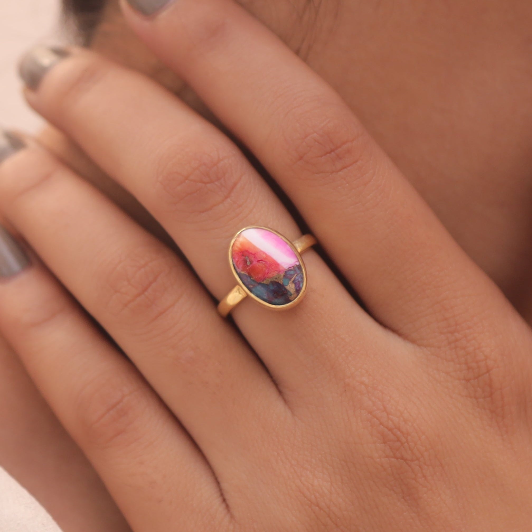 Pink Oyster Turquoise 18k Gold Plated Sterling Silver Ring