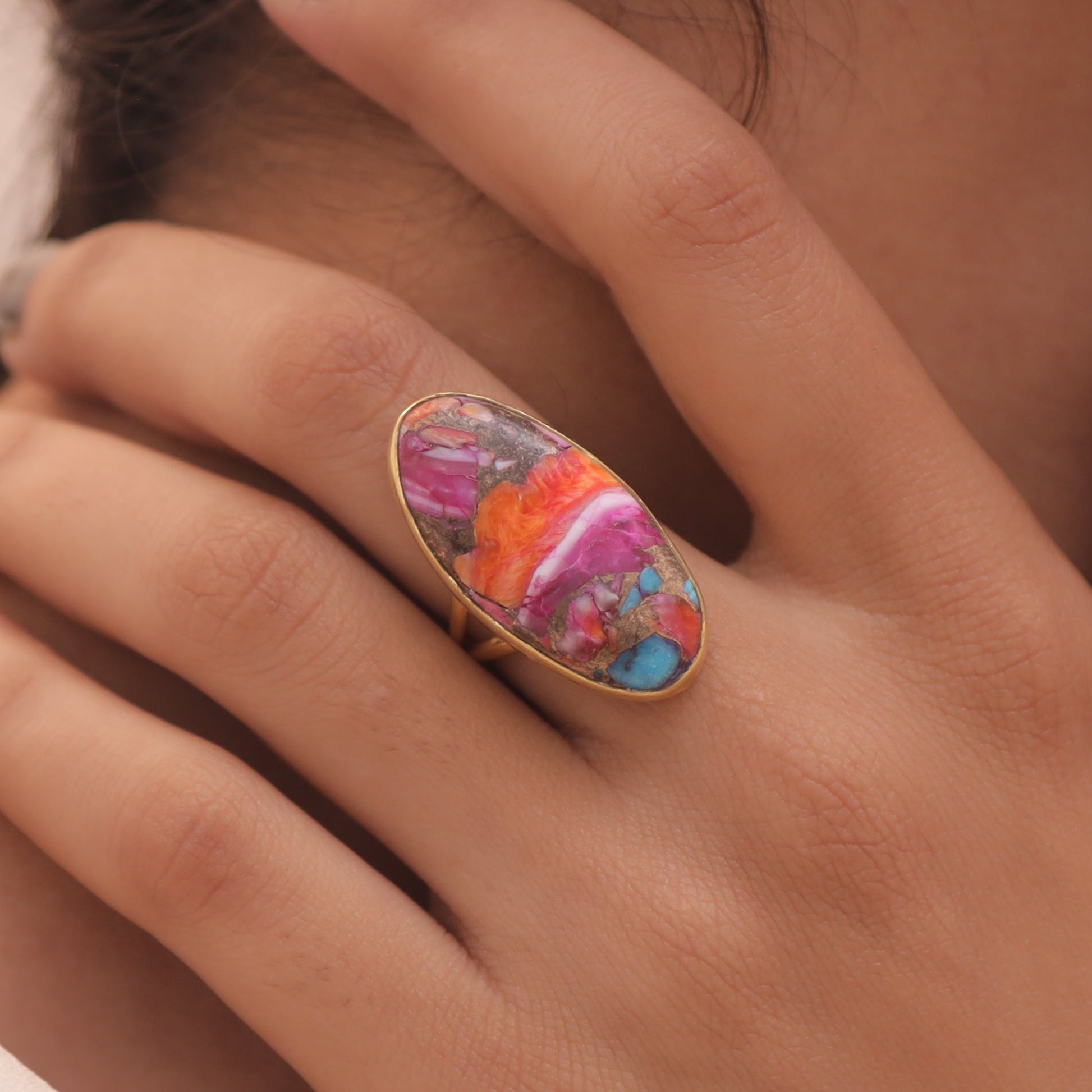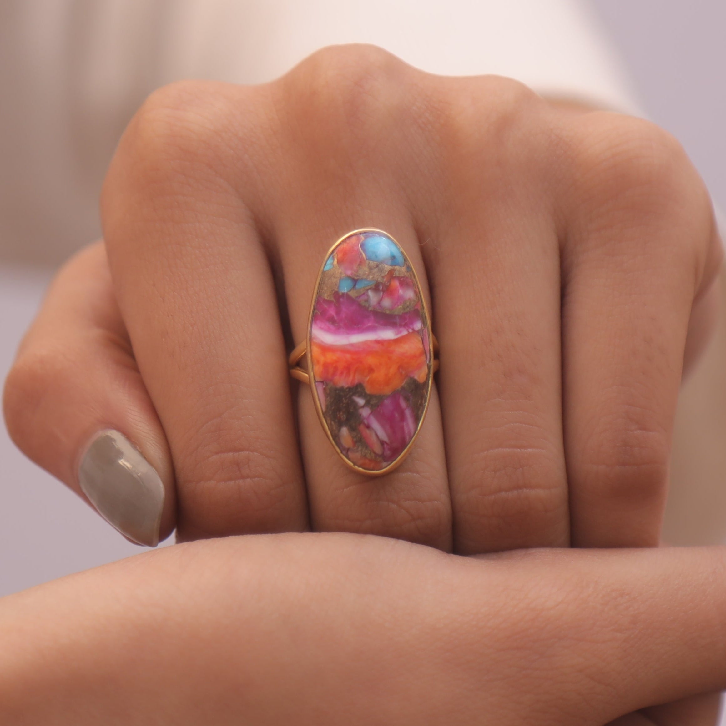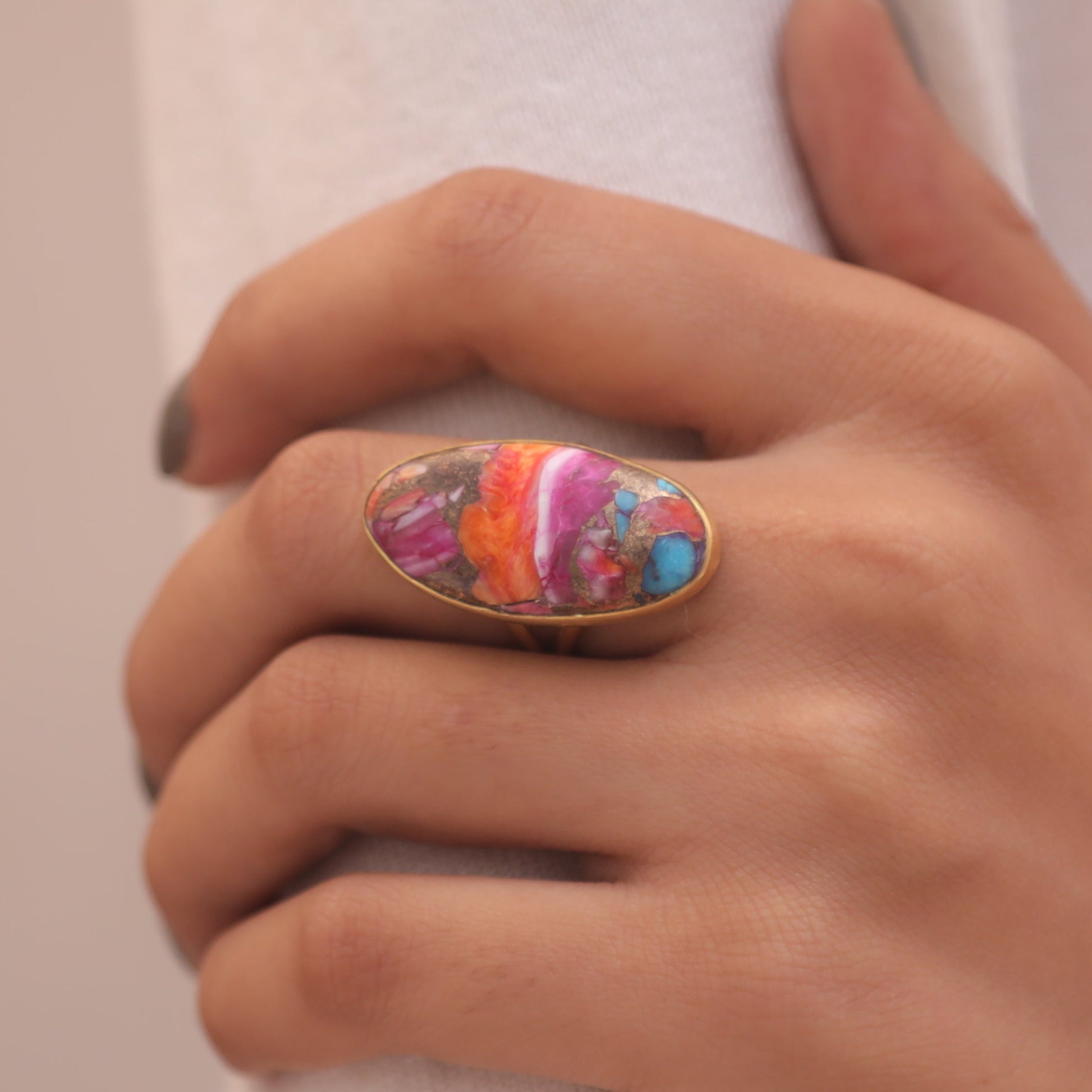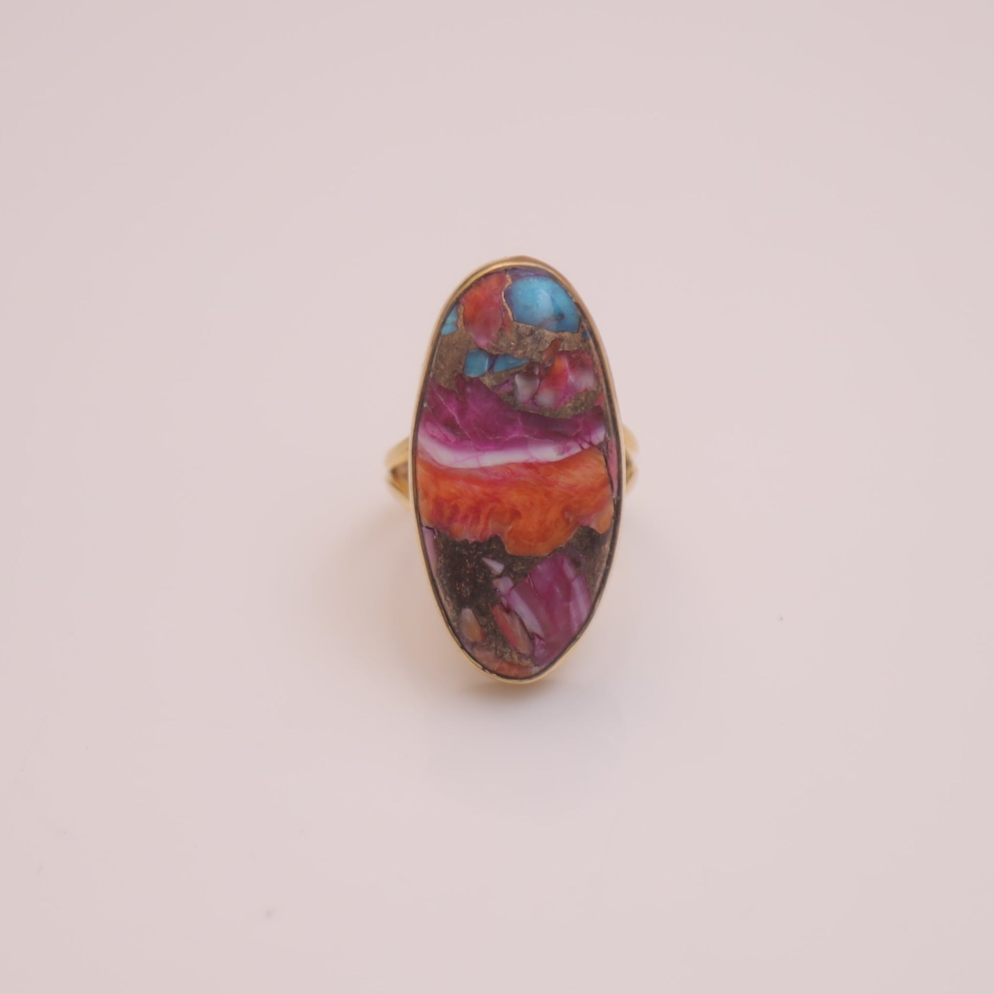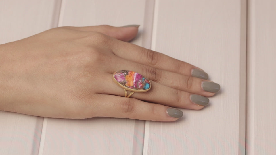 Pink Oyster Turquoise 18k Gold Plated Sterling Silver Ring