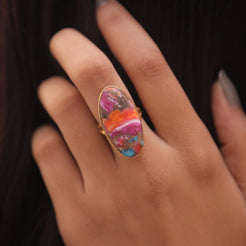 Each detail of the ring showcases expert craftsmanship, from the precisely set prongs securing the Pink Oyster Turquois to the polished silver band ensuring a comfortable fit. The design allows the Pink Oyster Turquois to shine as the focal point, making it a versatile accessory suitable for everyday wear or special occasions.