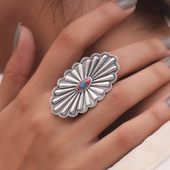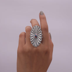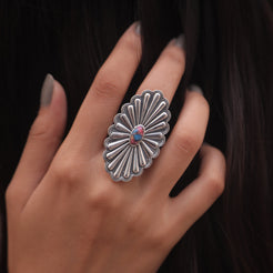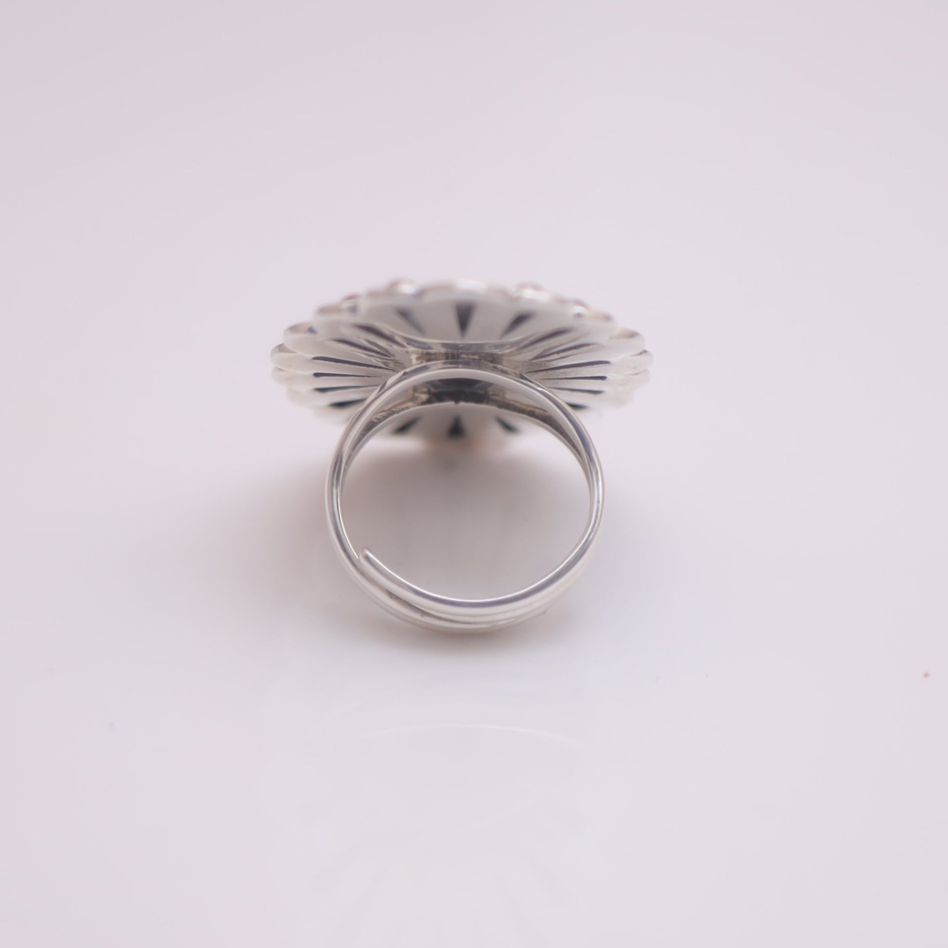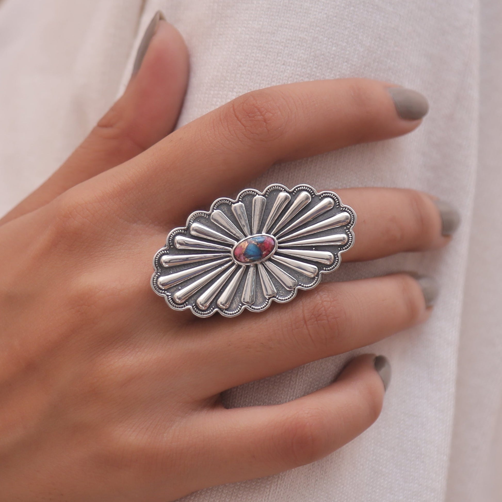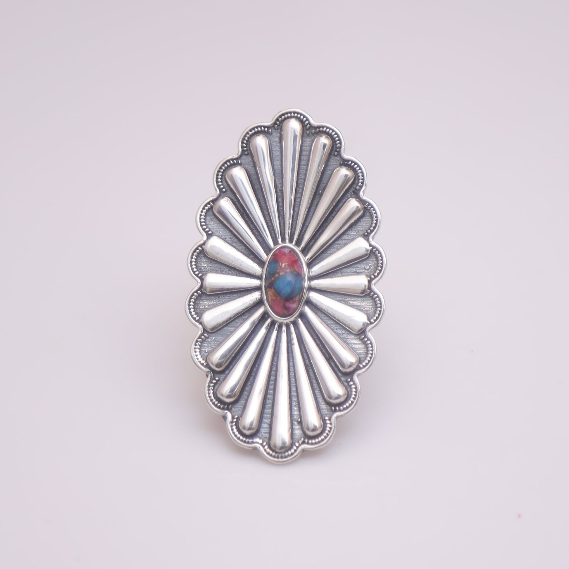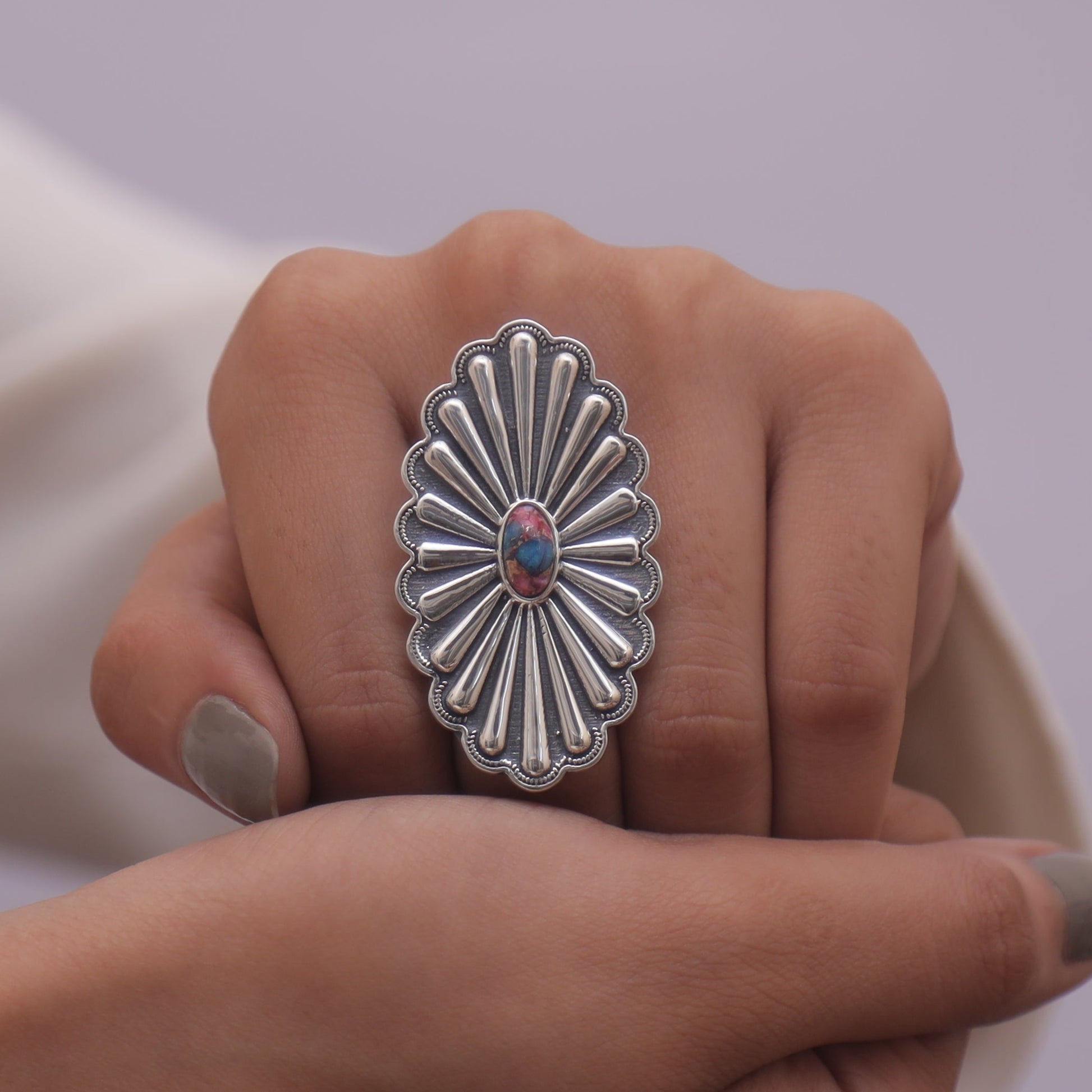 Each detail of the ring showcases expert craftsmanship, from the precisely set prongs securing the Pink Oyster Turquois to the polished silver band ensuring a comfortable fit. The design allows the Pink Oyster Turquois to shine as the focal point, making it a versatile accessory suitable for everyday wear or special occasions.
