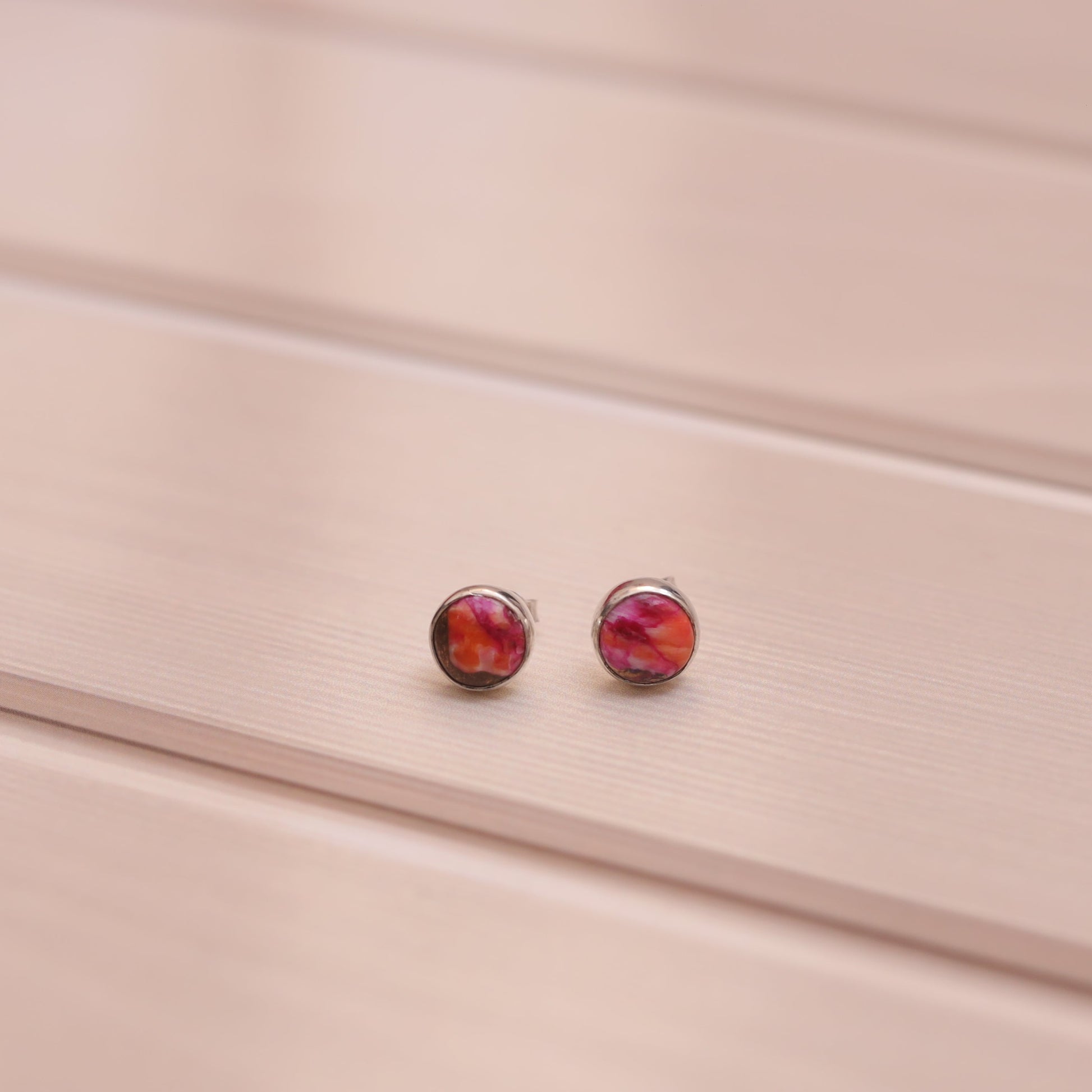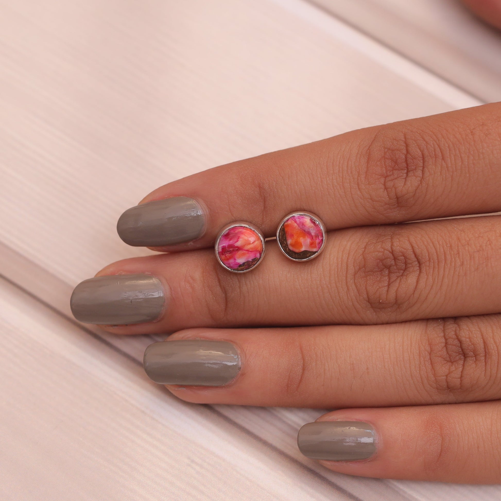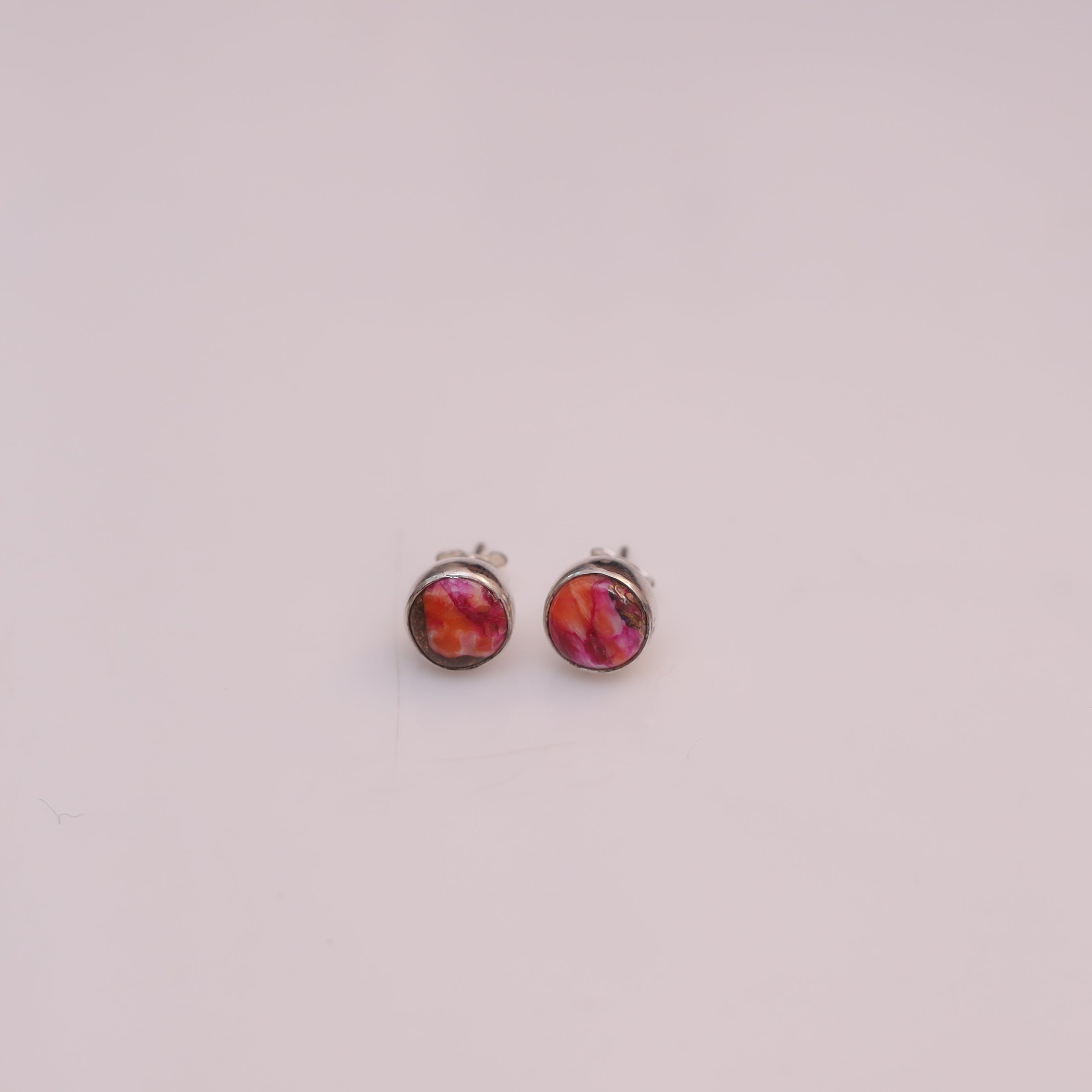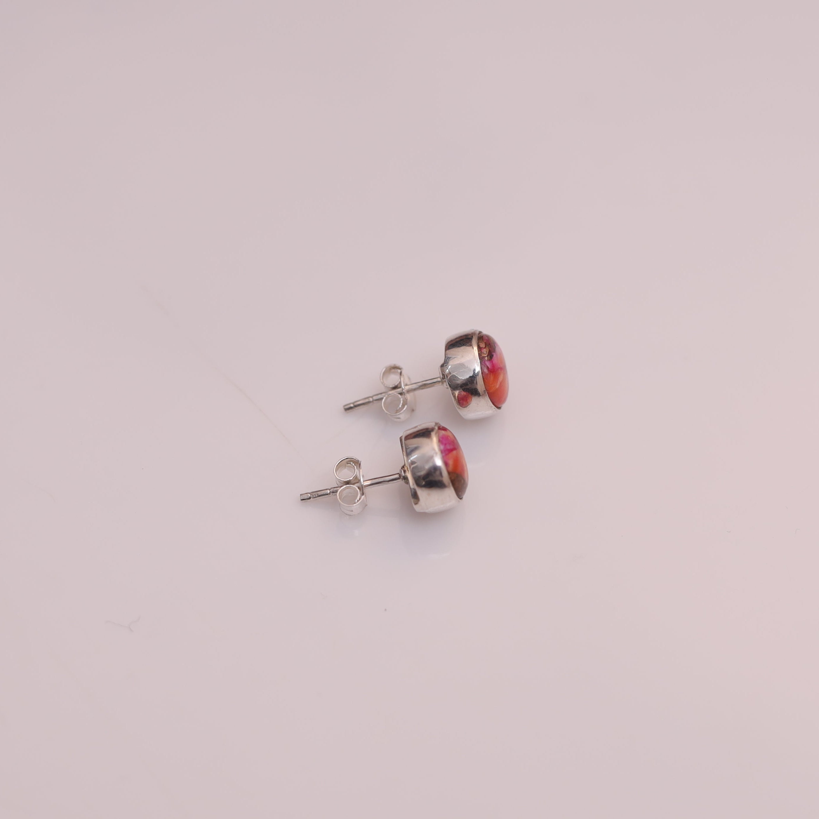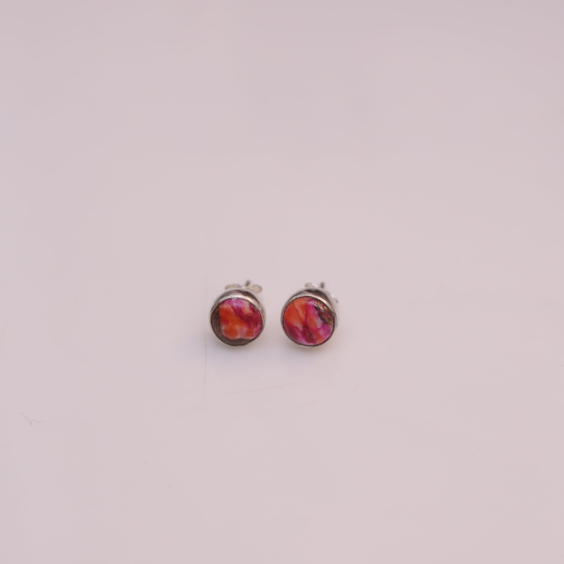 Pink Oyster Turquoise Sterling Silver Stud Earrings