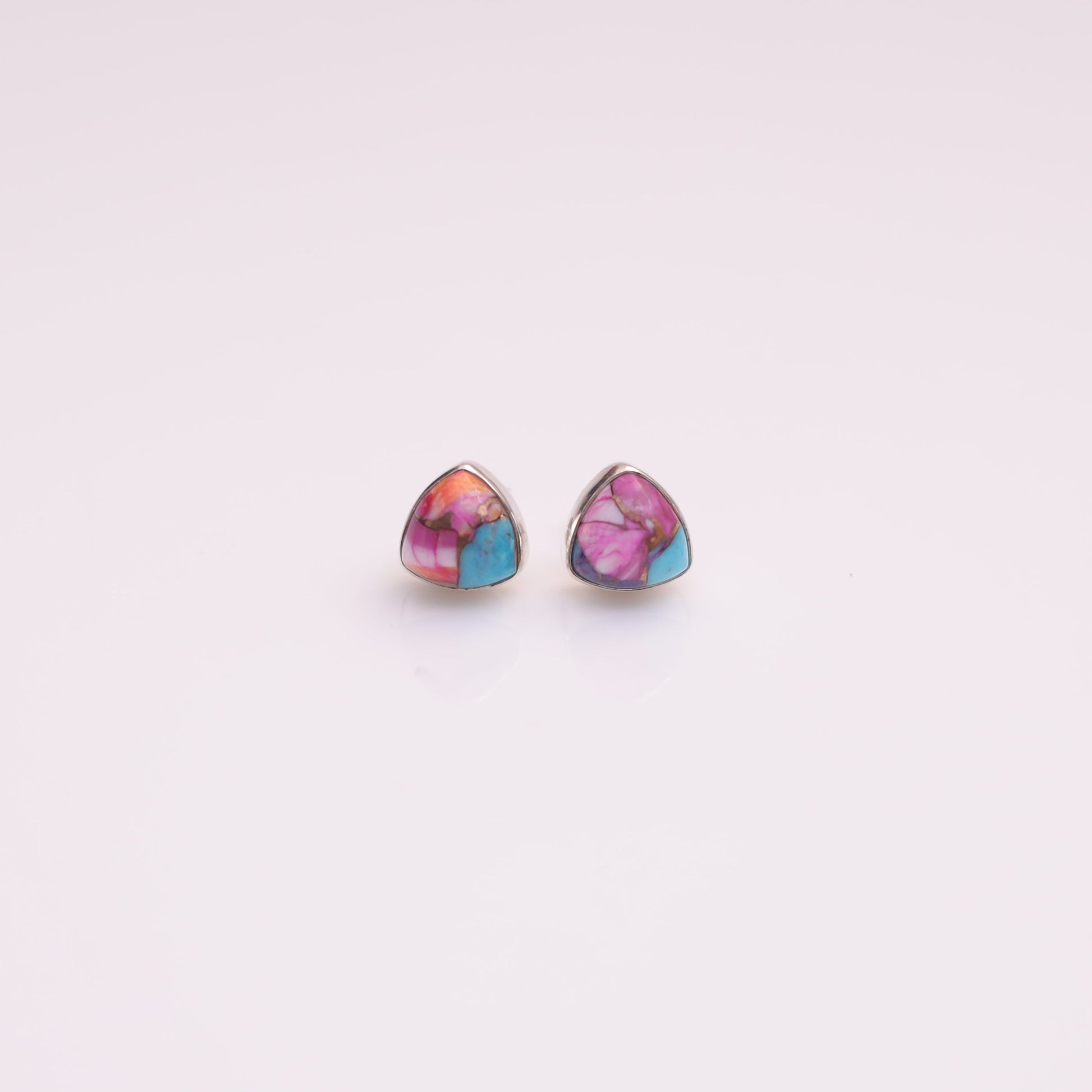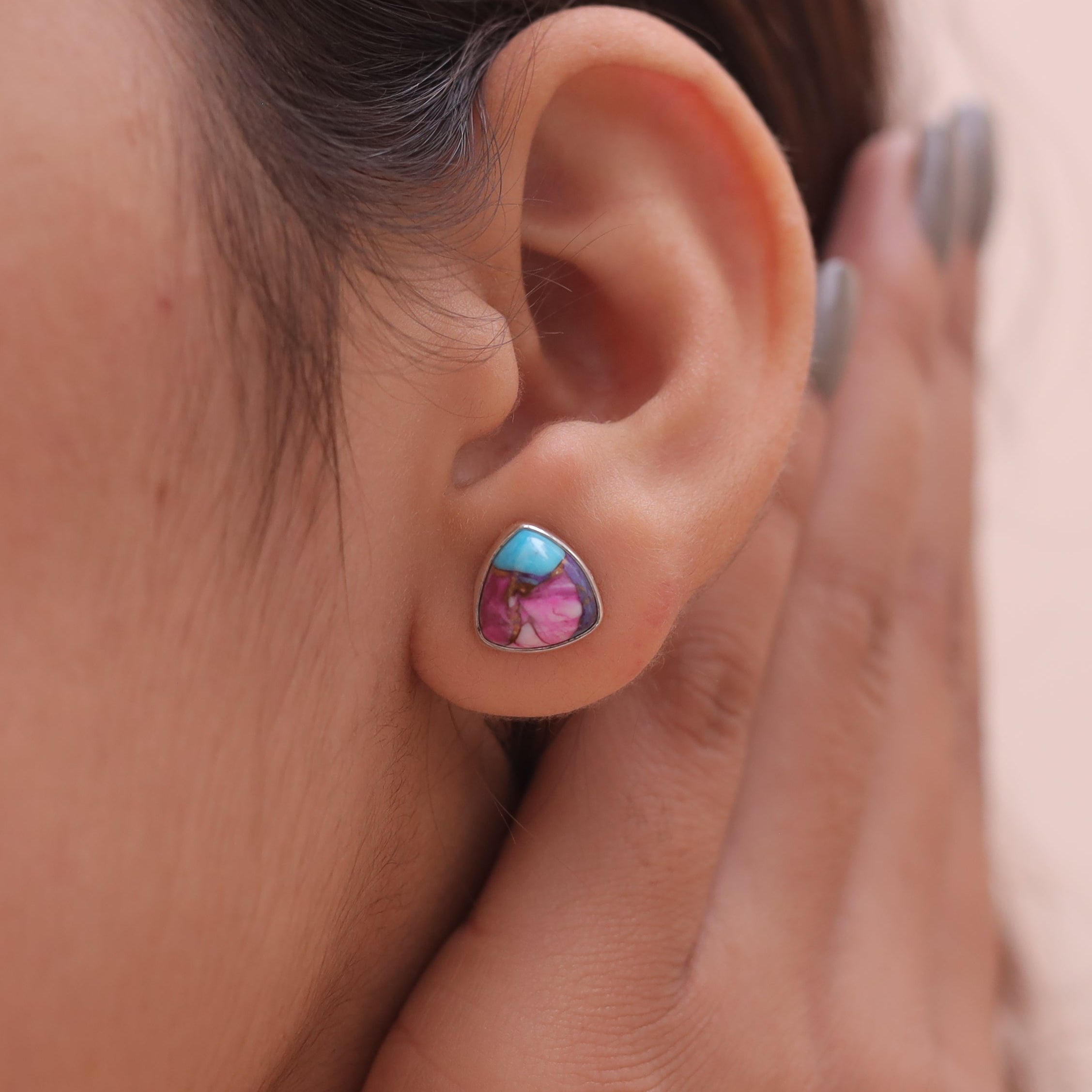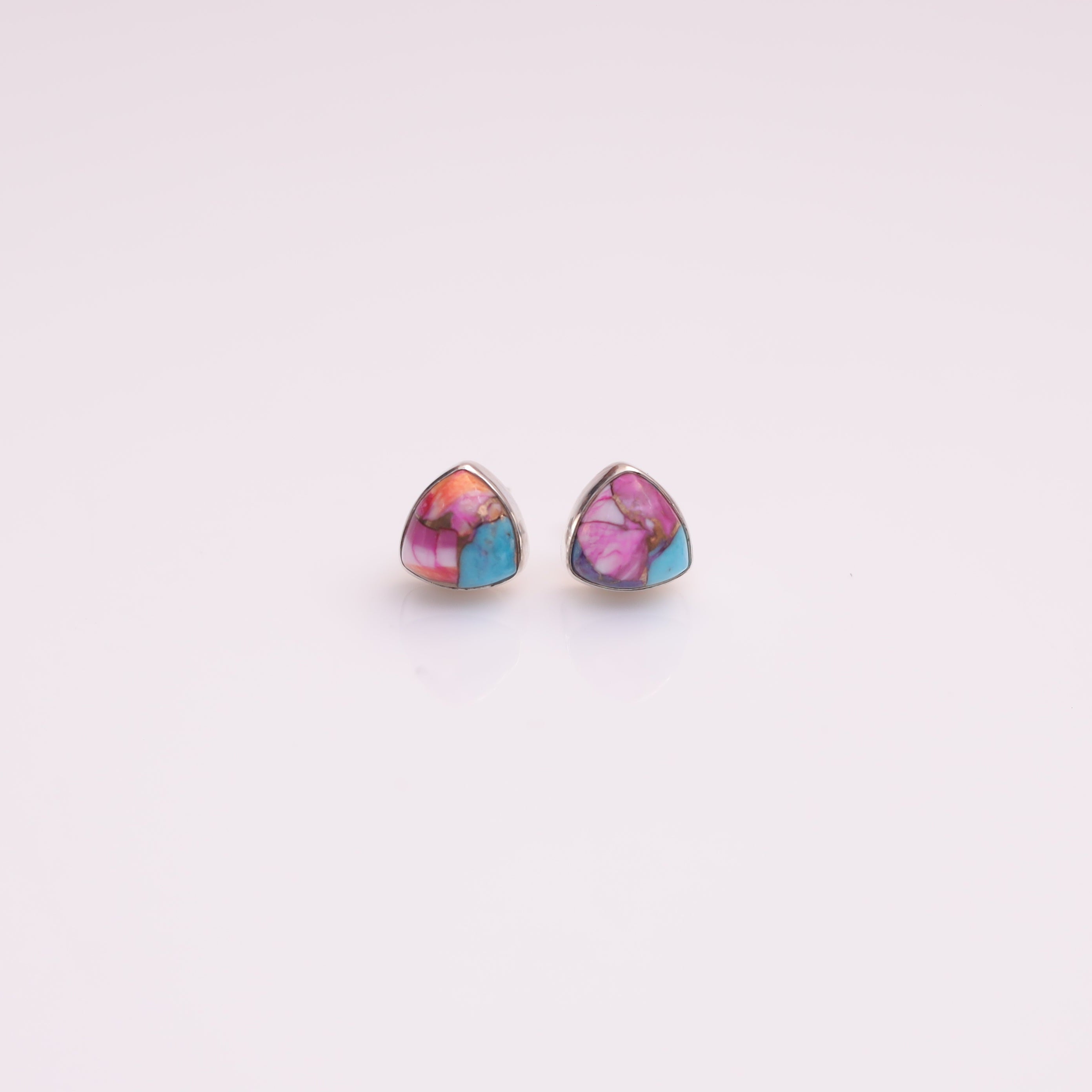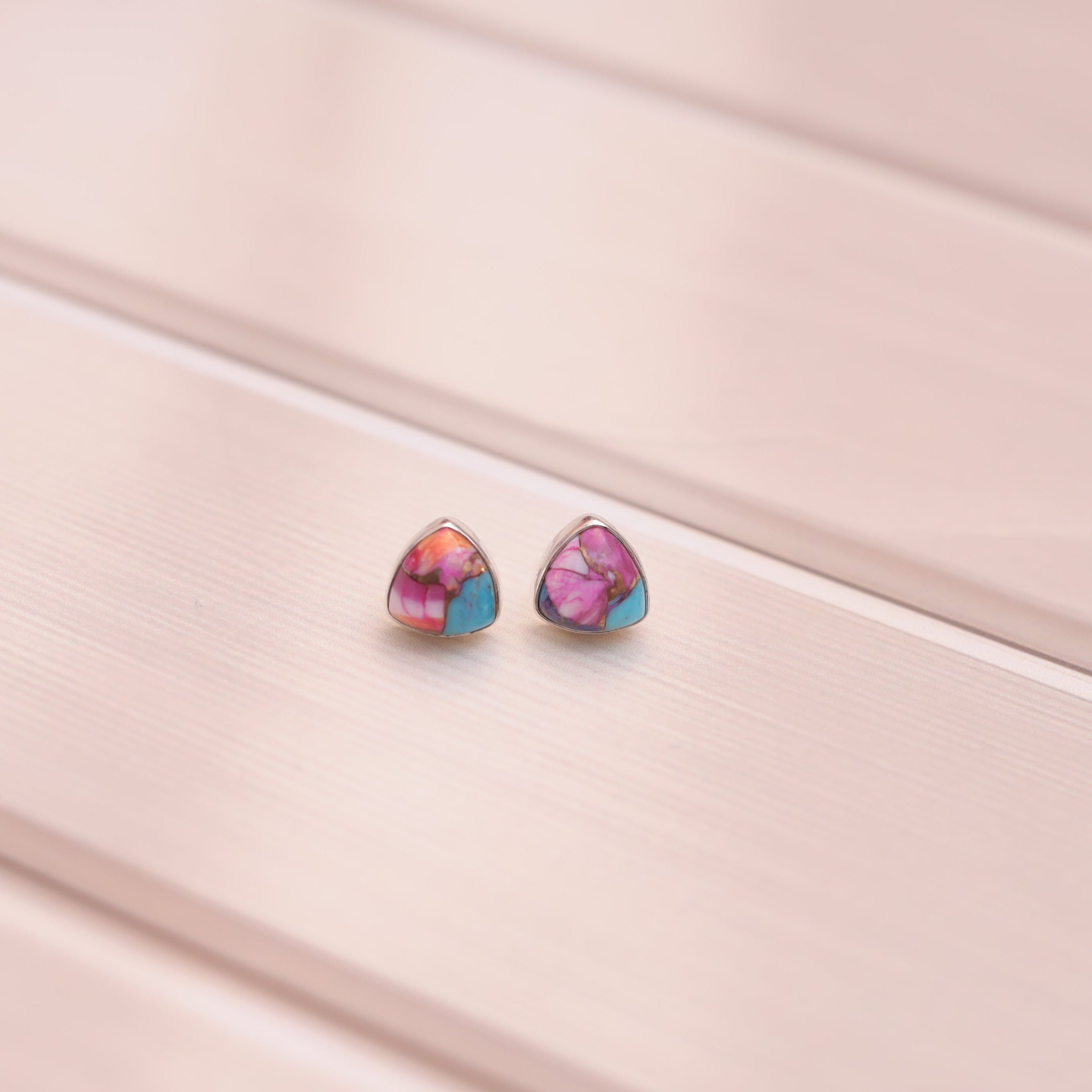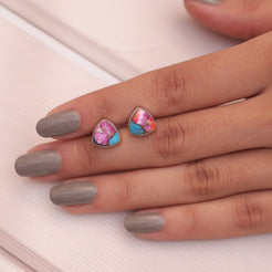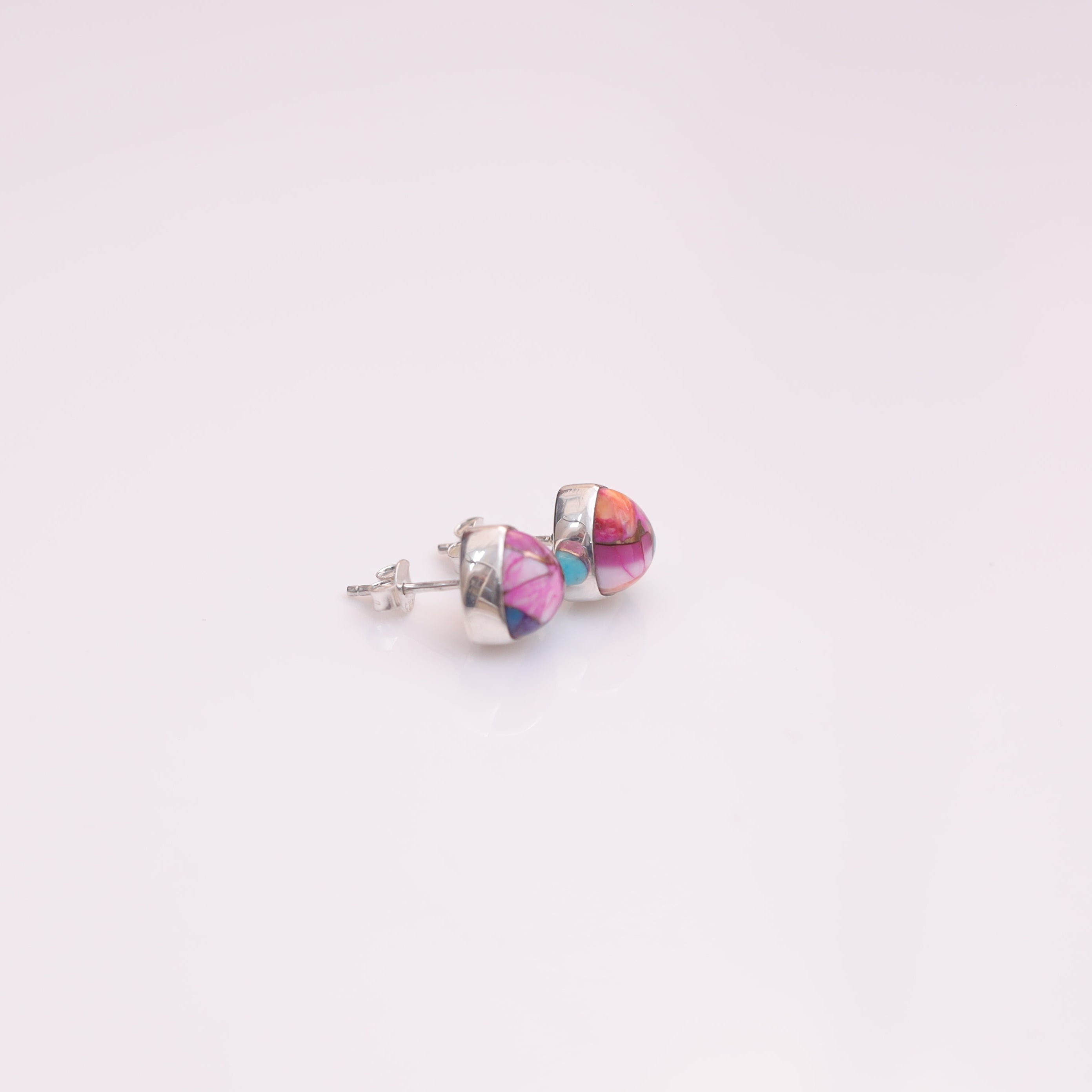 Pink Oyster Turquoise Sterling Silver Stud Earrings