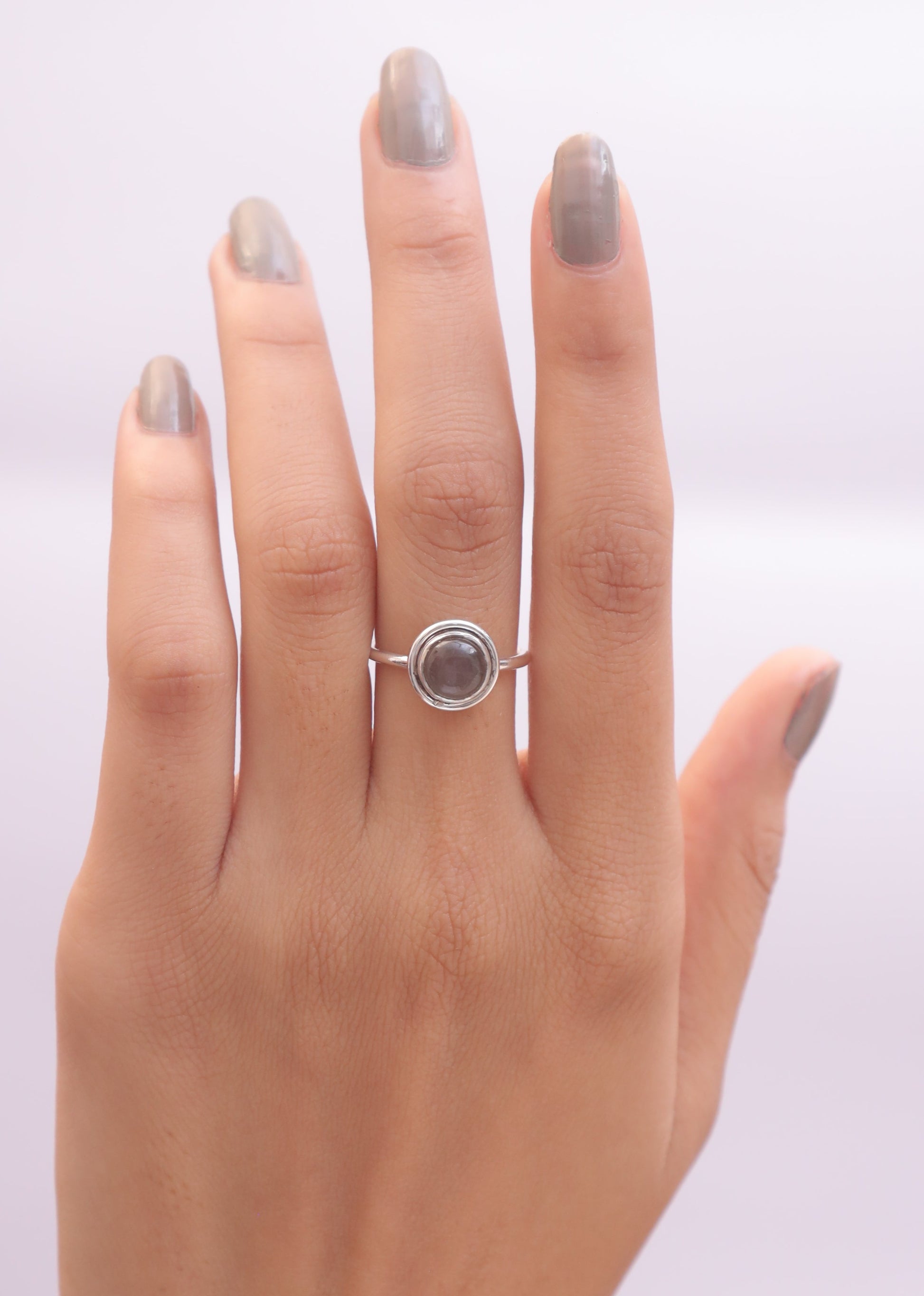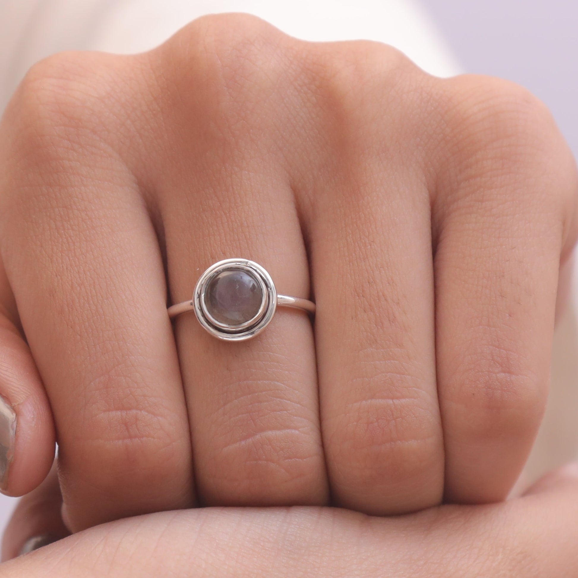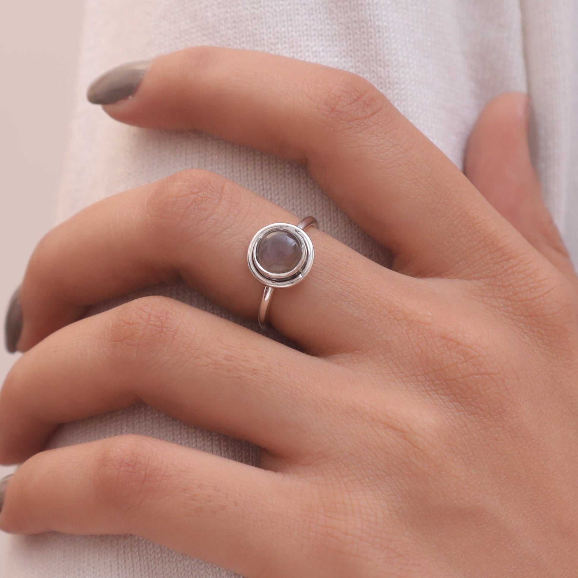 Elevate your style with the Purple Labradorite , a masterpiece that blends natural beauty with refined craftsmanship. The ring features a radiant Purple Labradorite centrepiece, carefully cut to enhance its inherent allure and brilliance. Set in a band crafted from 925 sterling silver, it offers durability and a lasting shine that complements the gemstone’s mesmerizing glow.