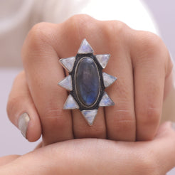 Rainbow Moonstone & Labradorite Solid Sterling Silver Ring