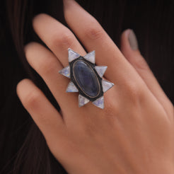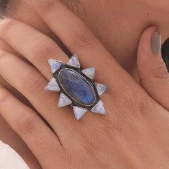 Elevate your style with the Rainbow Moonstone & Labradorite , a masterpiece that blends natural beauty with refined craftsmanship. The ring features a radiant Rainbow Moonstone & Labradorite centerpiece, carefully cut to enhance its inherent allure and brilliance. Set in a band crafted from 925 sterling silver, it offers durability and a lasting shine that complements the gemstone’s mesmerizing glow.