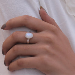 Elevate your style with the Rainbow Moonstone a masterpiece that blends natural beauty with refined craftsmanship. The ring features a radiant Rainbow Moonstone centrepiece, carefully cut to enhance its inherent allure and brilliance. Set in a band crafted from 925 sterling silver, it offers durability and a lasting shine that complements the gemstone’s mesmerizing glow.