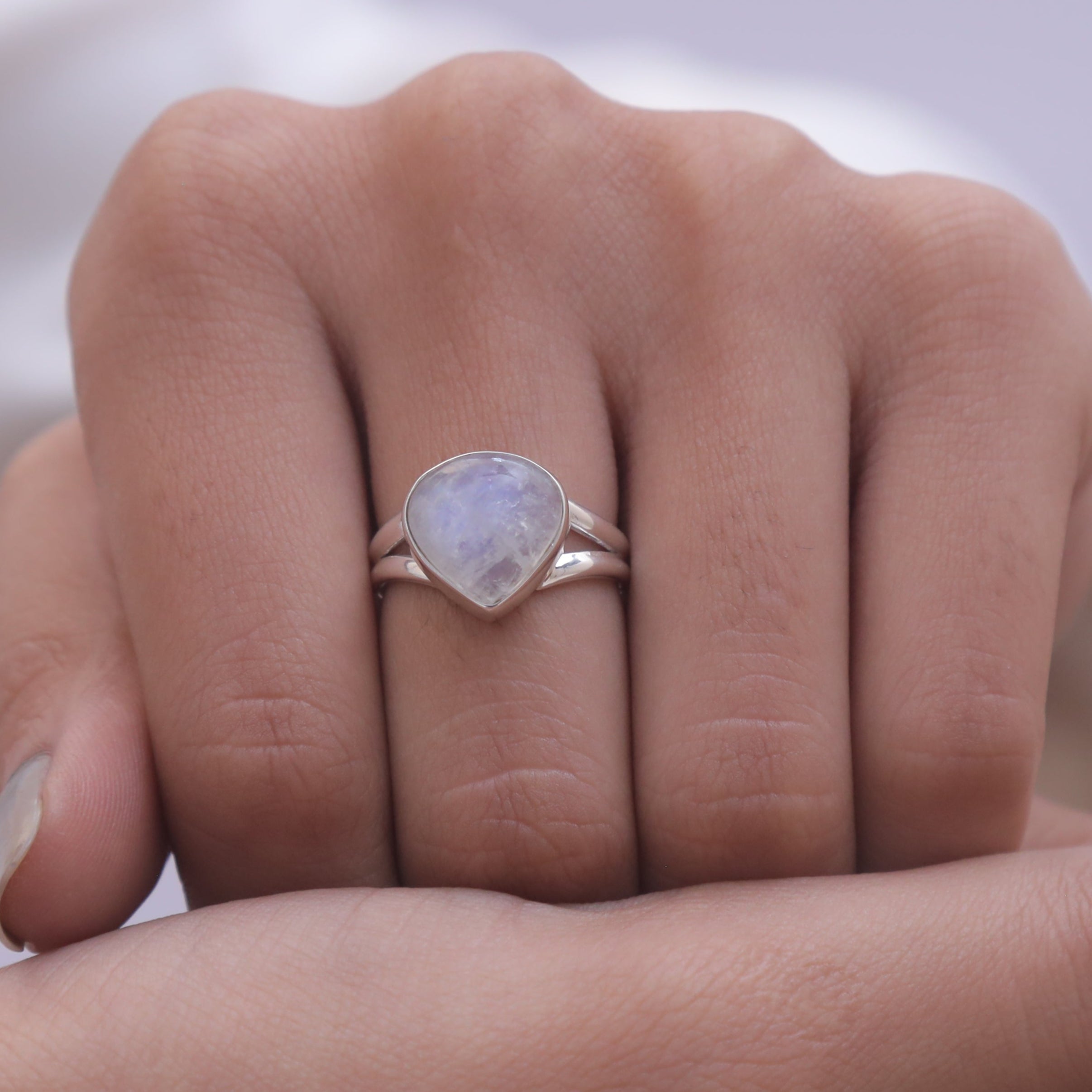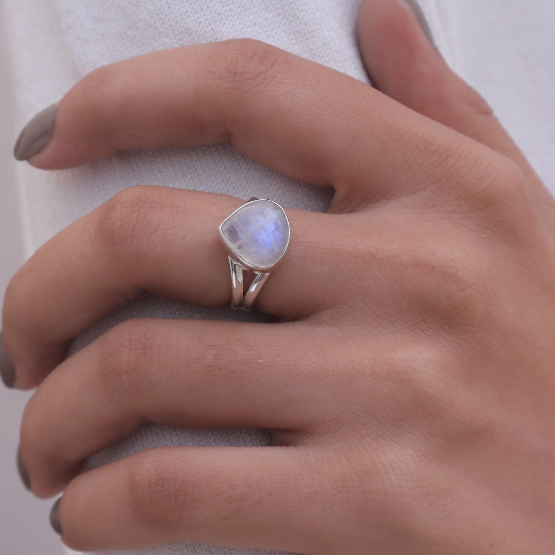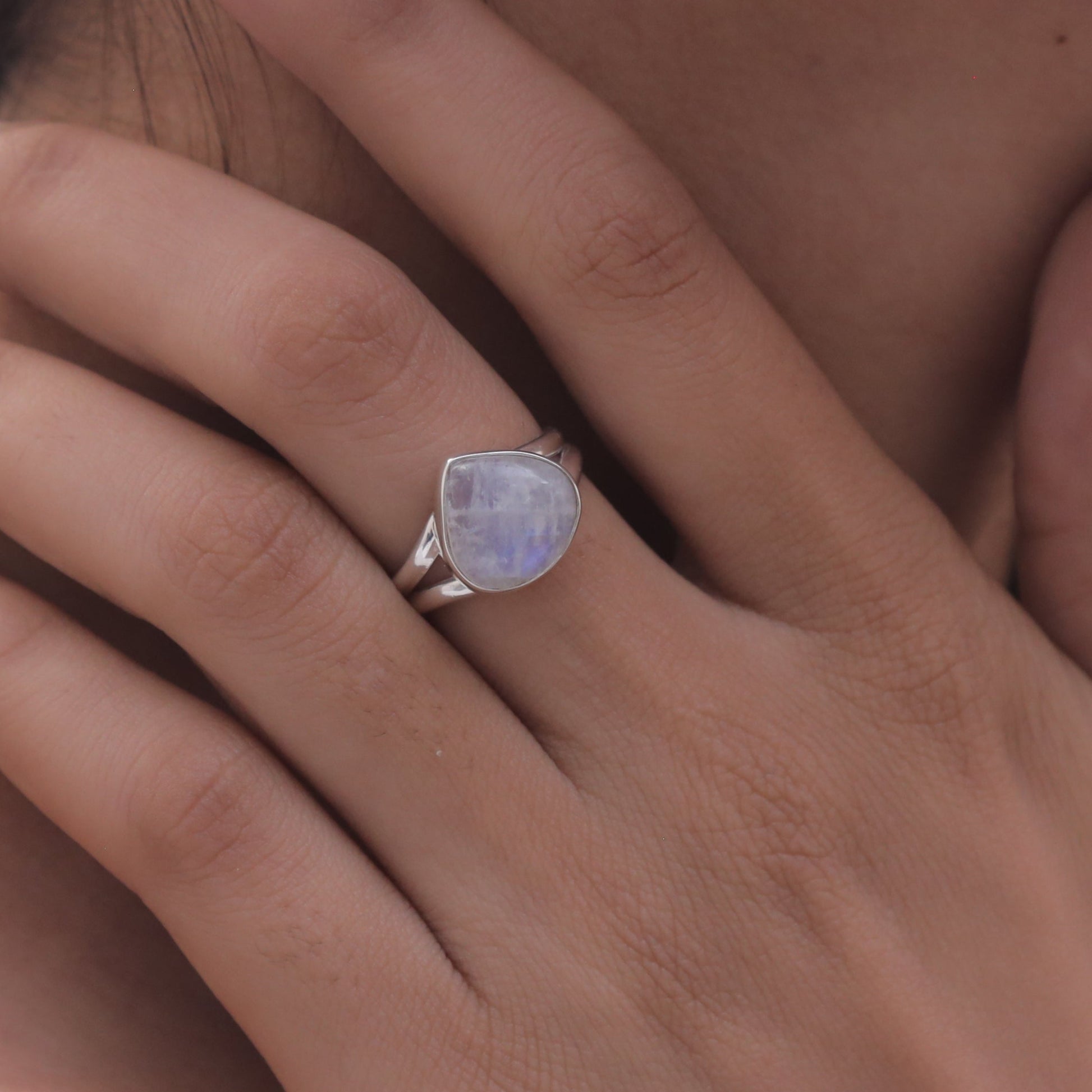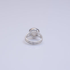 Each detail of the ring showcases expert craftsmanship, from the precisely set prongs securing the Rainbow Moonstone to the polished silver band ensuring a comfortable fit. The design allows the Rainbow Moonstone to shine as the focal point, making it a versatile accessory suitable for everyday wear or special occasions.