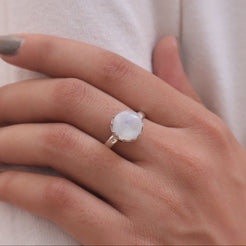 Rainbow Moonstone Sterling Silver Ring