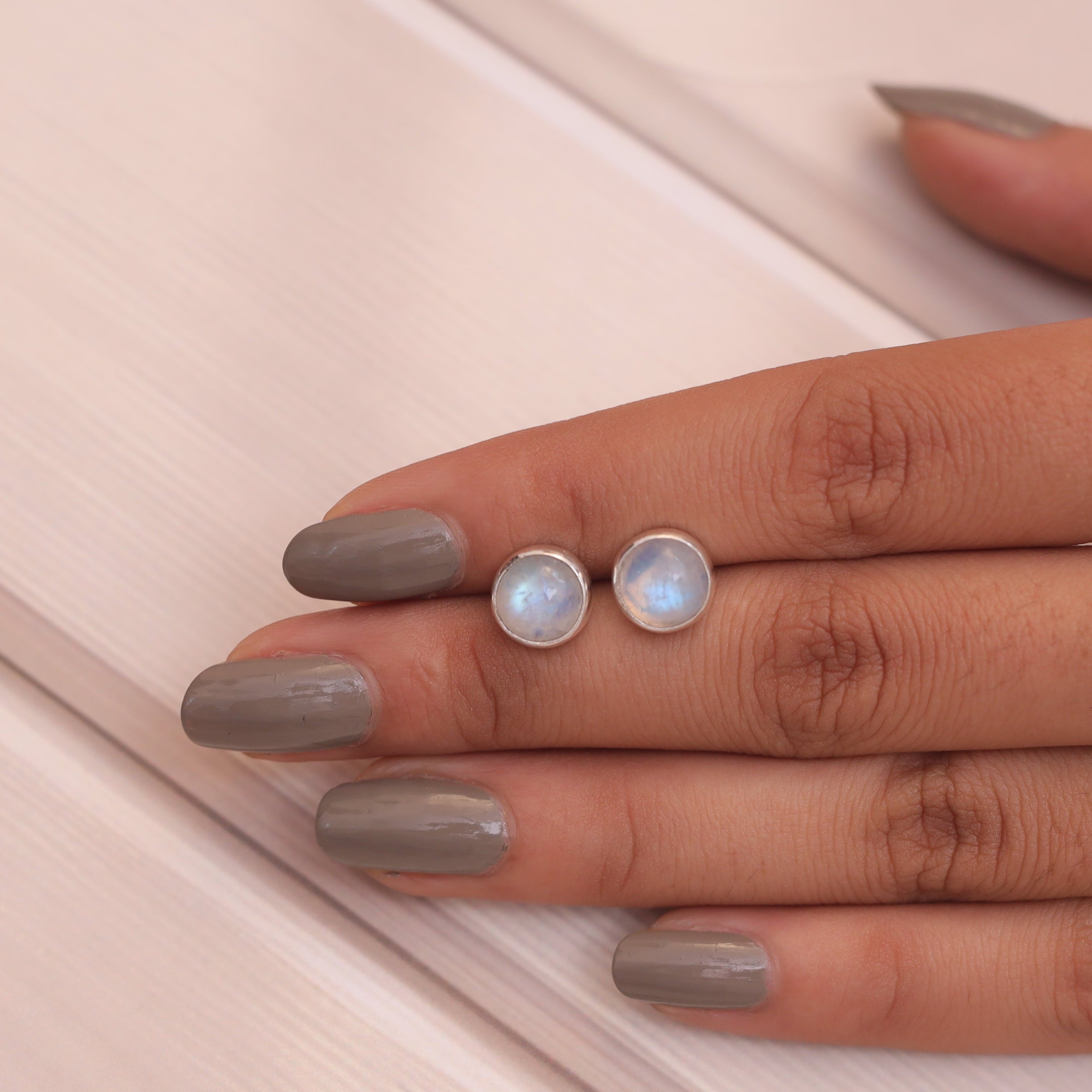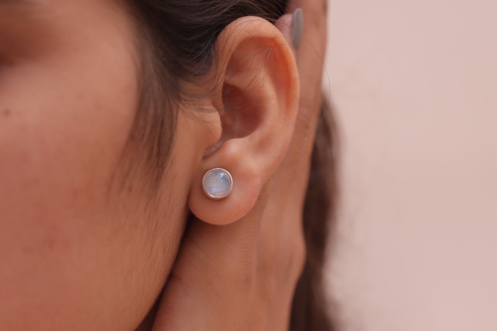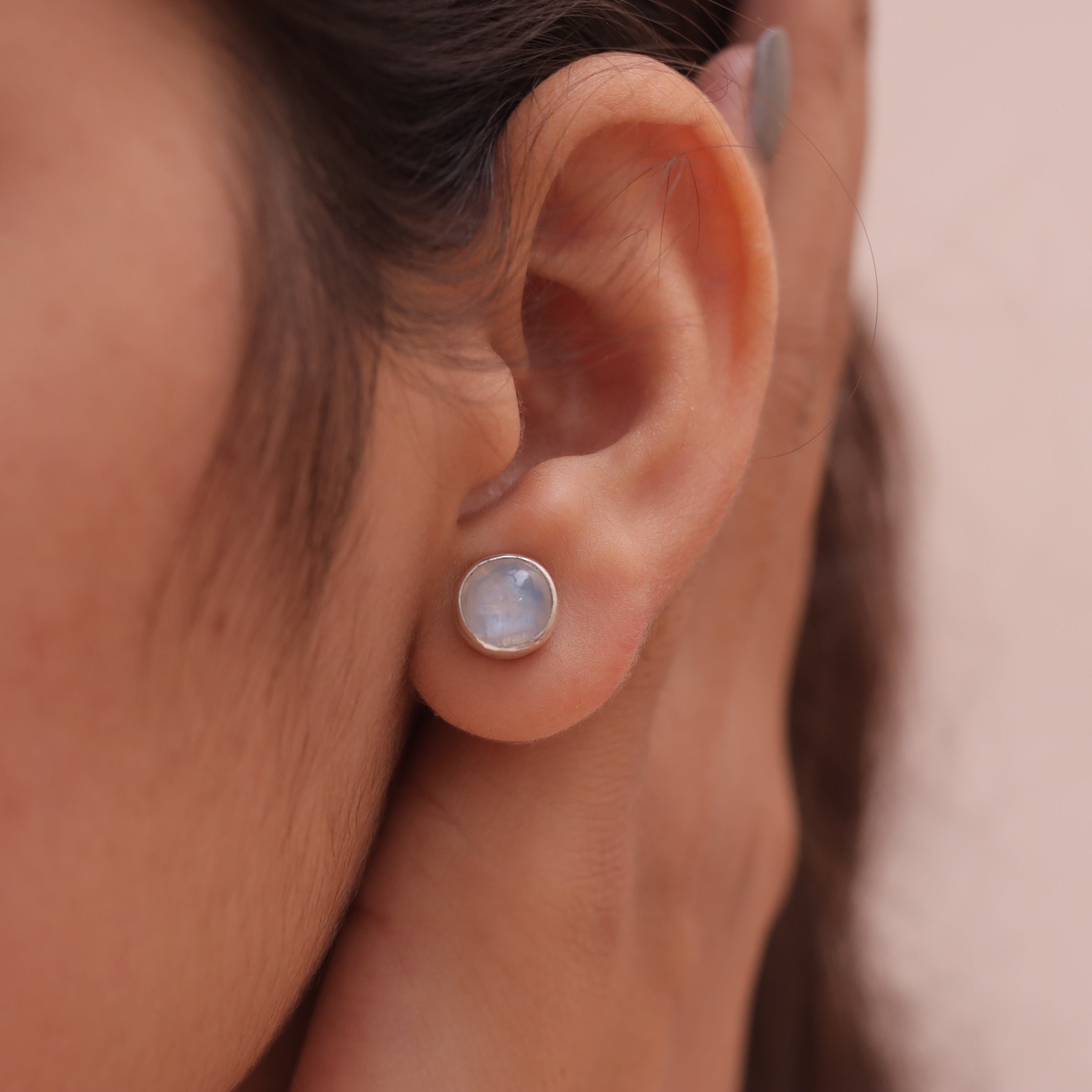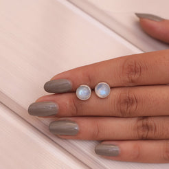 Crafted with precision, the rainbow moonstone is securely held by polished prongs, allowing it to shine as the focal point of each Studs. The design ensures comfort and a perfect fit, making these studs versatile for everyday wear or special occasions.