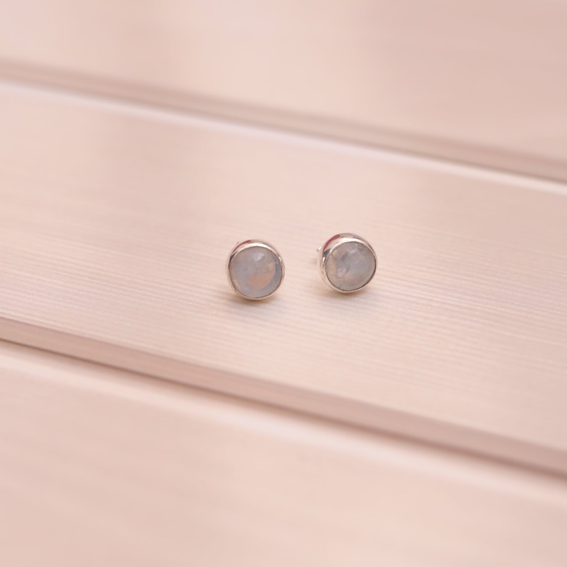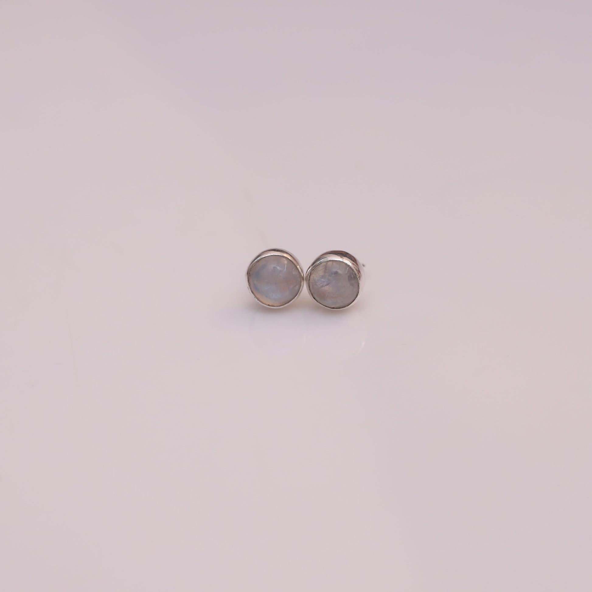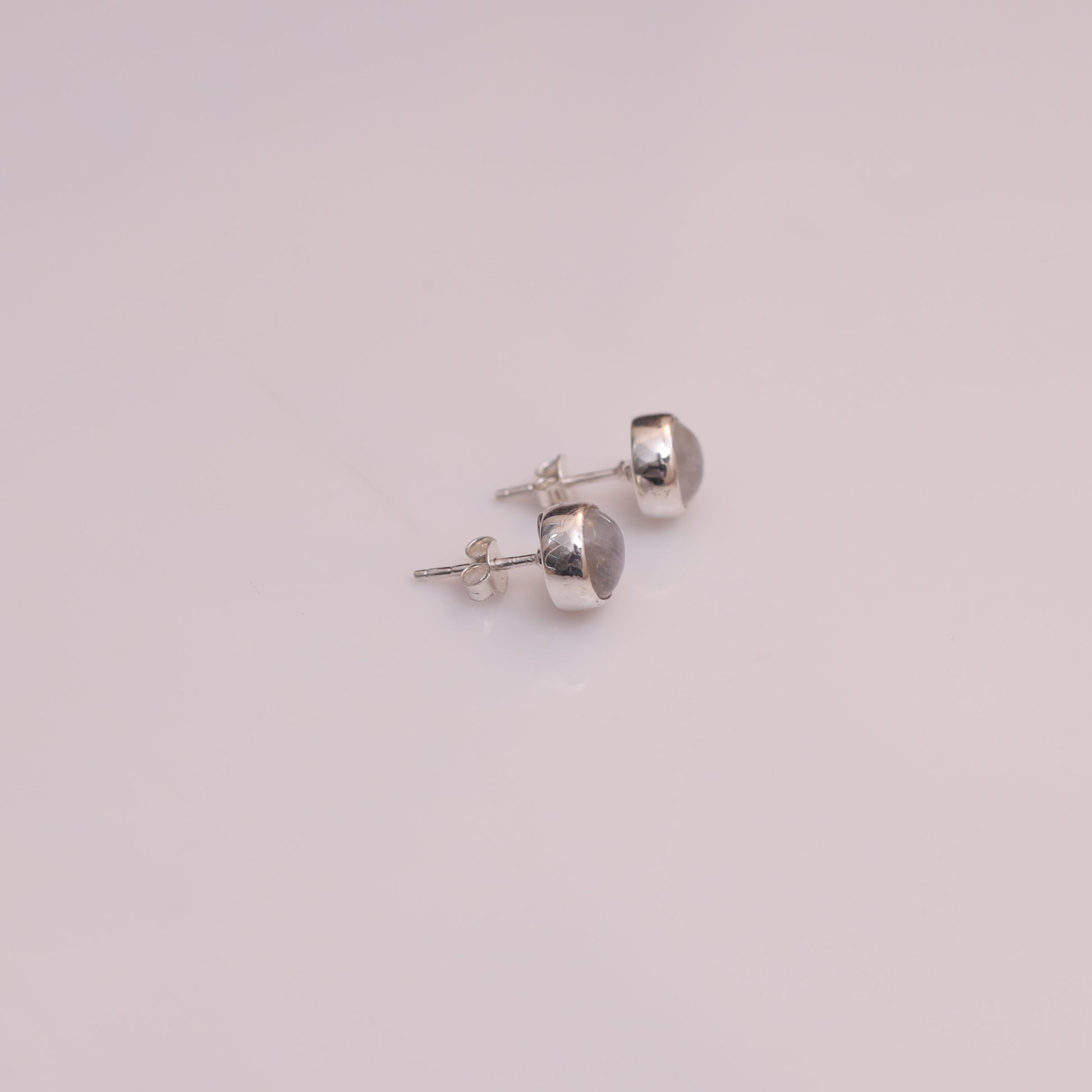 Rainbow Moonstone Sterling Silver Stud Earrings