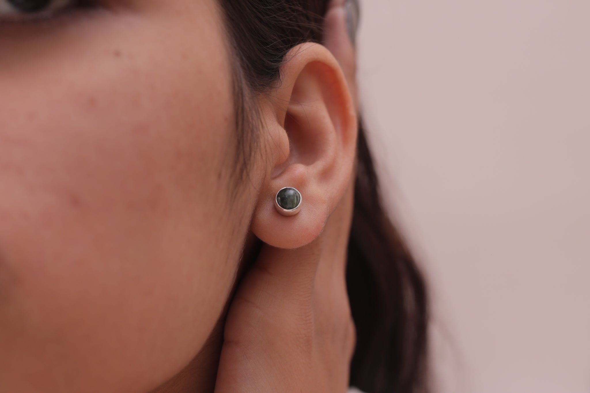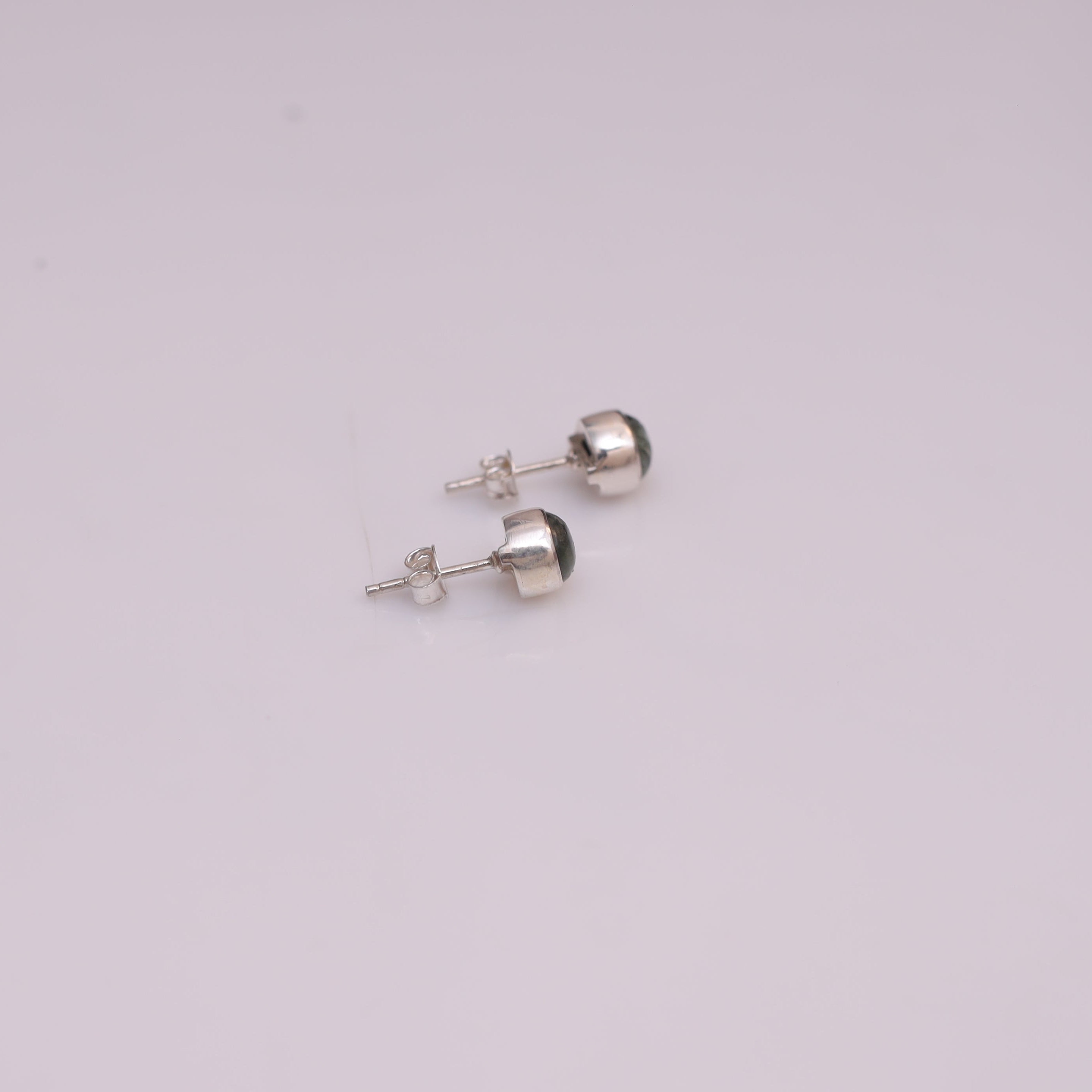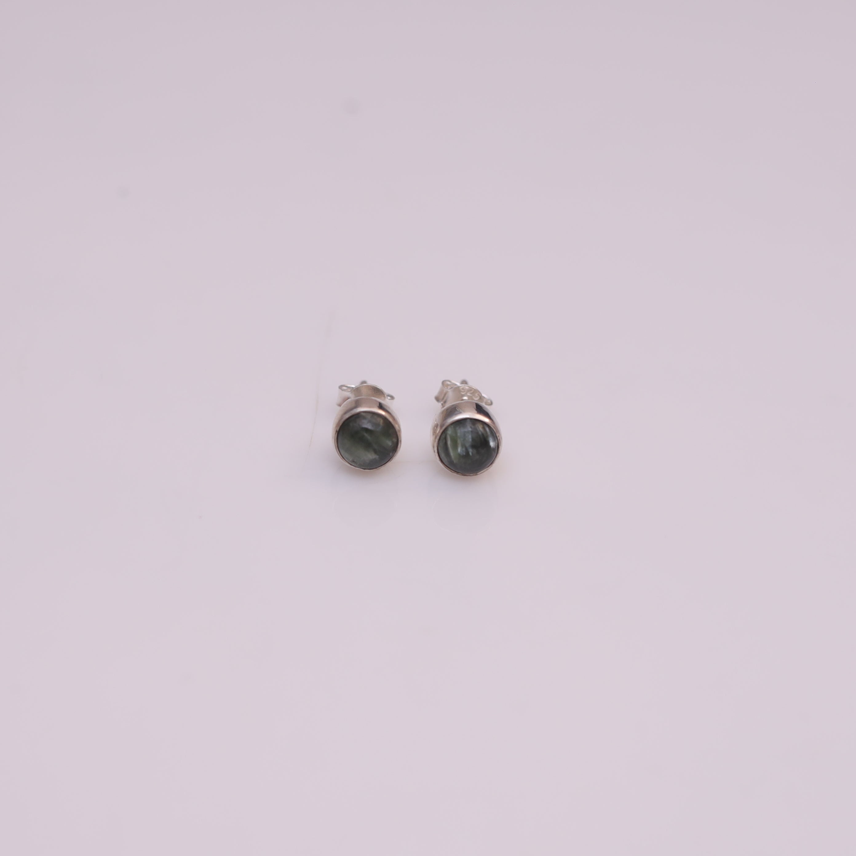 Elevate your style with the Seraphinite Studs, a masterpiece that blends natural beauty with refined craftsmanship. The Studs features a radiant Seraphinite centerpiece, carefully cut to enhance its inherent allure and brilliance. Set in a band crafted from 925 sterling silver, it offers durability and a lasting shine that complements the gemstone's vibrant hue.