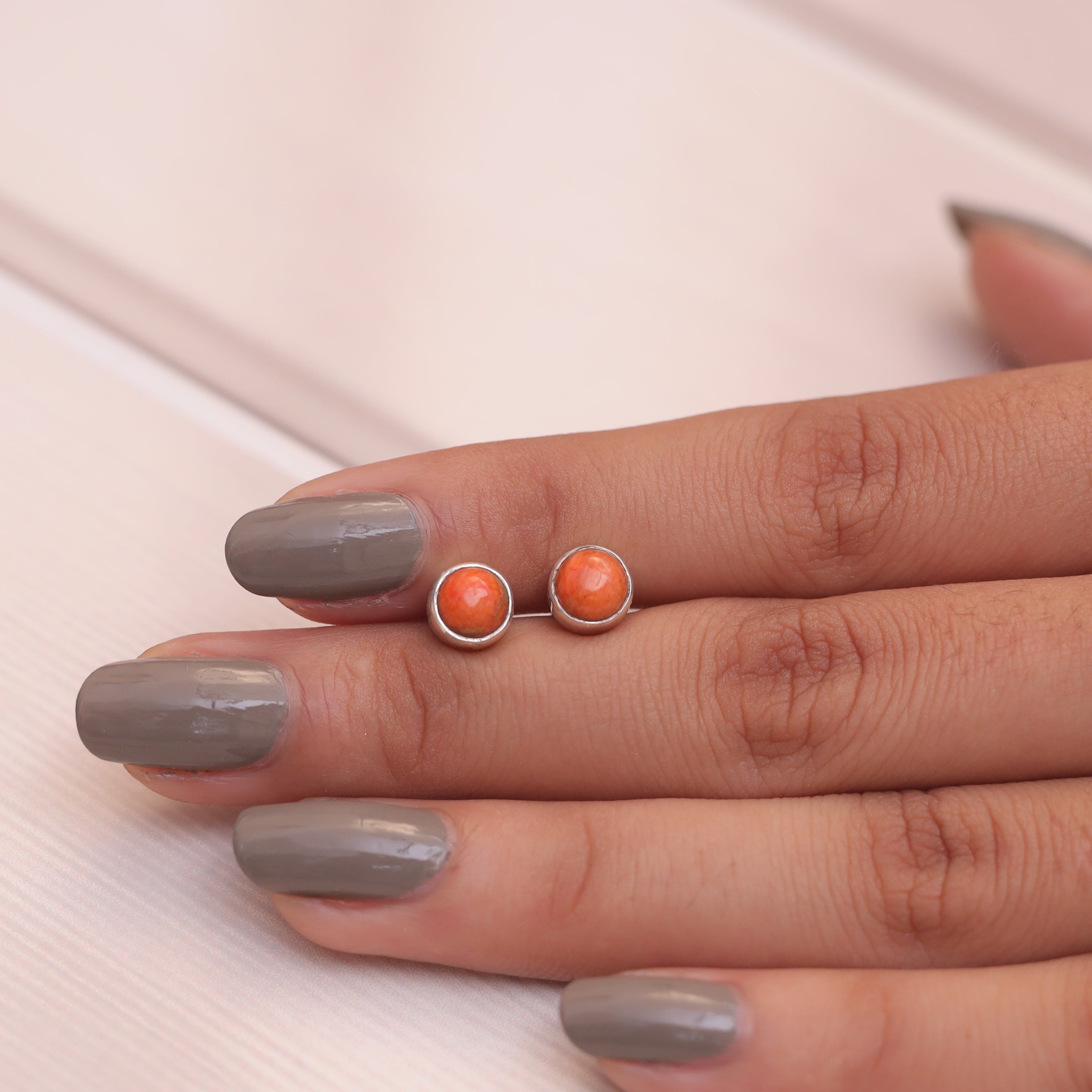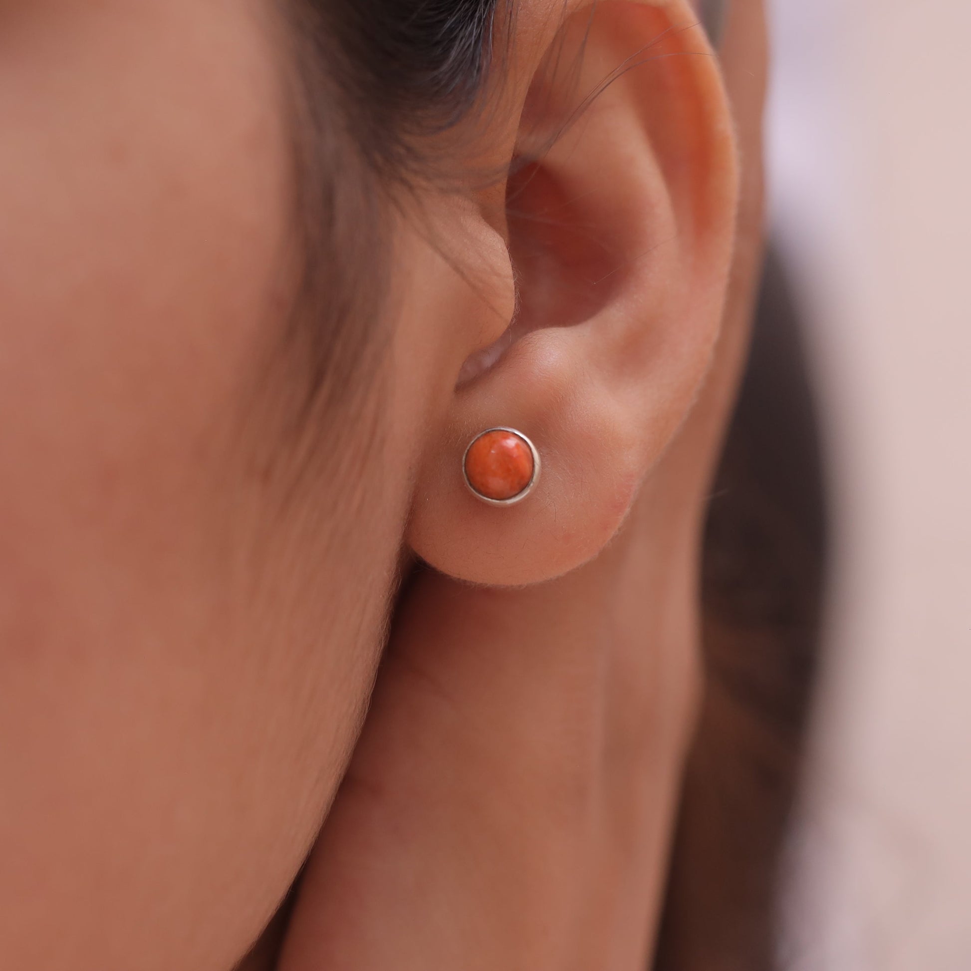 Elevate your style with the Sponge Coral Studs, a masterpiece that blends natural beauty with refined craftsmanship. The Studs features a radiant Sponge Coral centerpiece, carefully cut to enhance its inherent allure and brilliance. Set in a band crafted from 925 sterling silver, it offers durability and a lasting shine that complements the gemstone's vibrant hue.
