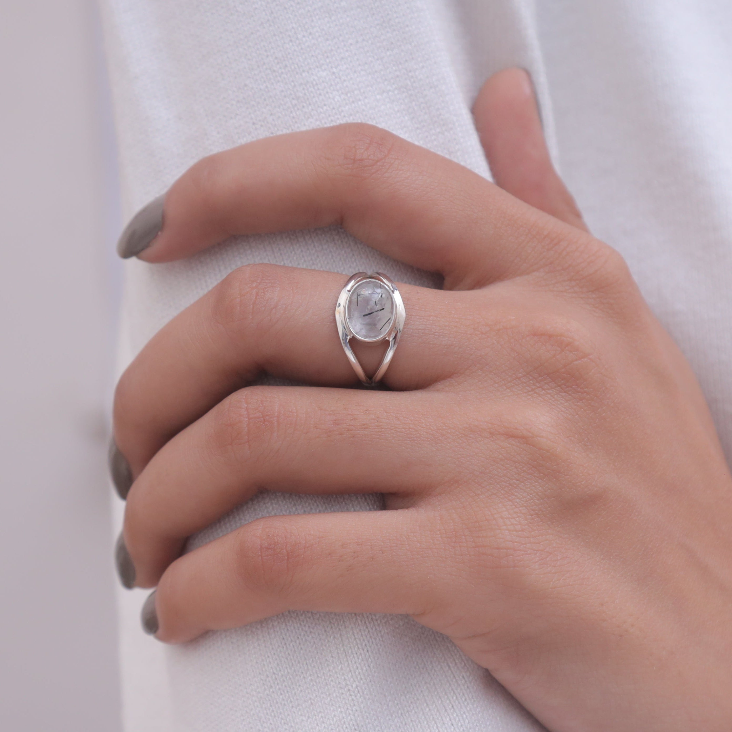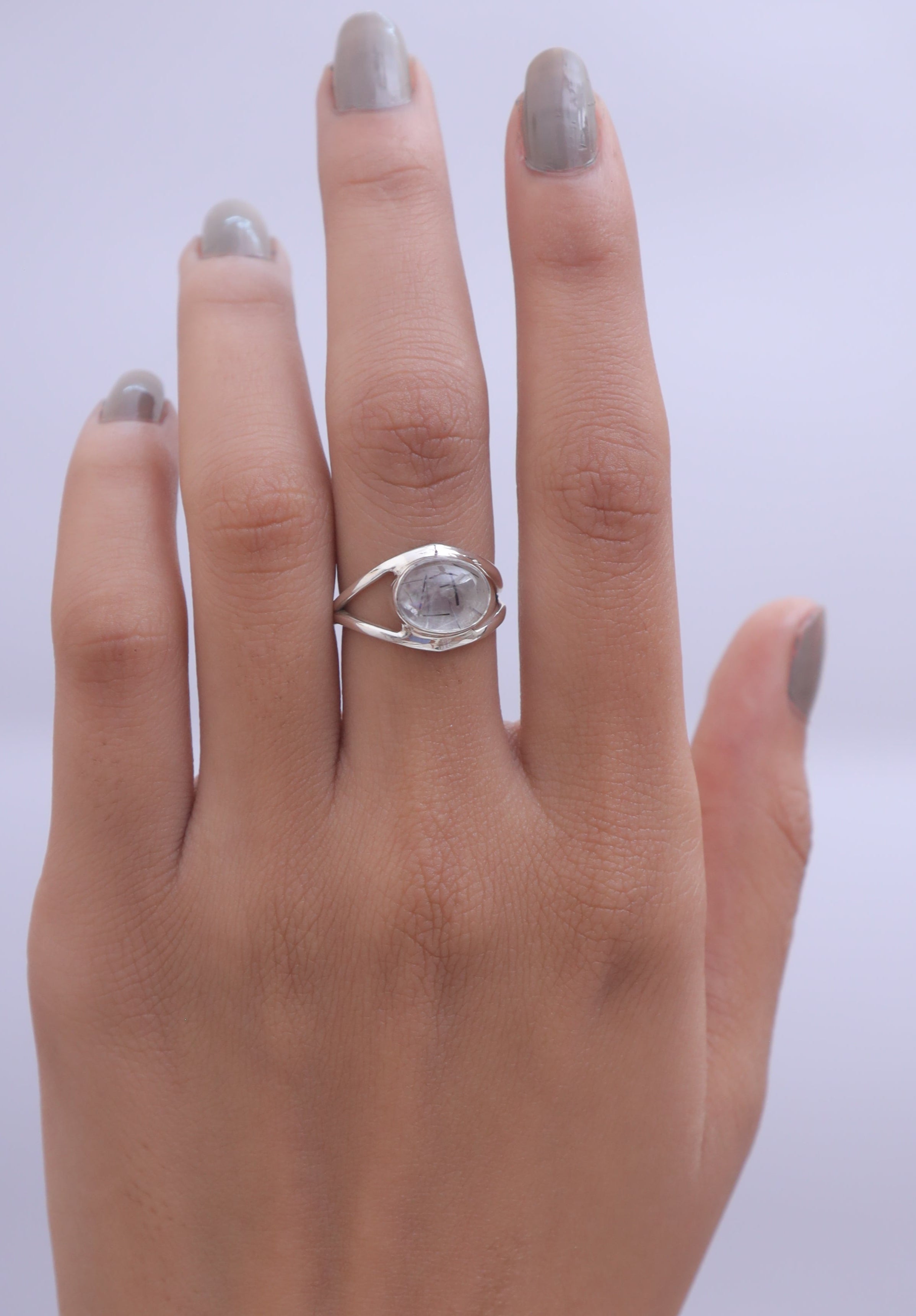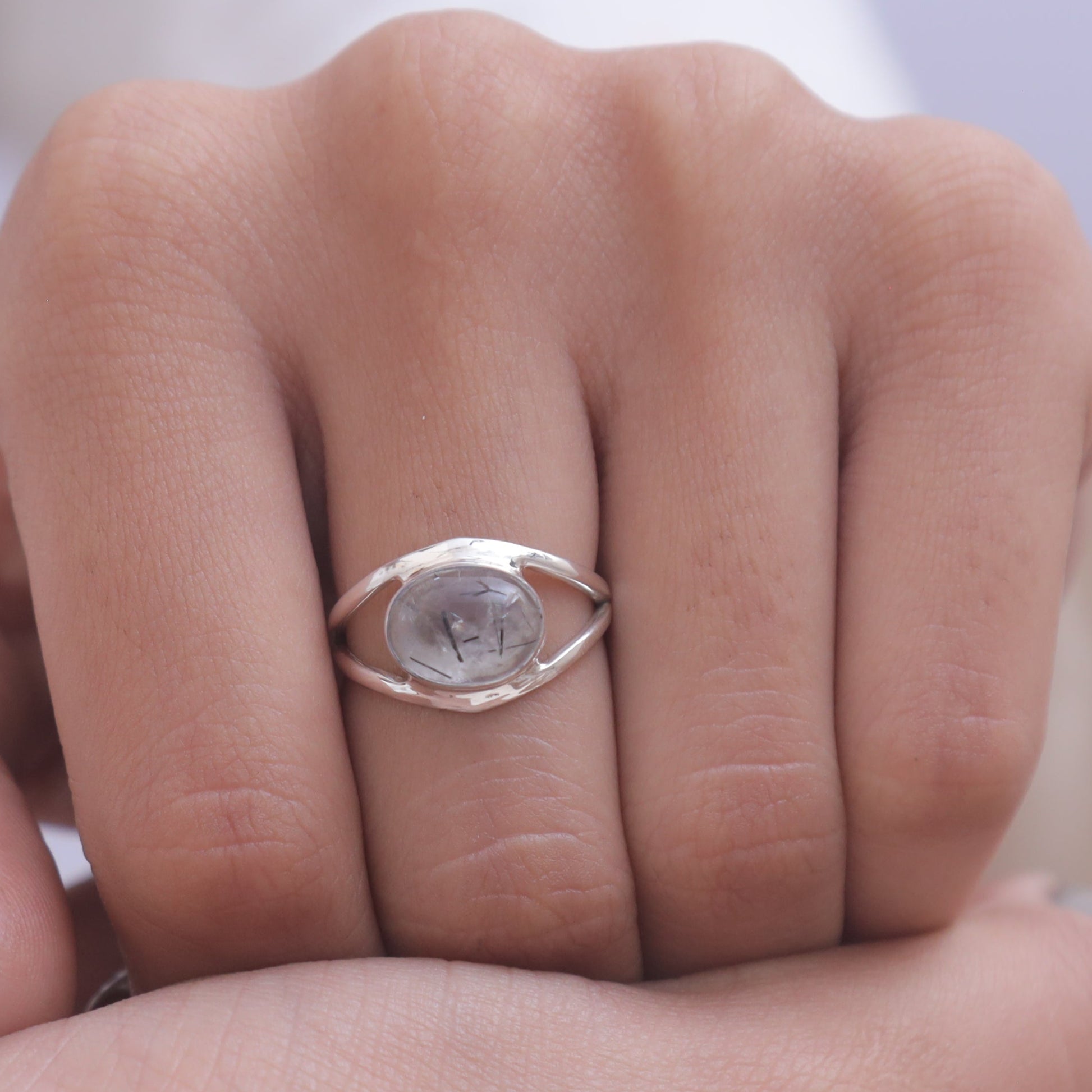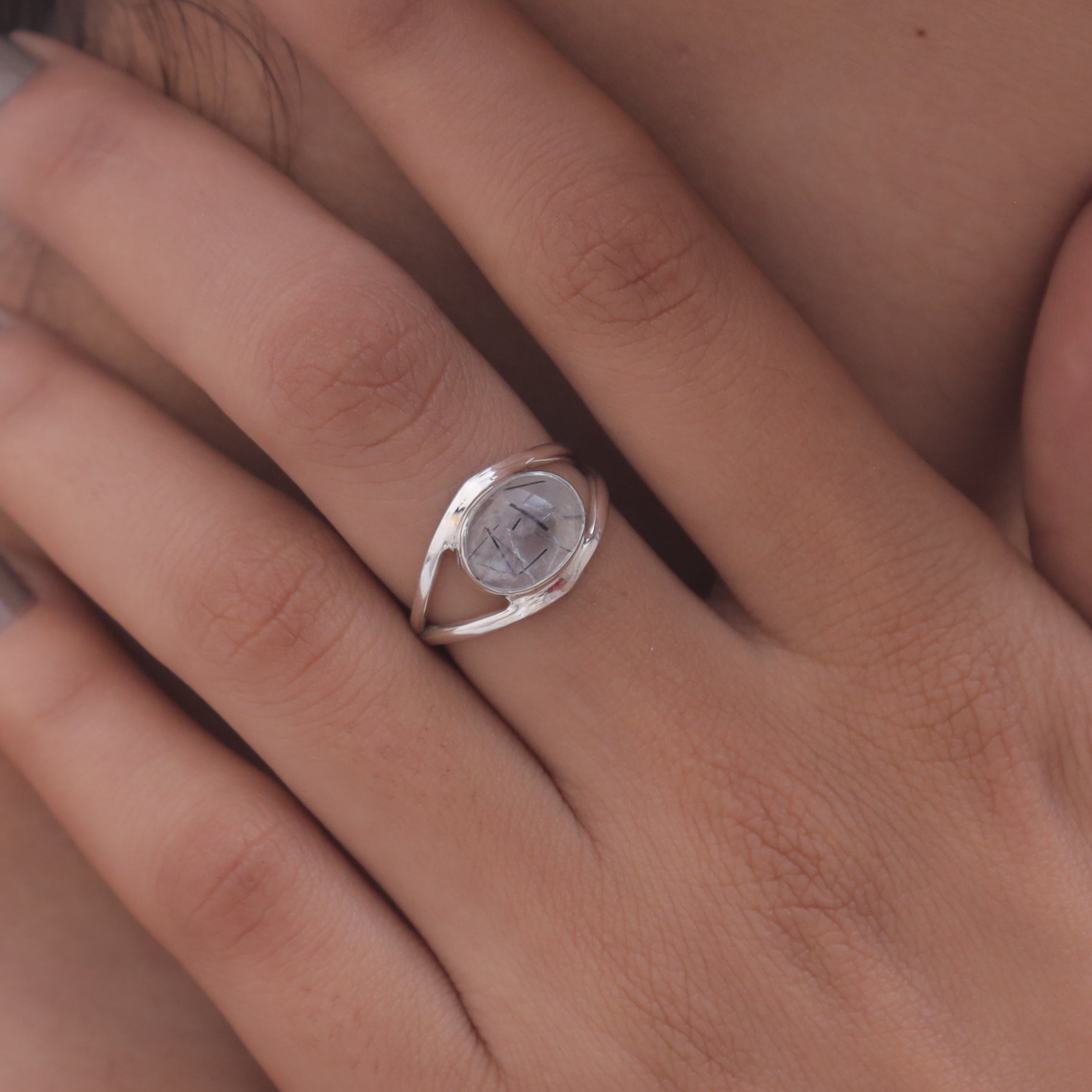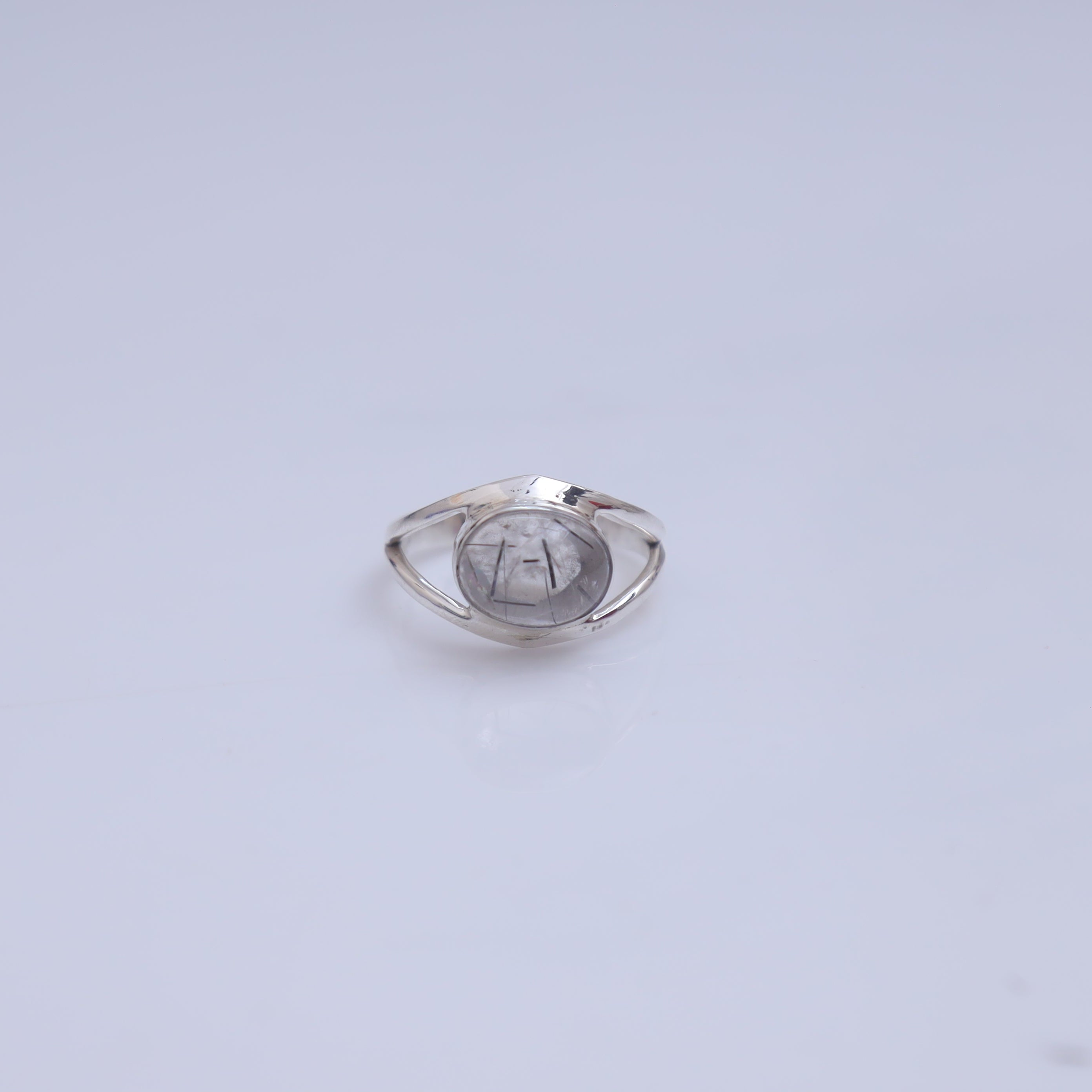 Each detail of the ring showcases expert craftsmanship, from the precisely set prongs securing the Black Rutile to the polished silver band ensuring a comfortable fit. The design allows the Black Rutile to shine as the focal point, making it a versatile accessory suitable for everyday wear or special occasions.
