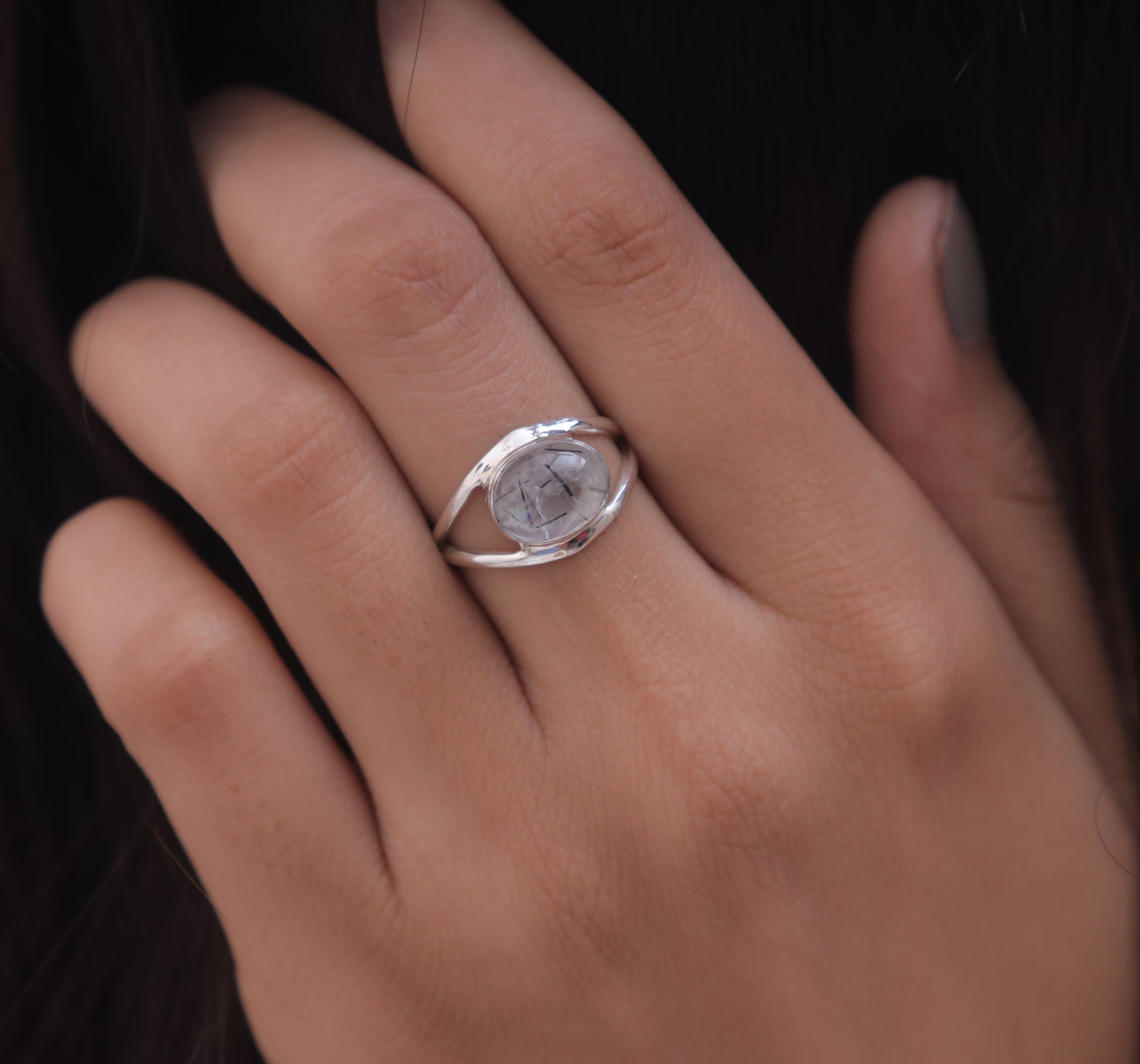 Black Rutile Sterling Silver Ring