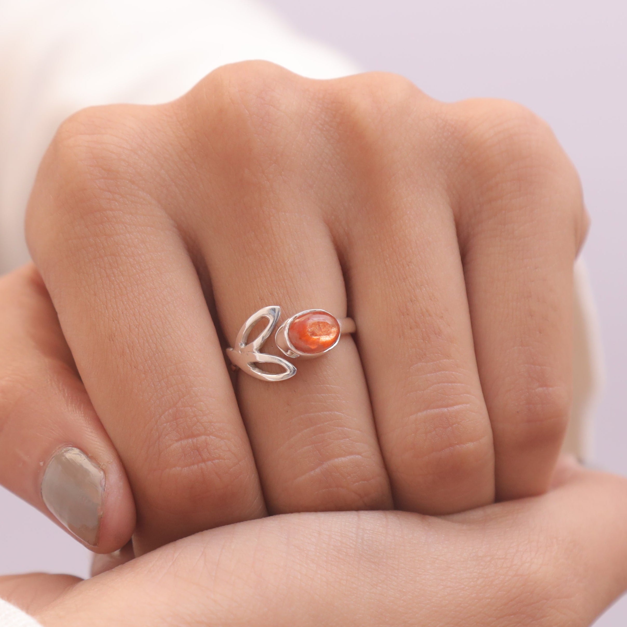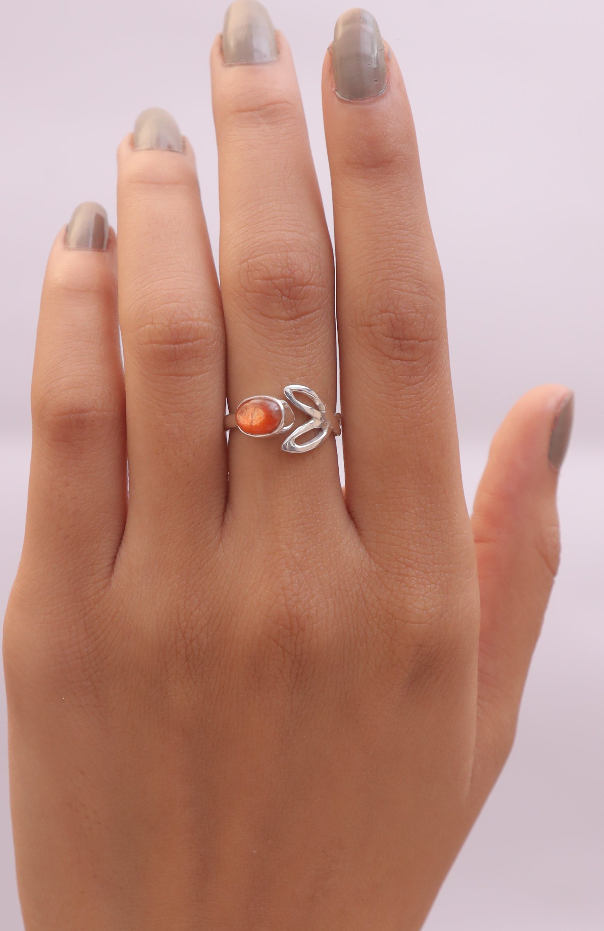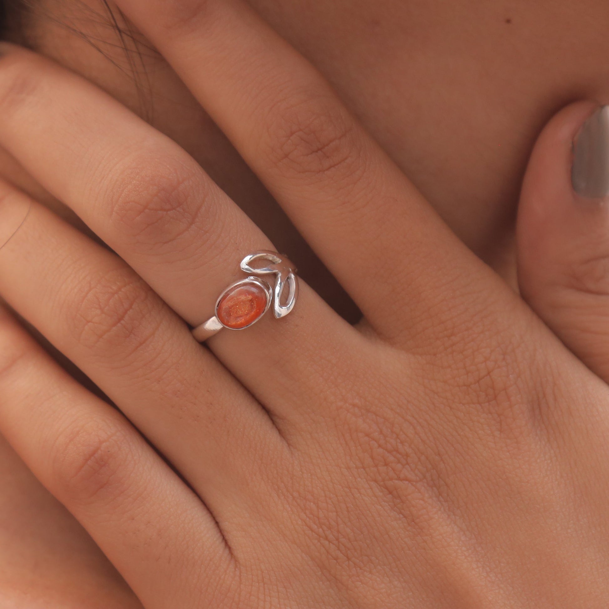 Elevate your style with the Sunstone Ring, a masterpiece that blends natural beauty with refined craftsmanship. The ring features a radiant Sunstone centerpiece, carefully cut to enhance its inherent allure and brilliance. Set in a band crafted from 925 sterling silver, it offers durability and a lasting shine that complements the gemstone's vibrant hue.