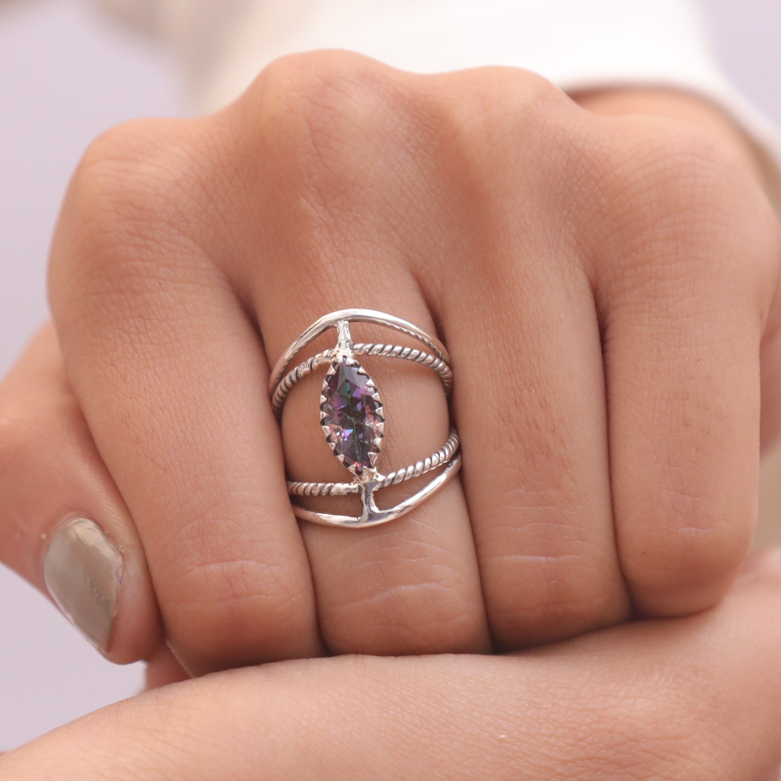 Elevate your style with the Mystic Topaz Ring, a masterpiece that blends natural beauty with refined craftsmanship. The ring features a radiant Mystic Topaz centerpiece, carefully cut to enhance its inherent allure and brilliance. Set in a band crafted from 925 sterling silver, it offers durability and a lasting shine that complements the gemstone's vibrant hue.