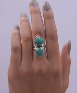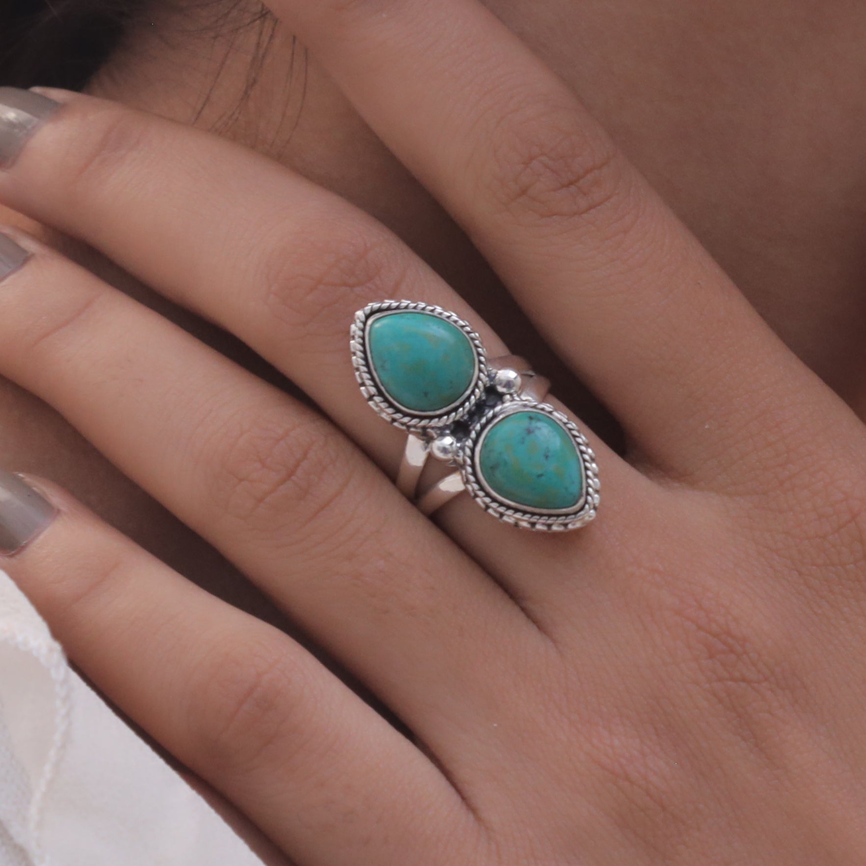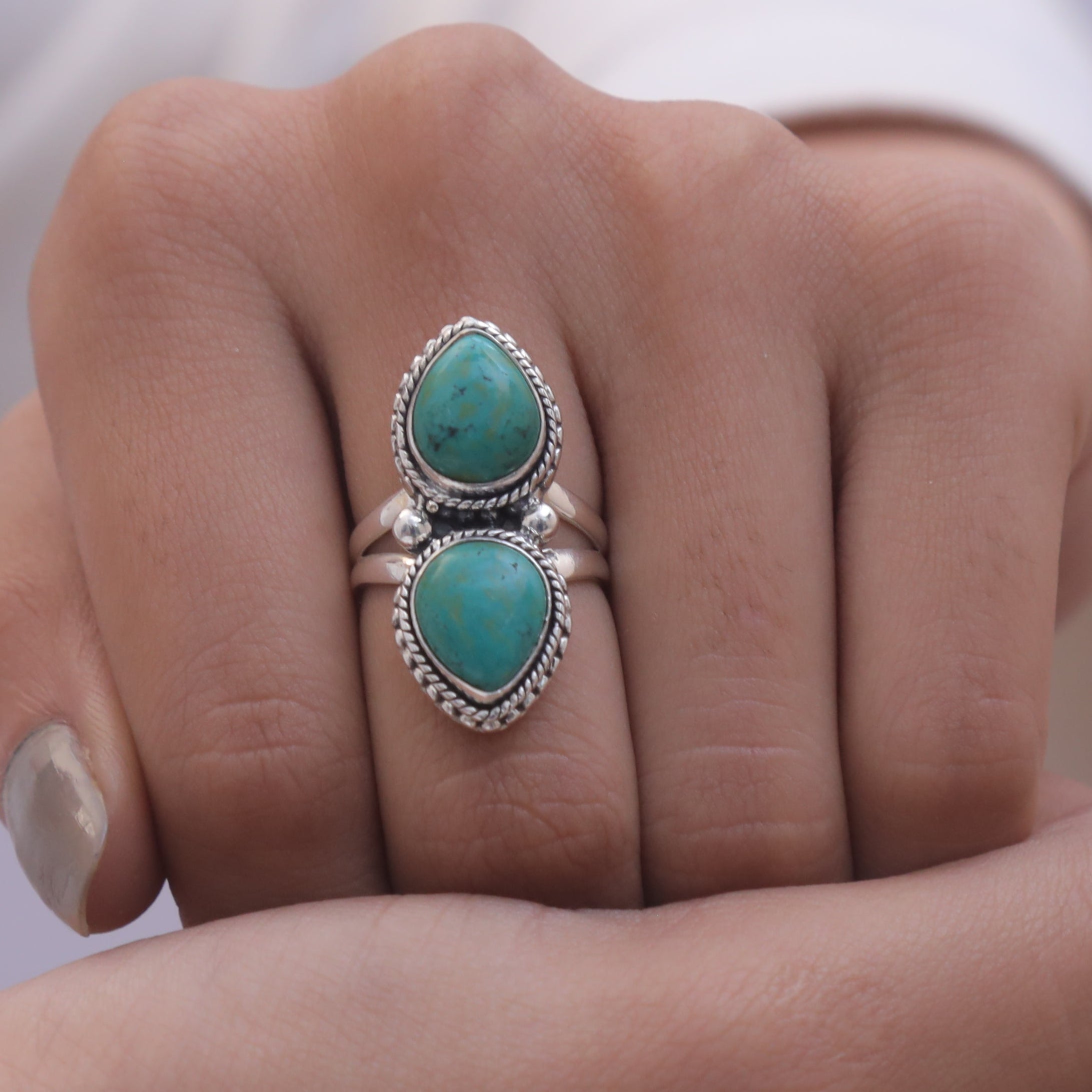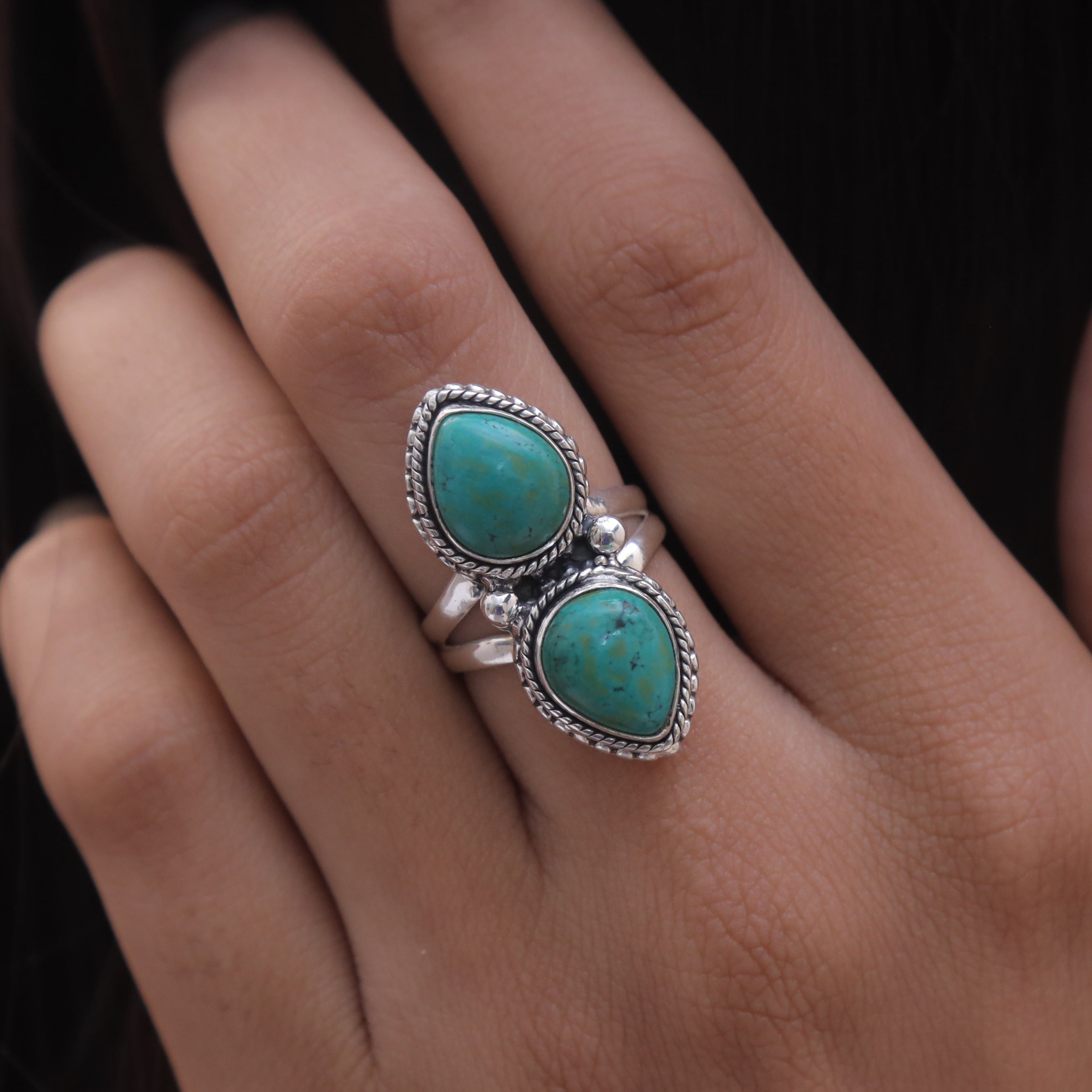 Elevate your style with the Tibetan Turquoise Ring, a masterpiece that blends natural beauty with refined craftsmanship. The ring features a radiant Tibetan Turquoise centrepiece, carefully cut to enhance its inherent allure and brilliance. Set in a band crafted from 925 sterling silver, it offers durability and a lasting shine that complements the gemstone's vibrant hue.