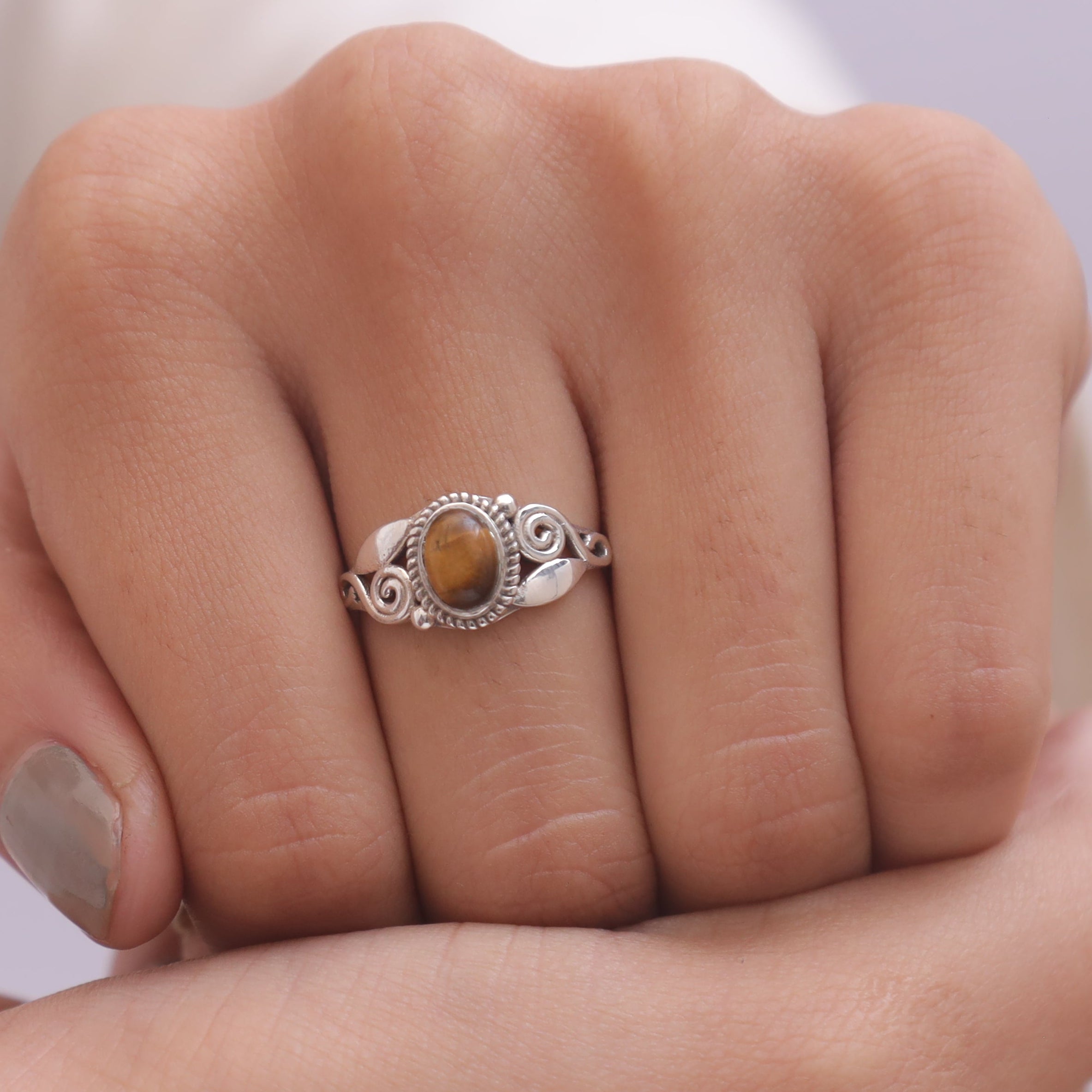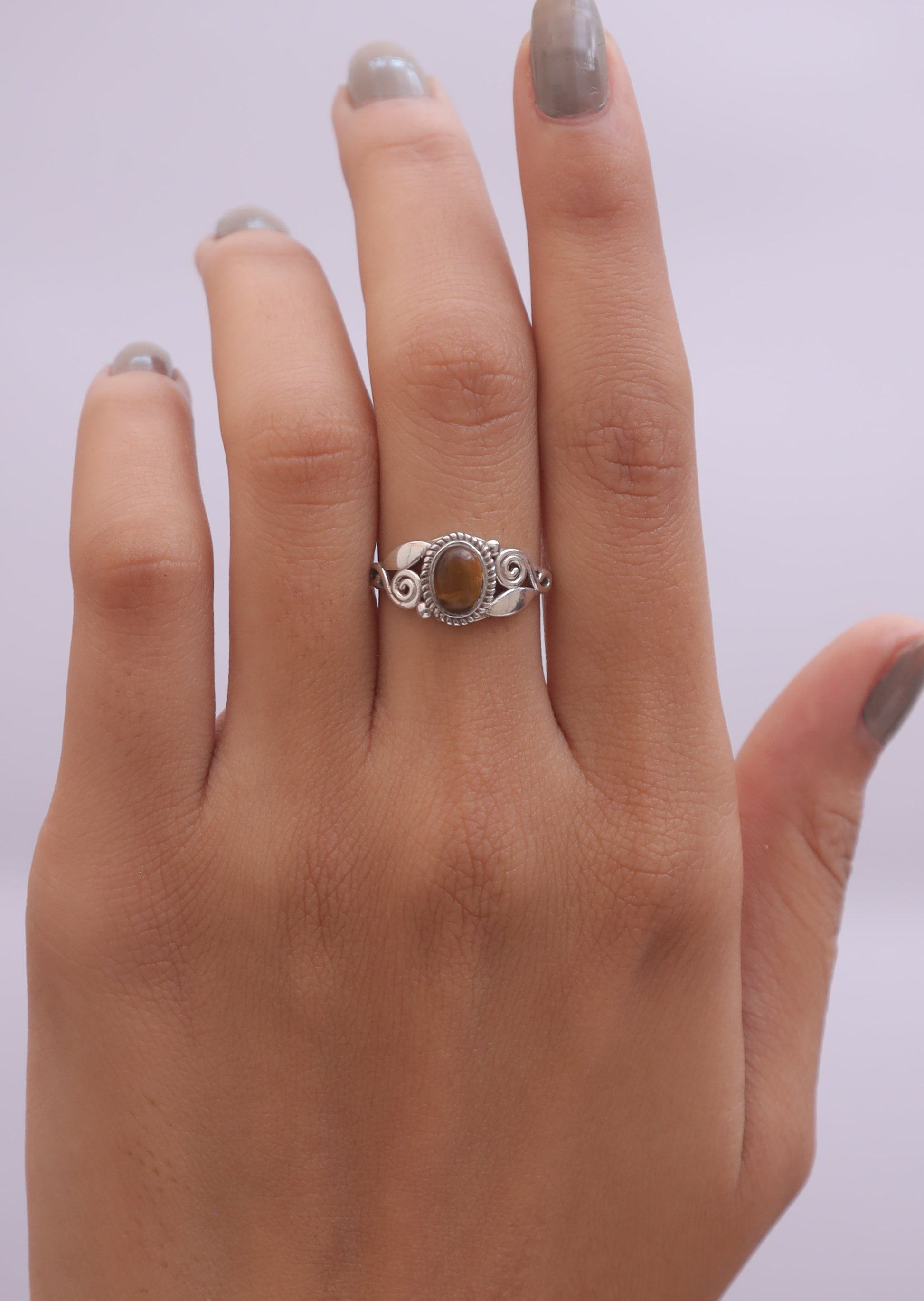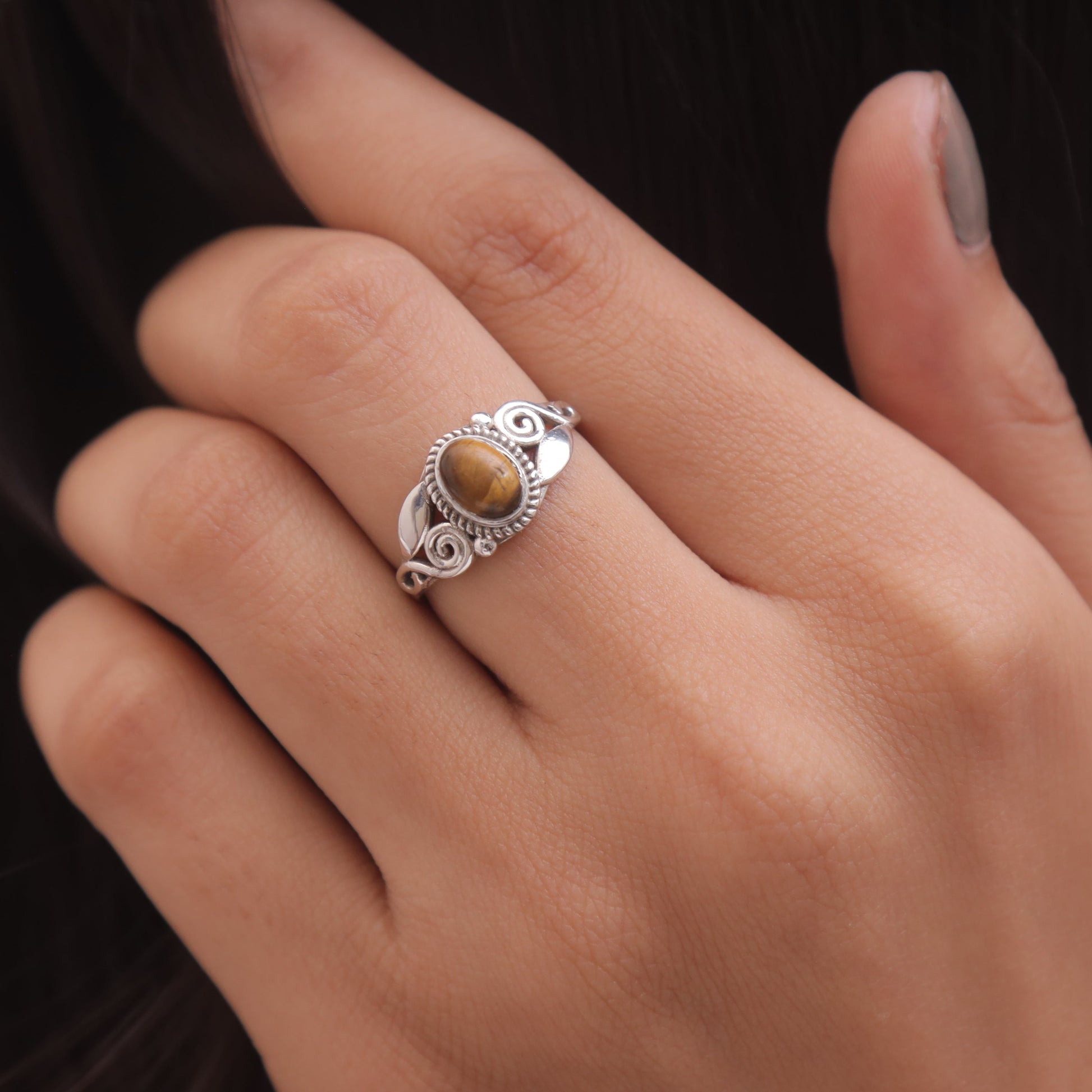 Crafted with precision, the Tiger Eye is securely held by polished prongs, allowing it to shine as the focal point of each ring. The design ensures comfort and a perfect fit, making these rings versatile for everyday wear or special occasions.