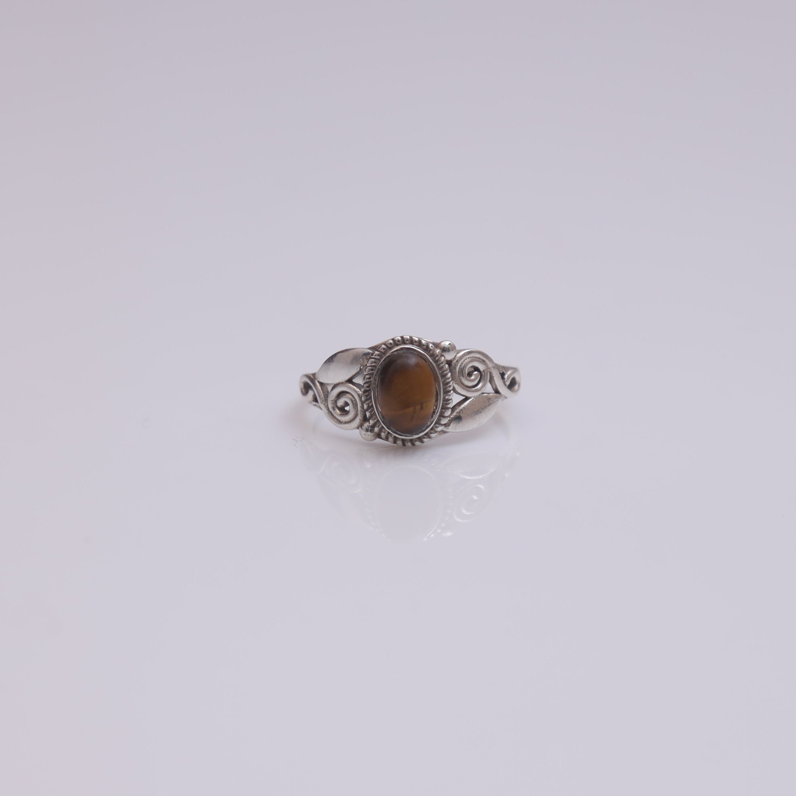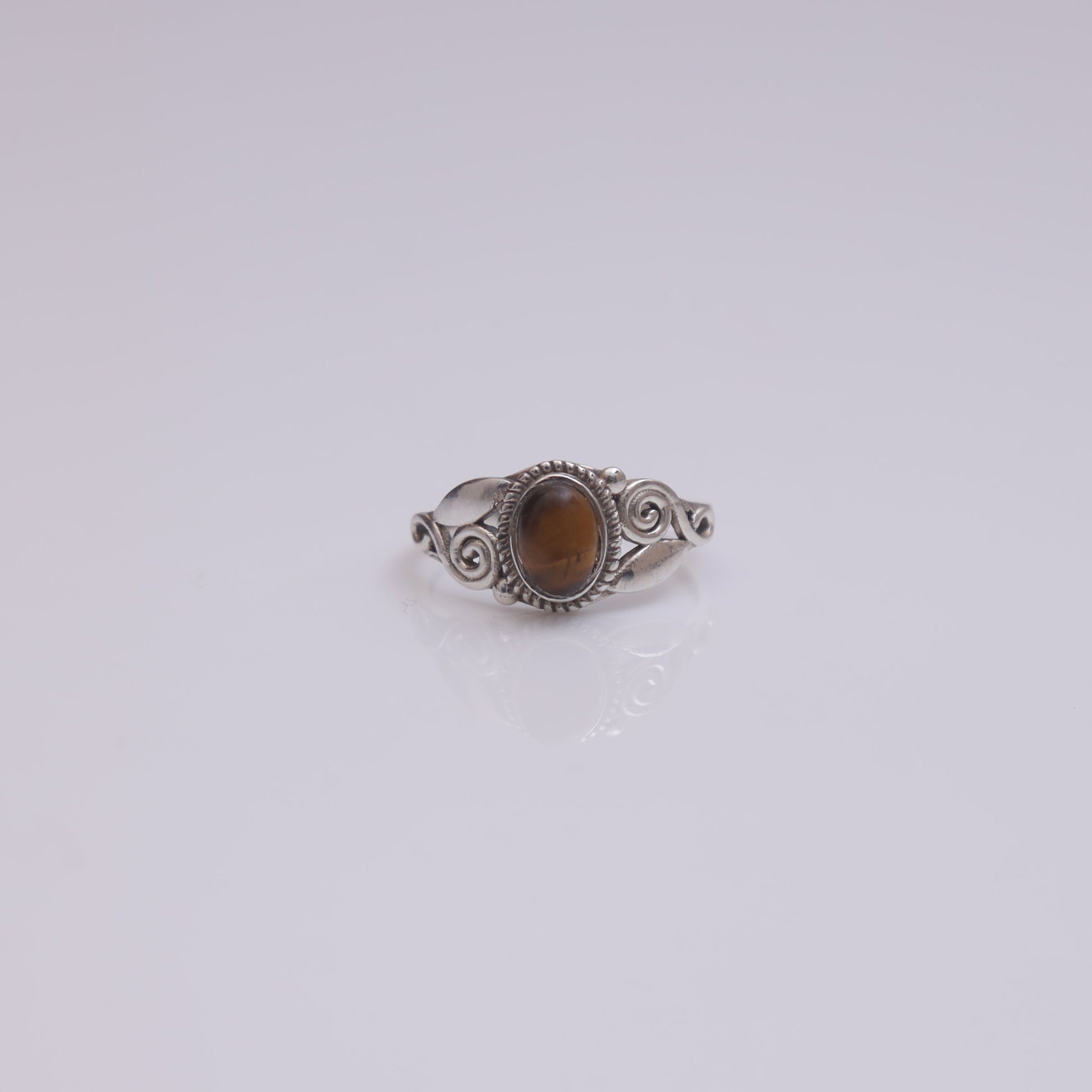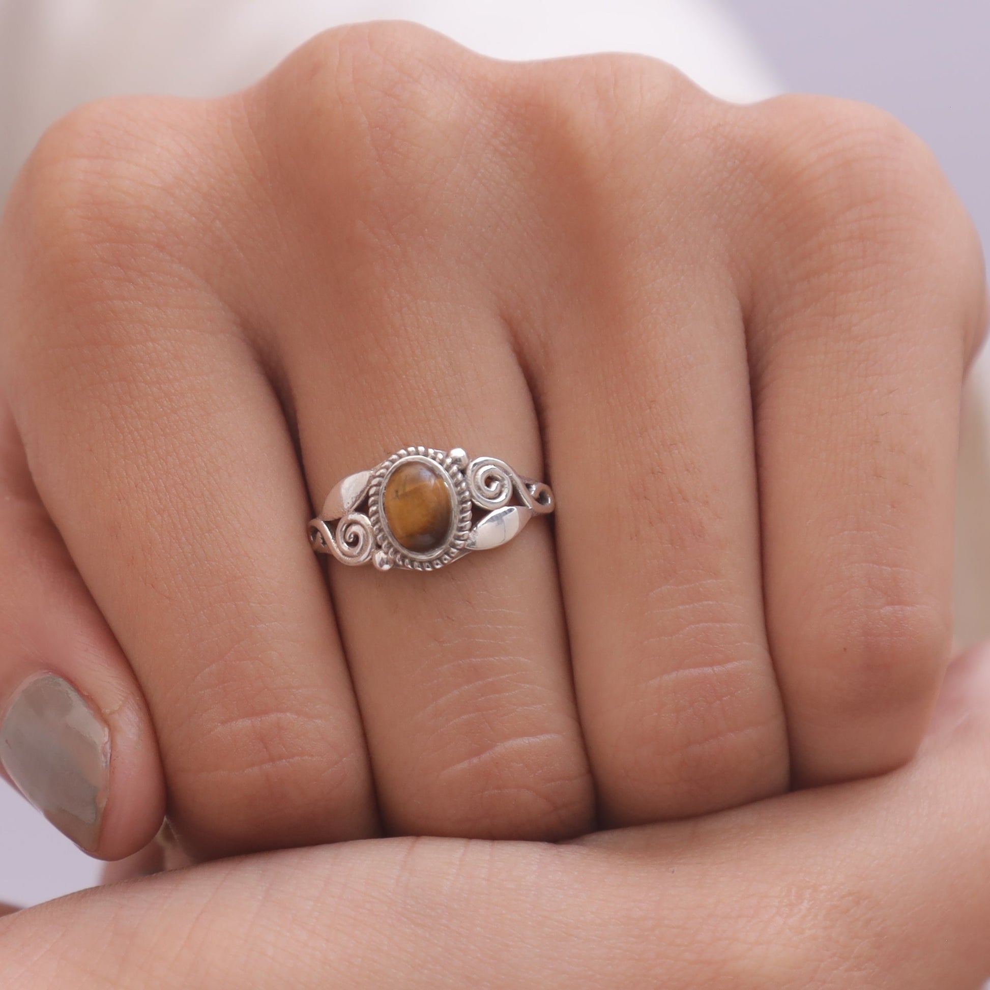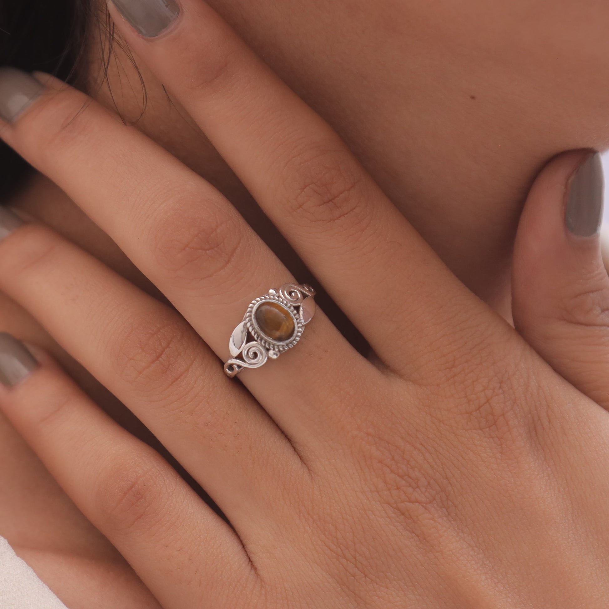 Crafted with precision, the Tiger Eye is securely held by polished prongs, allowing it to shine as the focal point of each ring. The design ensures comfort and a perfect fit, making these rings versatile for everyday wear or special occasions.