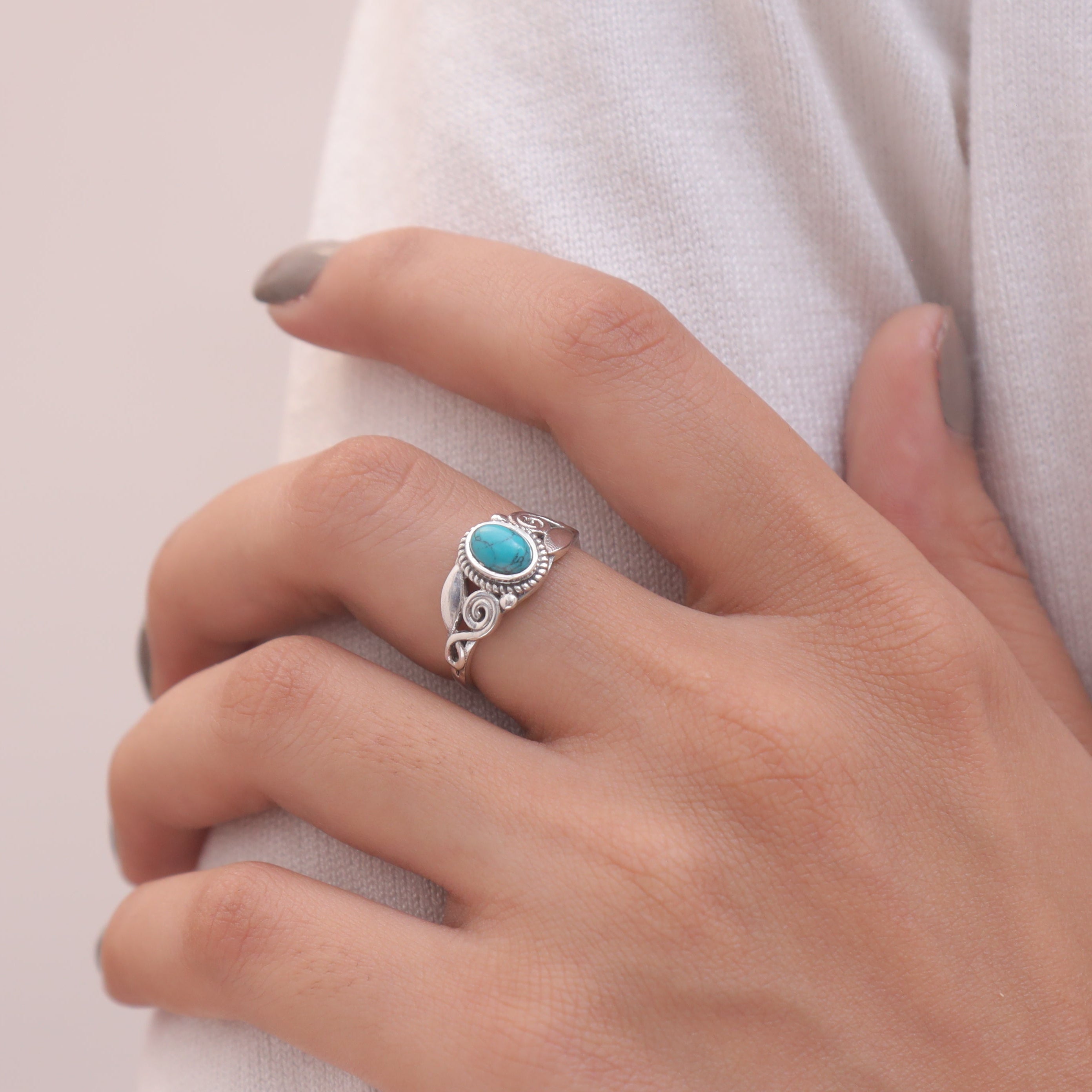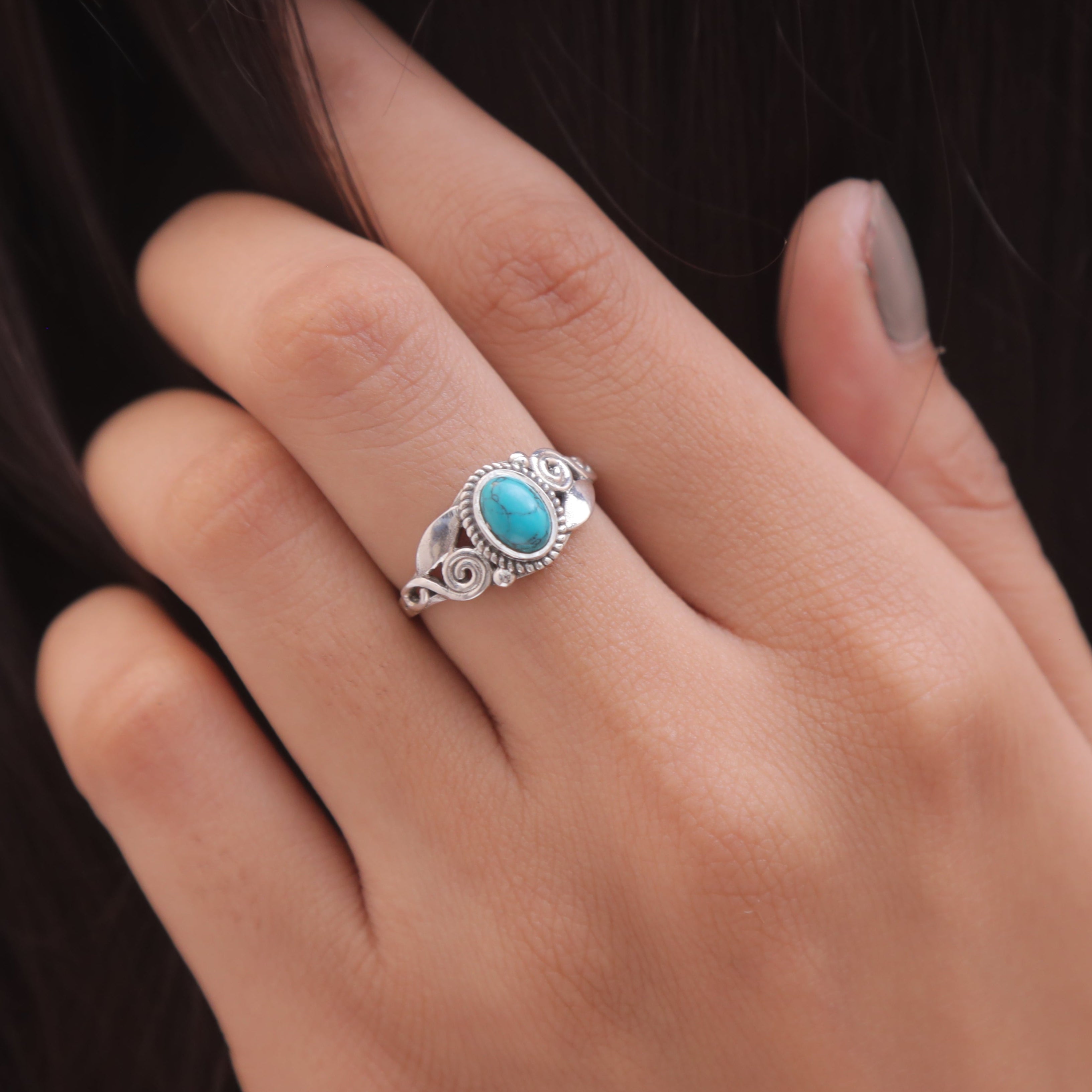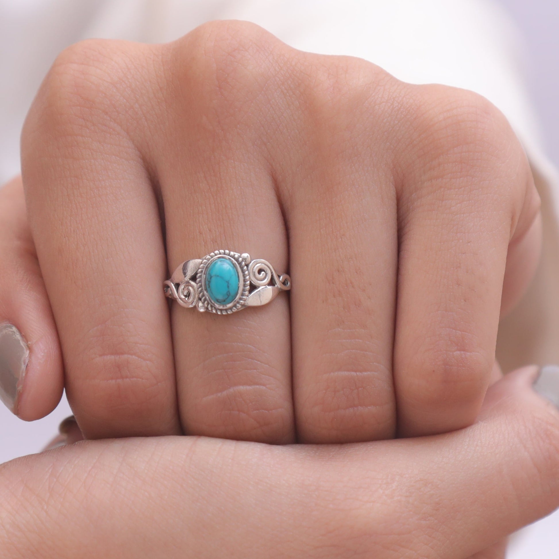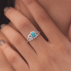 Elevate your style with the Turquoise Ring, a masterpiece that blends natural beauty with refined craftsmanship. The ring features a radiant Turquoise centrepiece, carefully cut to enhance its inherent allure and brilliance. Set in a band crafted from 925 sterling silver, it offers durability and a lasting shine that complements the gemstone's vibrant hue.