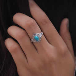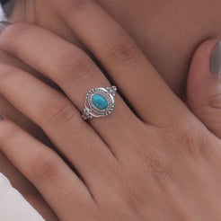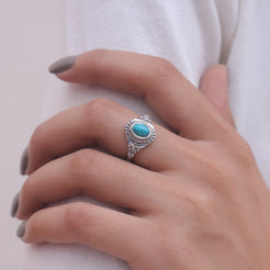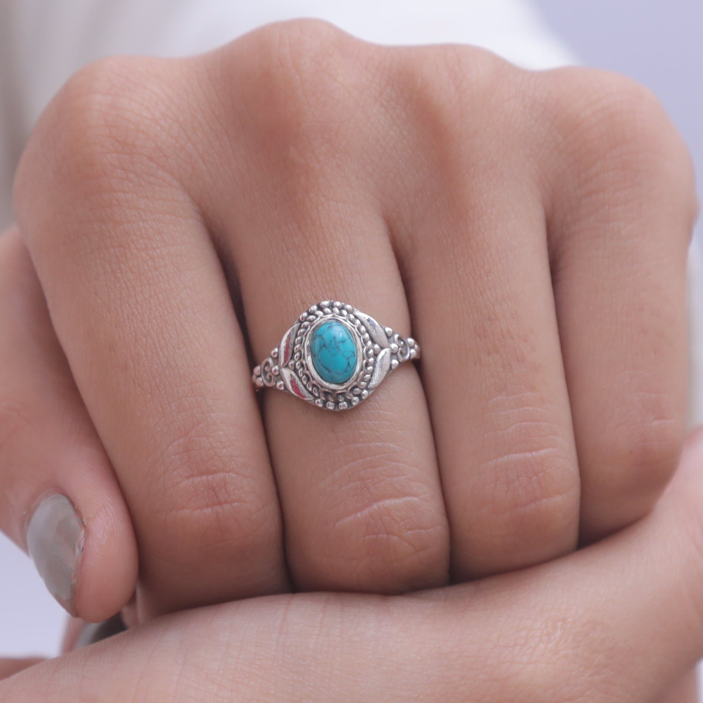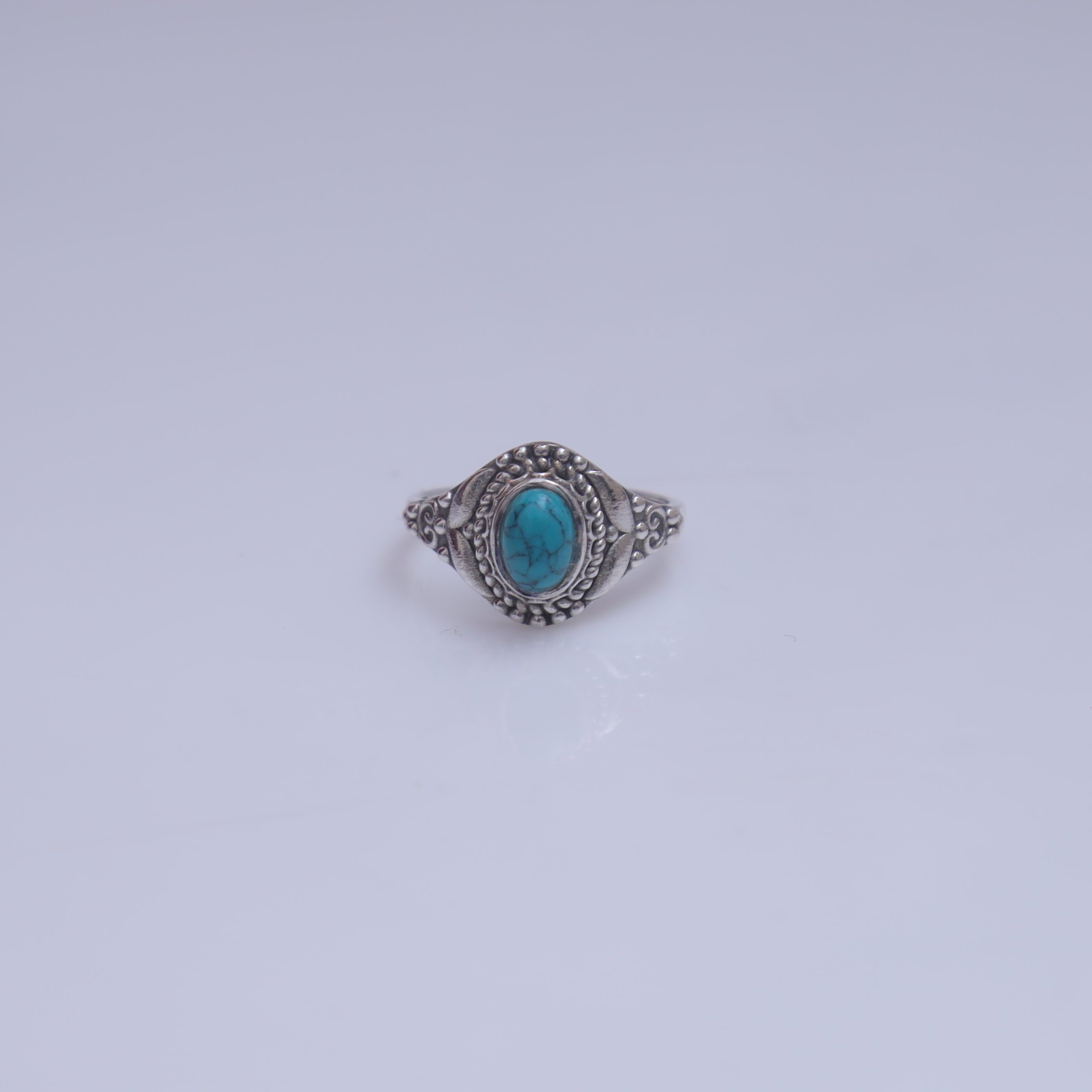 Elevate your style with the Turquoise Ring, a masterpiece that blends natural beauty with refined craftsmanship. The ring features a radiant Turquoise centrepiece, carefully cut to enhance its inherent allure and brilliance. Set in a band crafted from 925 sterling silver, it offers durability and a lasting shine that complements the gemstone's vibrant hue.