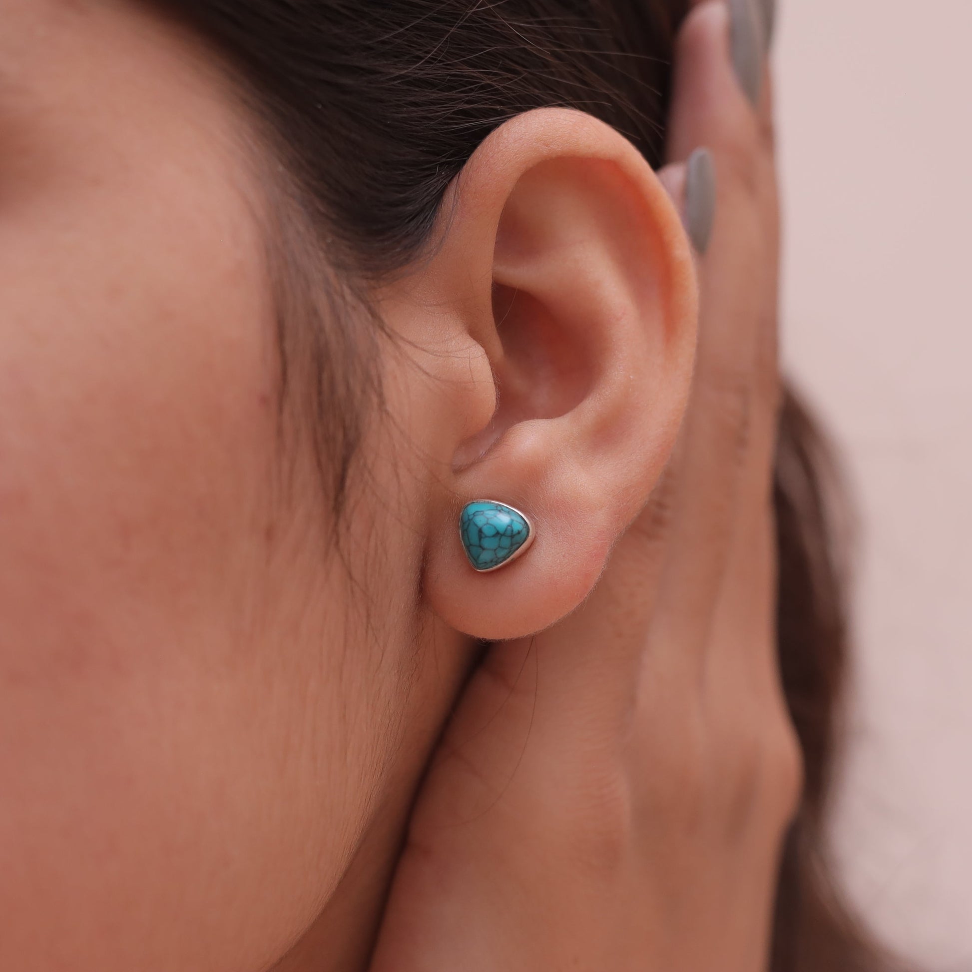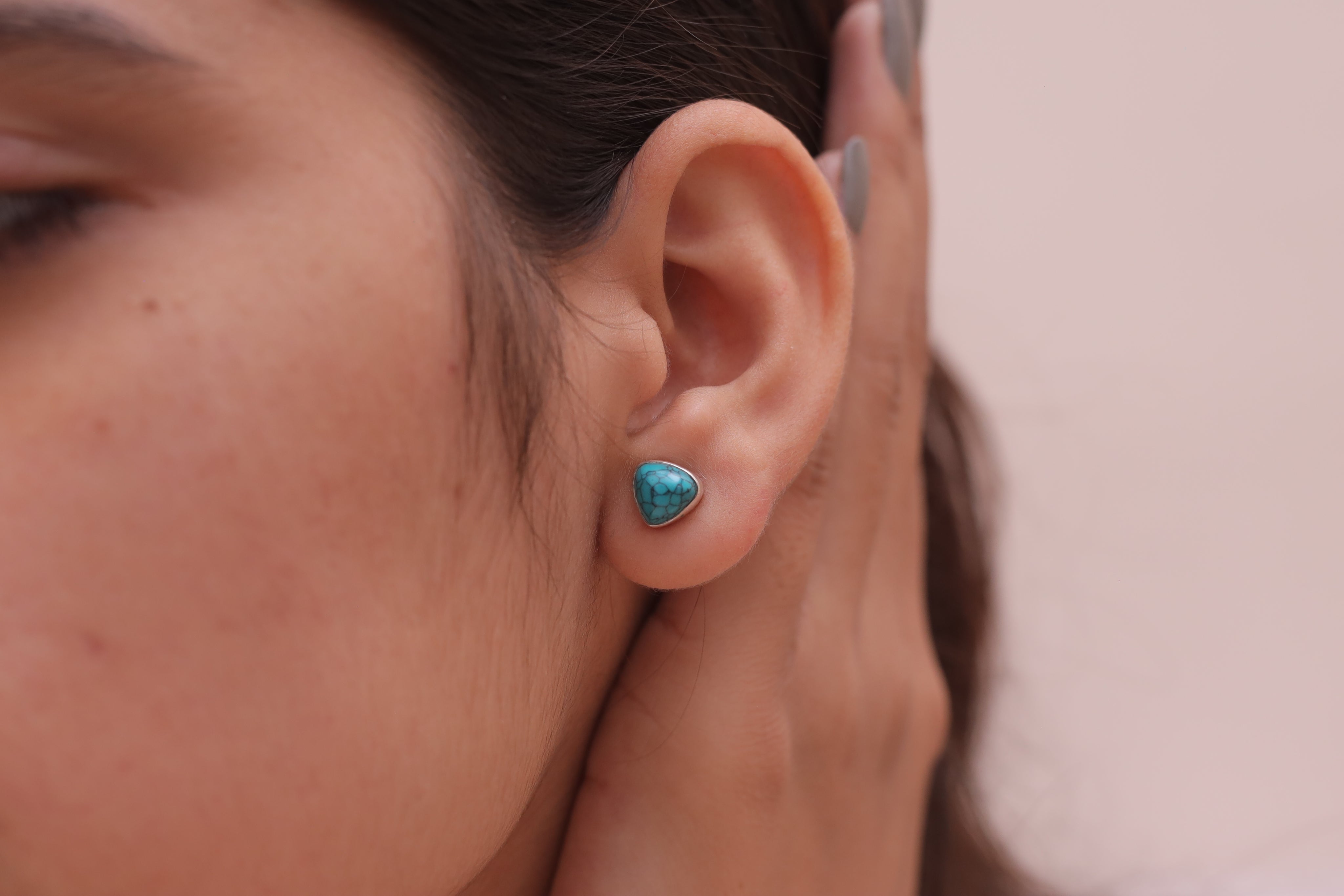 Crafted with precision, the turquoise is securely held by polished prongs, allowing it to shine as the focal point of each Studs. The design ensures comfort and a perfect fit, making these studs versatile for everyday wear or special occasions.