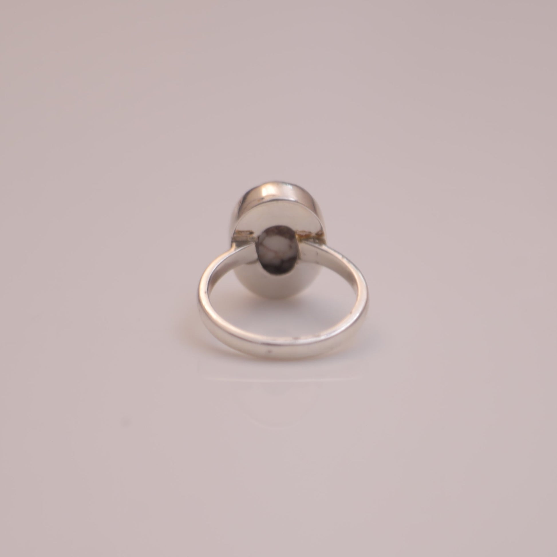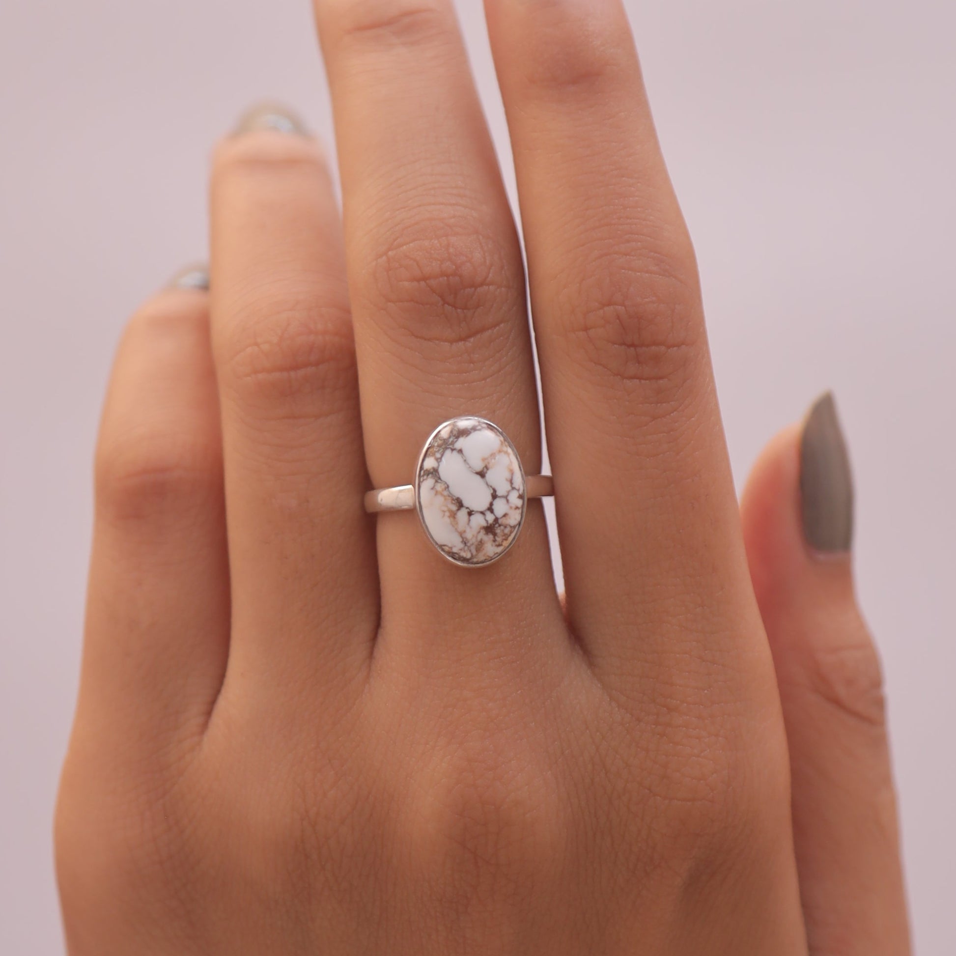 Each detail of the ring showcases expert craftsmanship, from the precisely set prongs securing the Wild Horse to the polished silver band ensuring a comfortable fit. The design allows the Wild Horse to shine as the focal point, making it a versatile accessory suitable for everyday wear or special occasions.