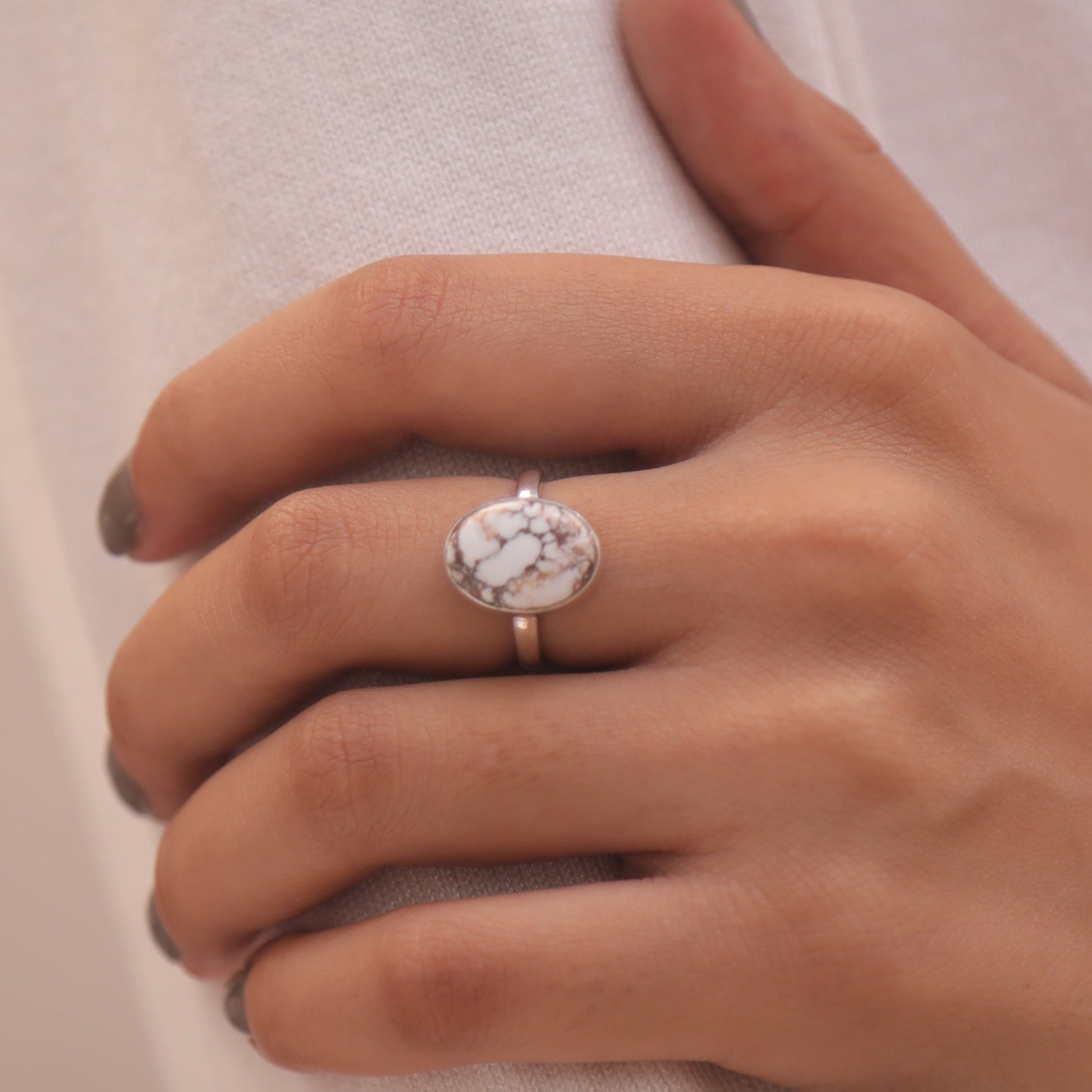 Elevate your style with the Wild Horse Ring, a masterpiece that blends natural beauty with refined craftsmanship. The ring features a radiant Wild Horse centerpiece, carefully cut to enhance its inherent allure and brilliance. Set in a band crafted from 925 sterling silver, it offers durability and a lasting shine that complements the gemstone's vibrant hue.